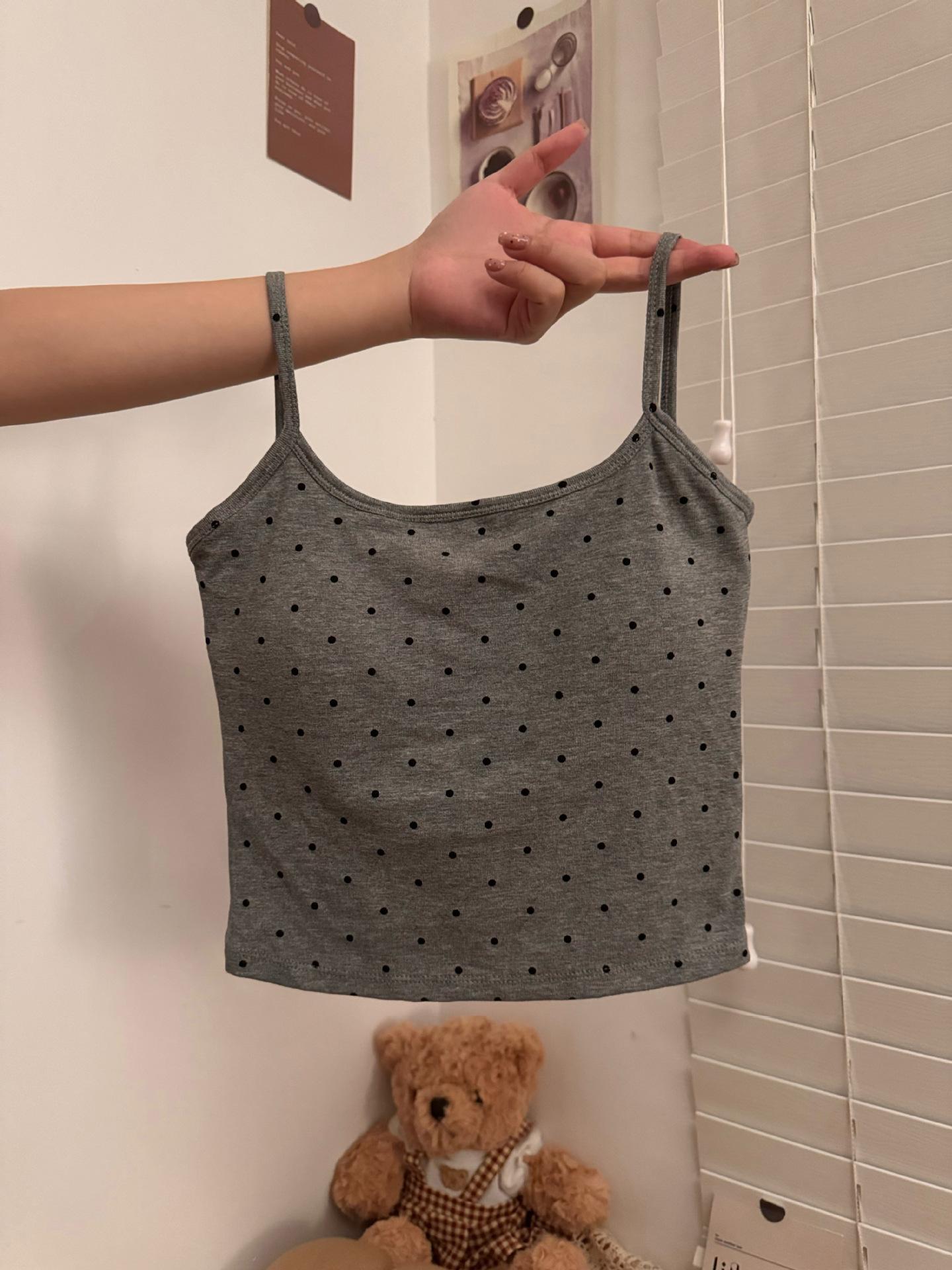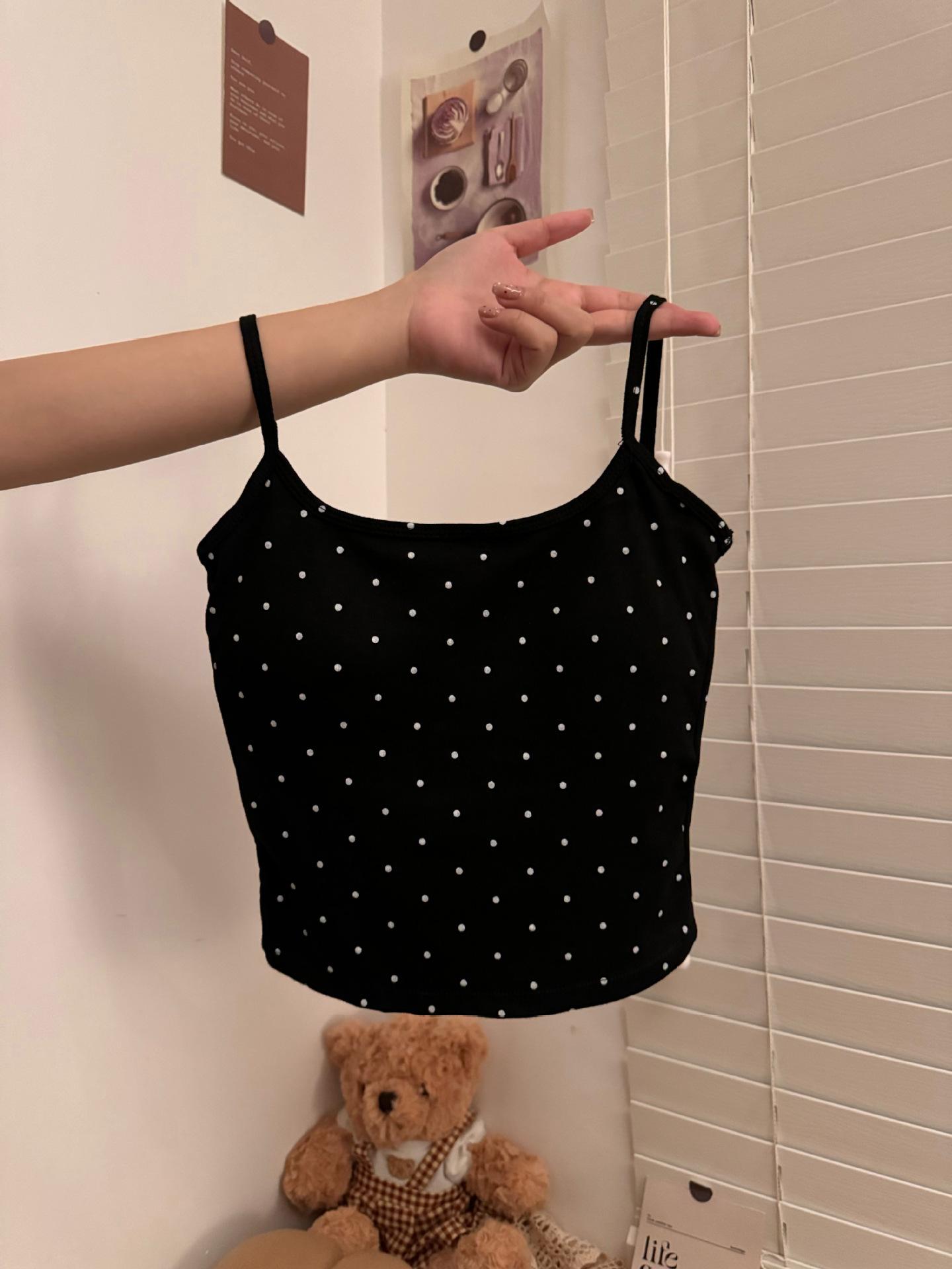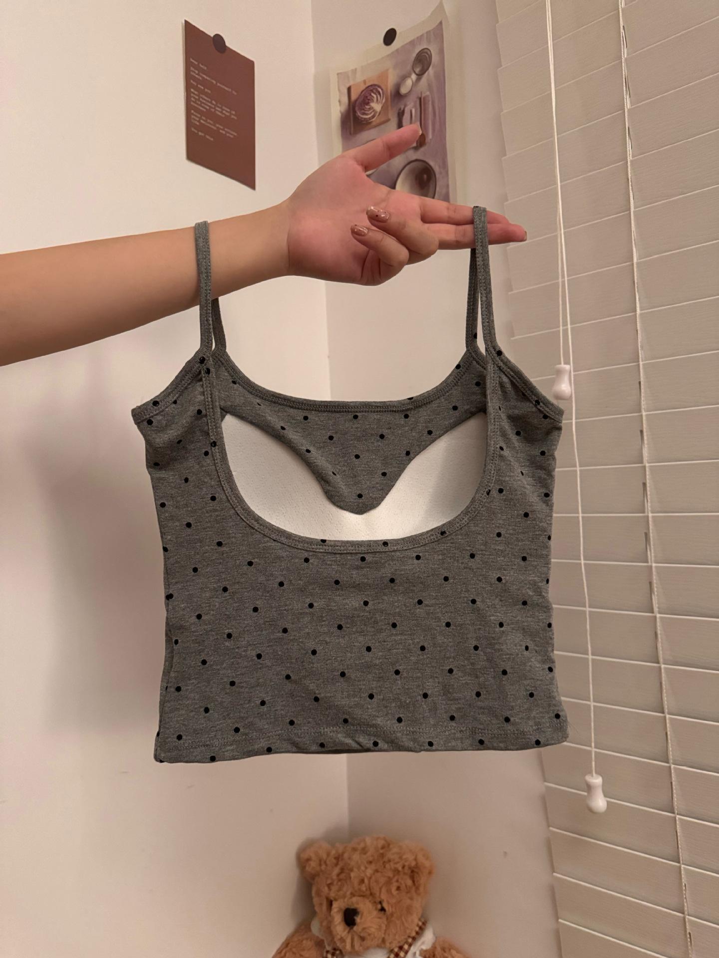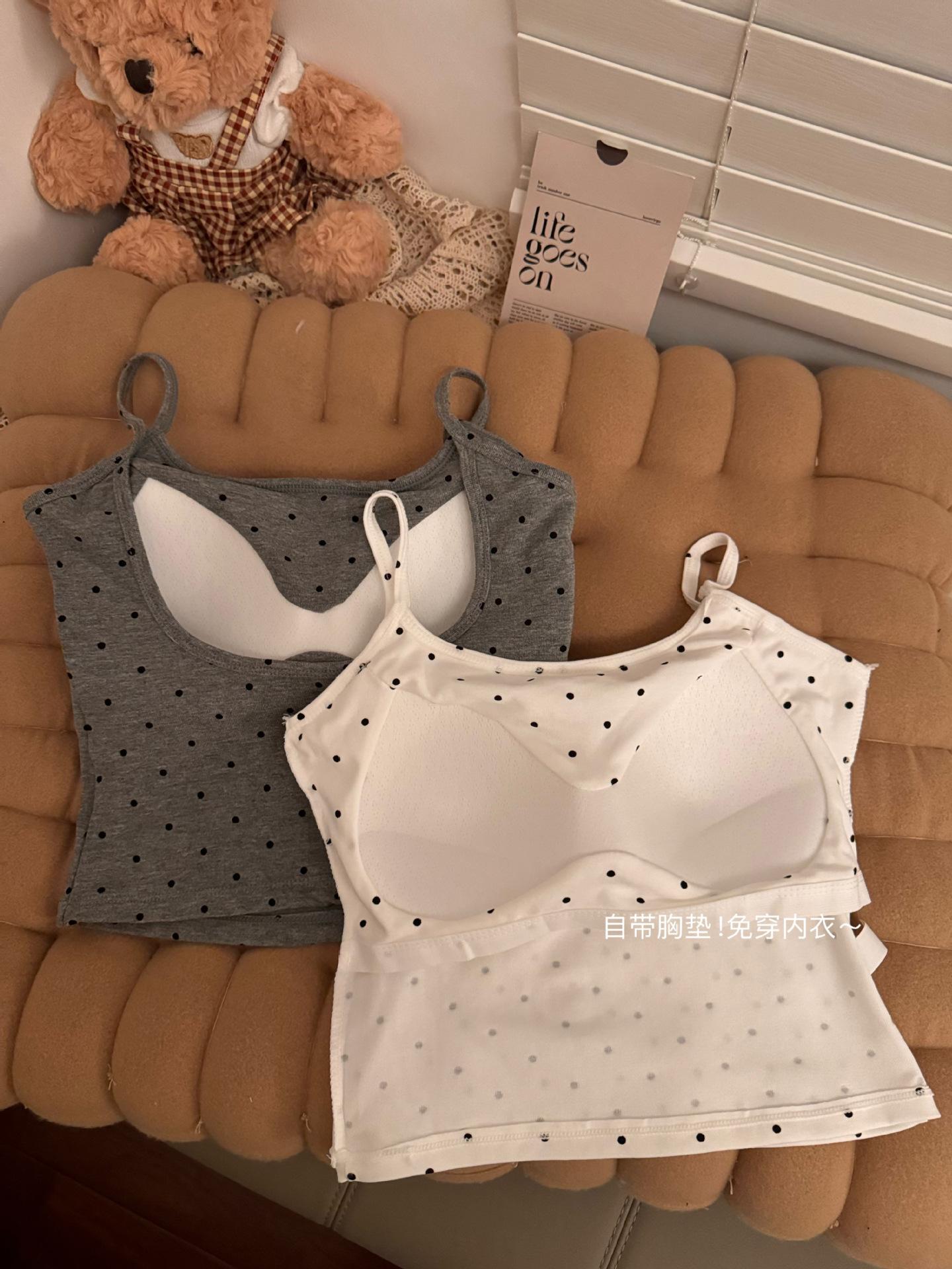 Camisola Deportiva Interior de Lunares Ondulados Estilo Francés para Mujer con Tirantes Descubiertos, Almohadilla en el Pecho, Corte Slim, Corta, sin Tirantes para Usar como Exterior, Cómoda, Envoltura en el Pecho