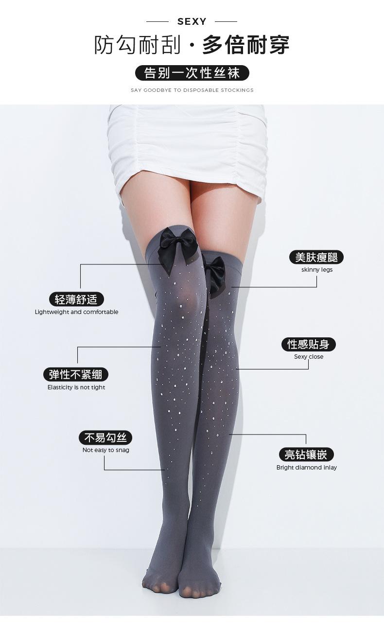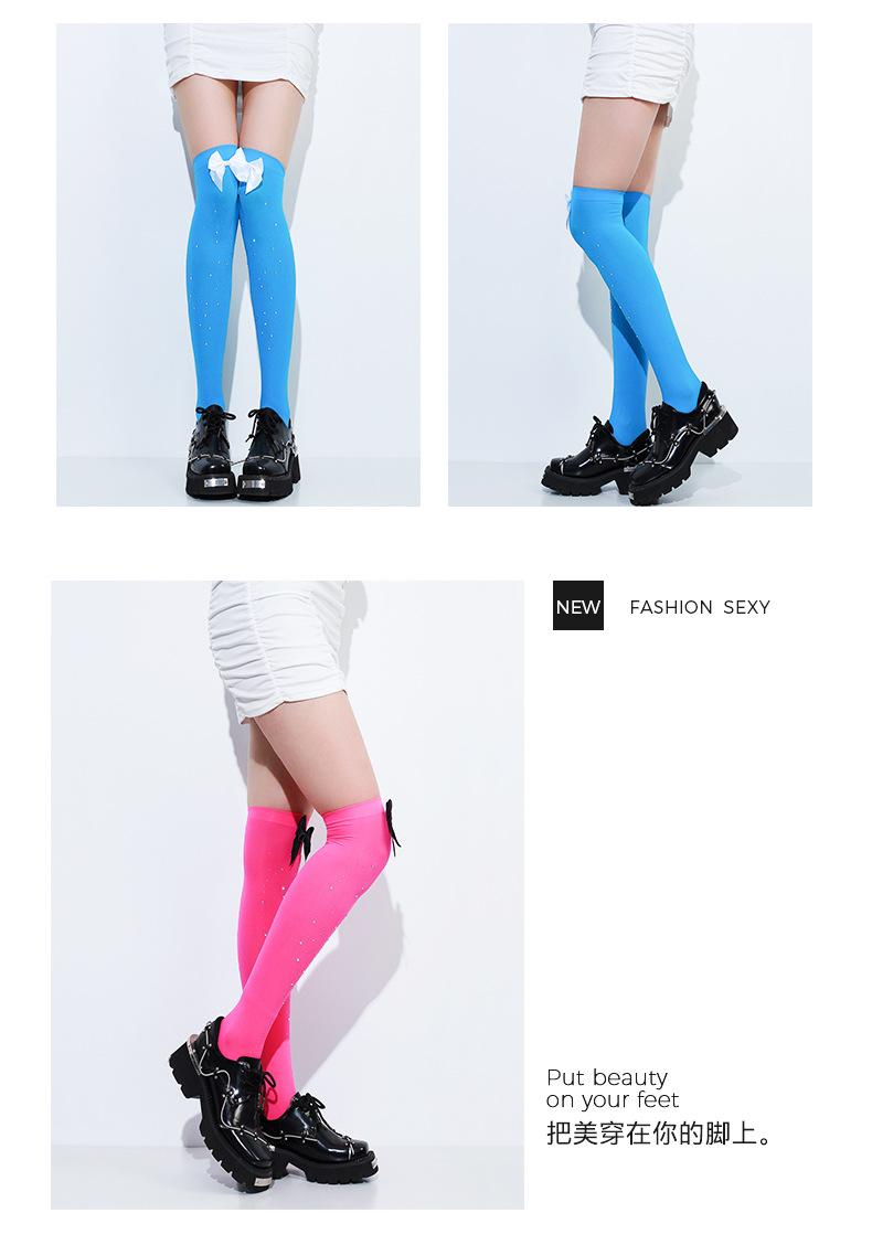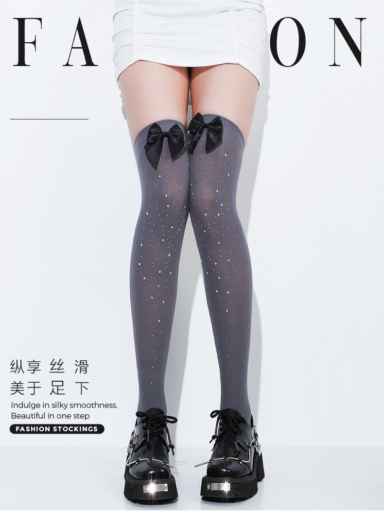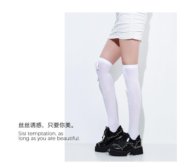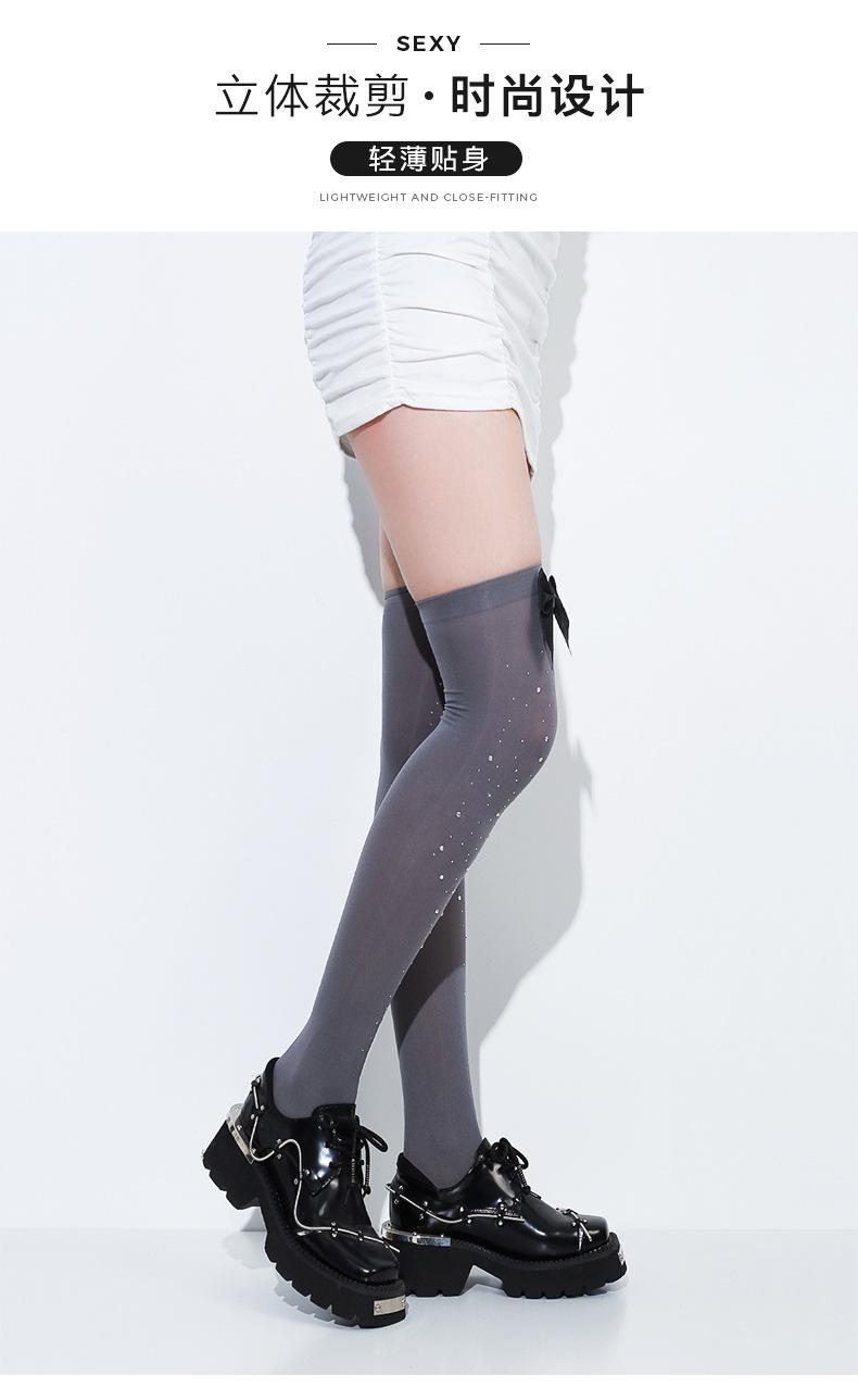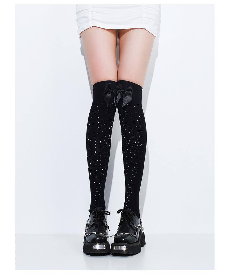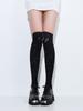 Medias hasta el muslo de cinta multicolor de lazo dulce de celebridad de Internet negra ins Primavera y Otoño Seda negra Lindo tubo largo por encima de la rodilla