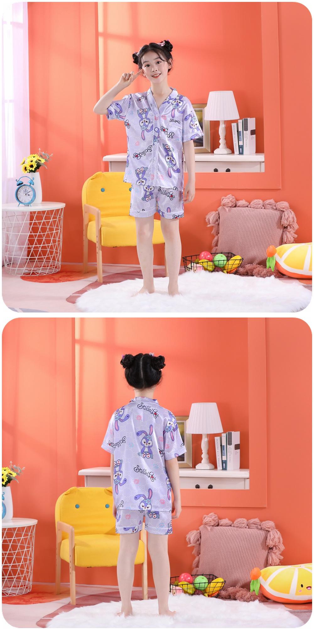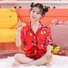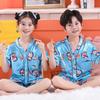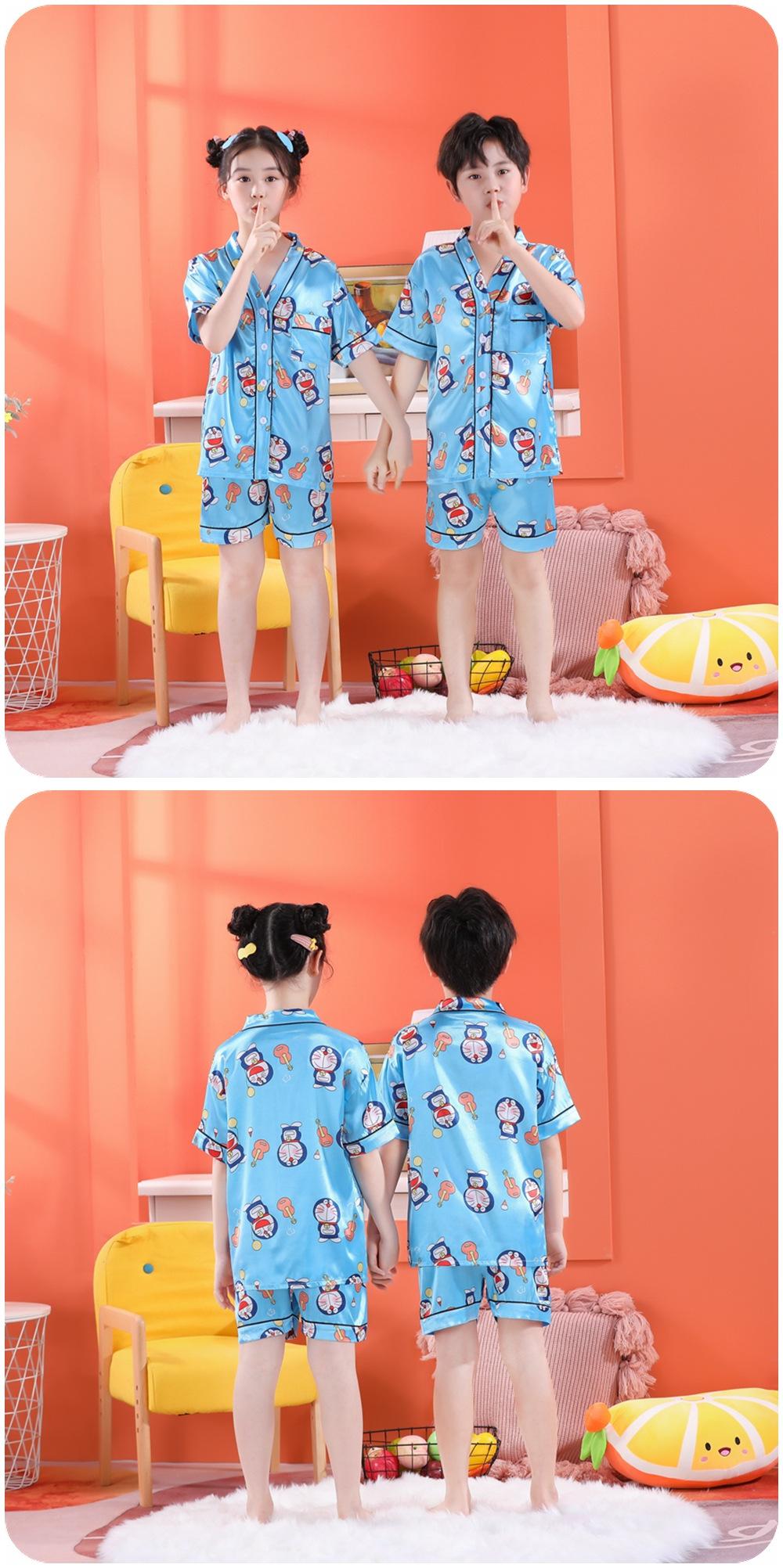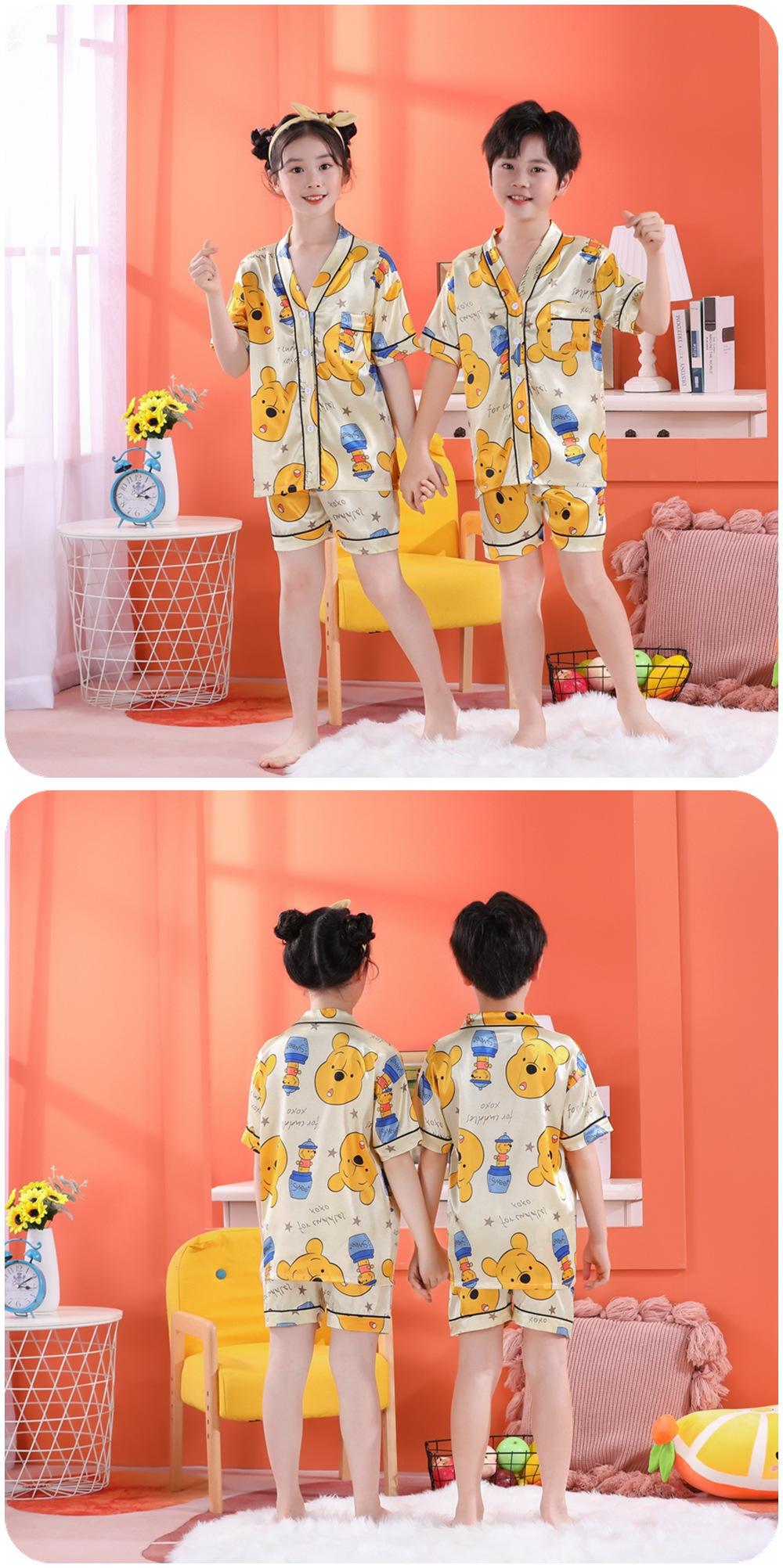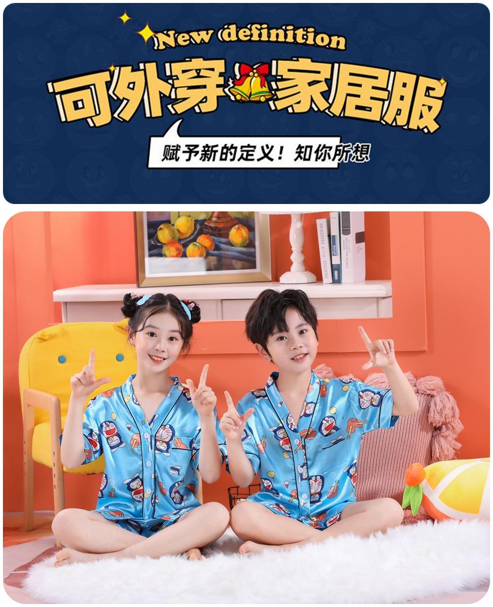 Pijama de Verano para Niños de Comercio Exterior Seda de Hielo Manga Corta Cárdigan Dibujos Animados Suelto Tallas Pequeñas y Medianas Niños y Niñas Ropa para el Hogar Tipo Seda