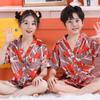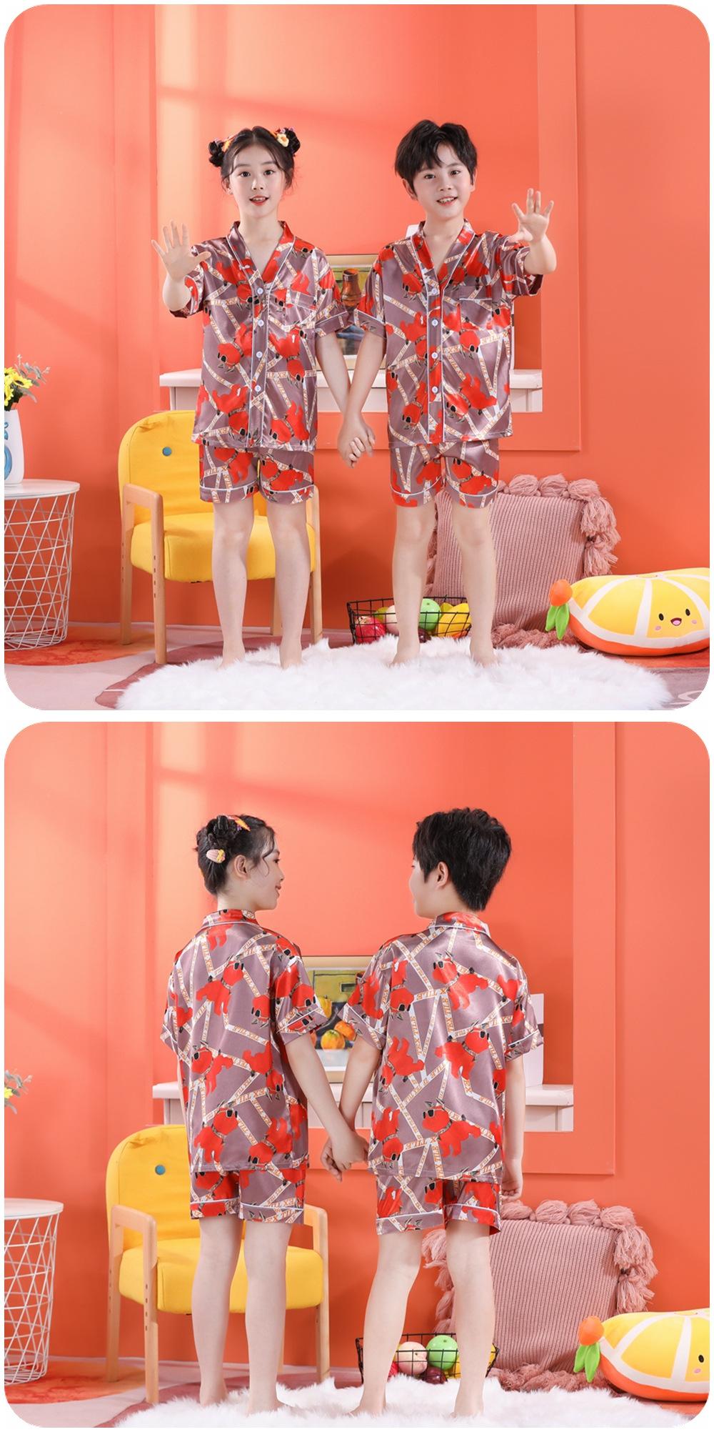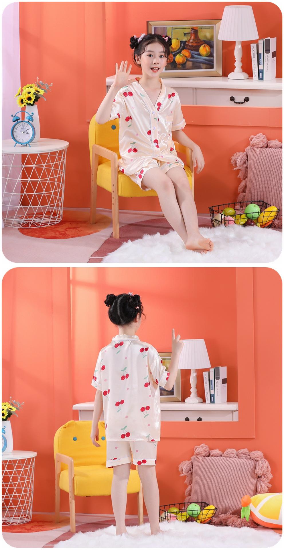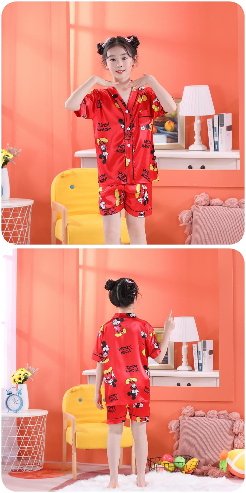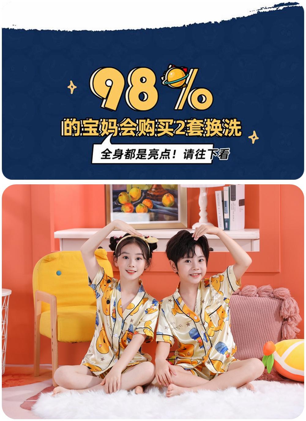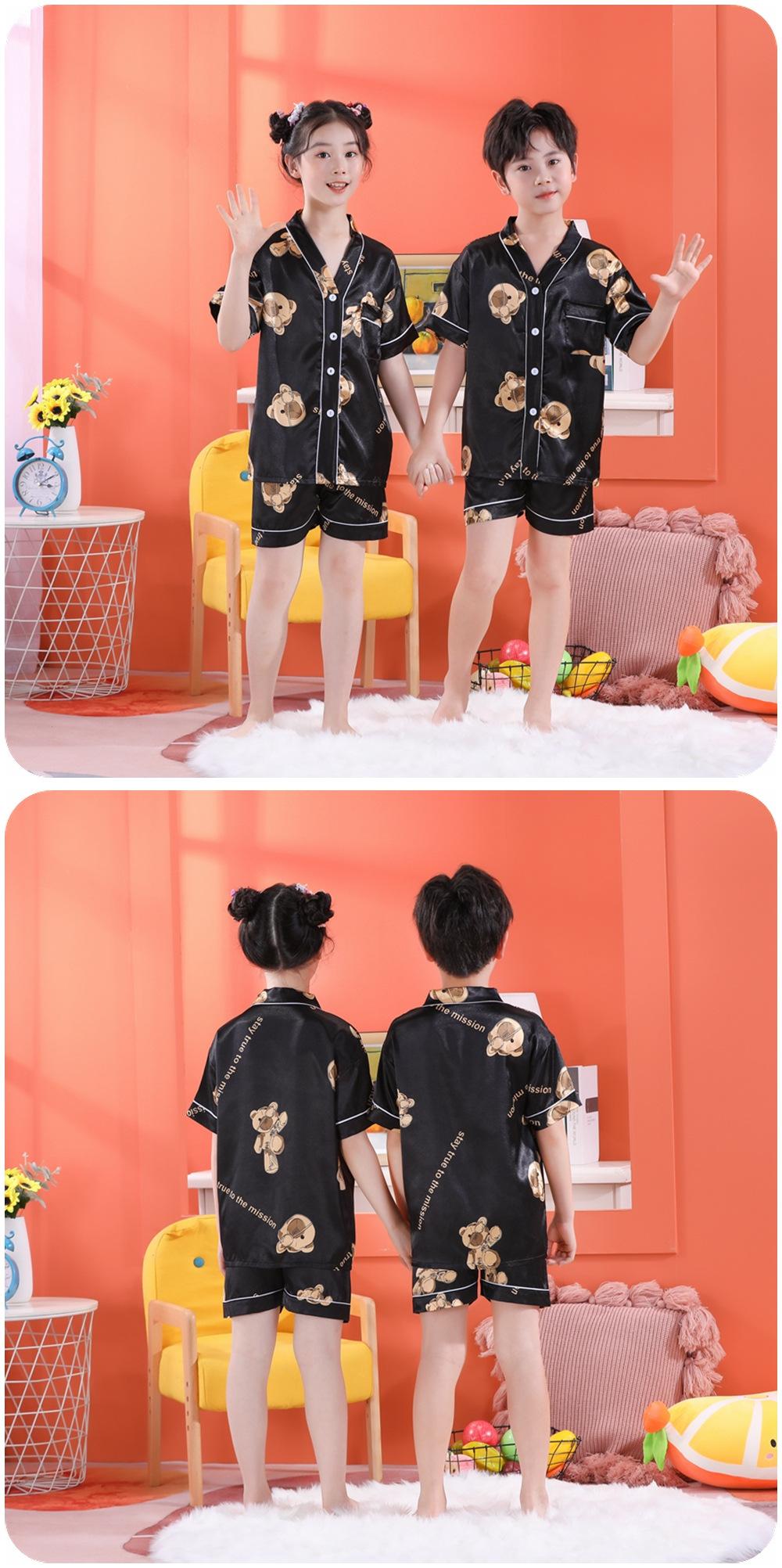 Pijama de Verano para Niños de Comercio Exterior Seda de Hielo Manga Corta Cárdigan Dibujos Animados Suelto Tallas Pequeñas y Medianas Niños y Niñas Ropa para el Hogar Tipo Seda