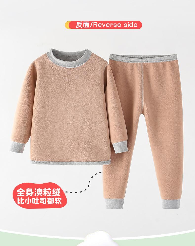 Conjunto de ropa interior térmica gruesa con forro polar para niños, pijamas de invierno extra gruesos para niños y niñas, ropa y pantalones de otoño para bebés.