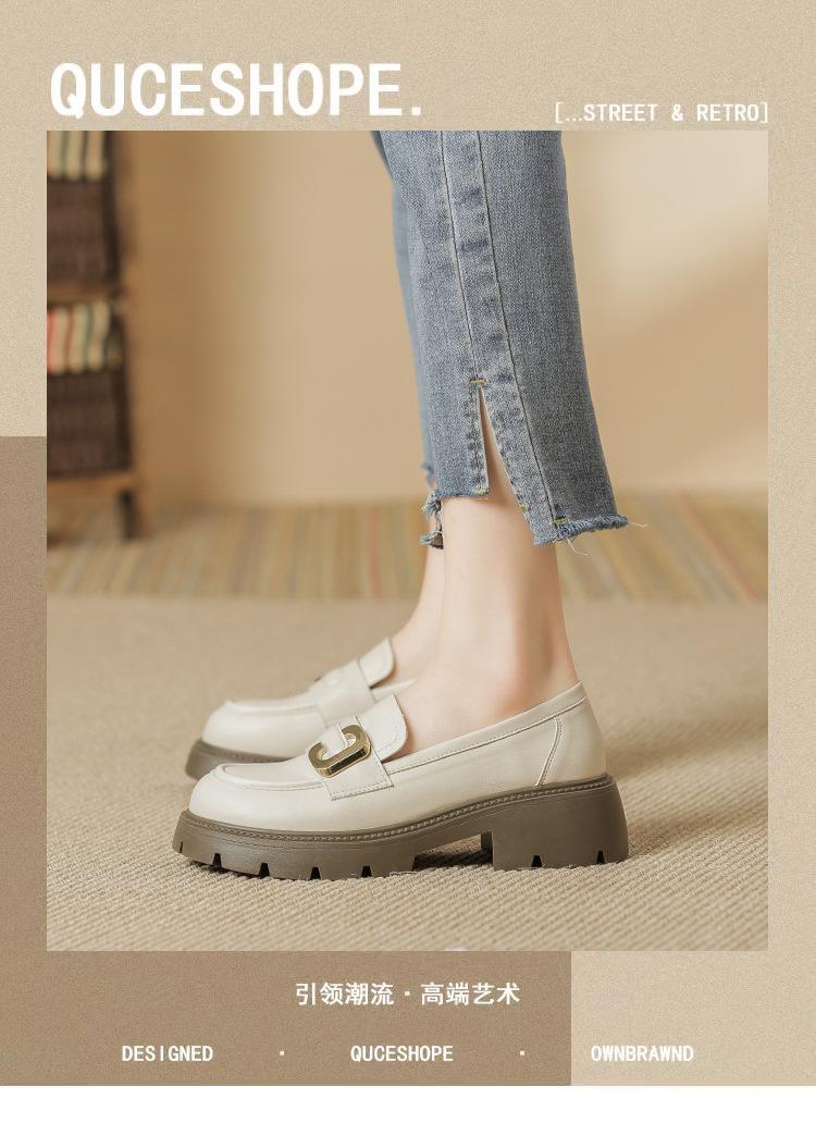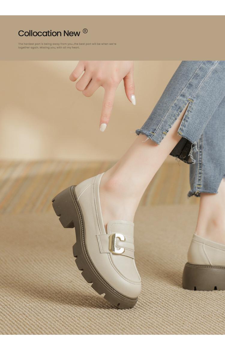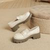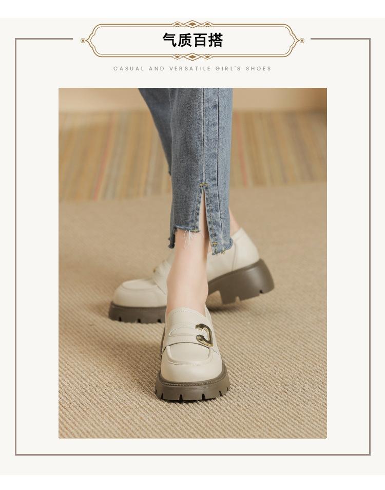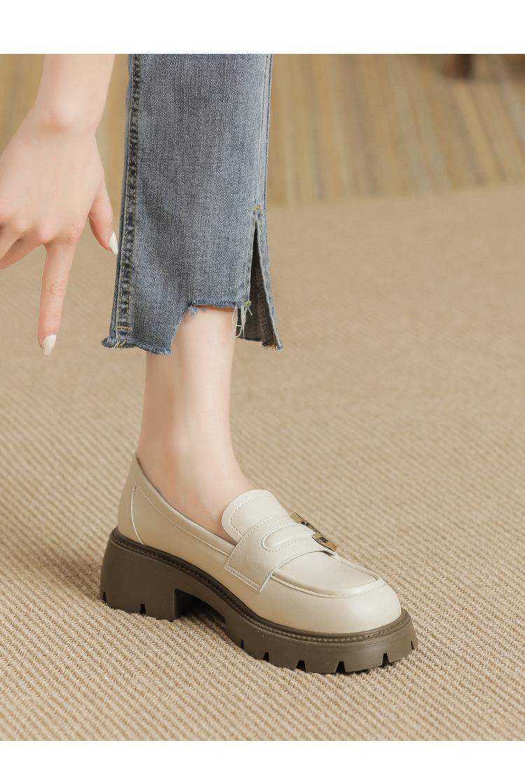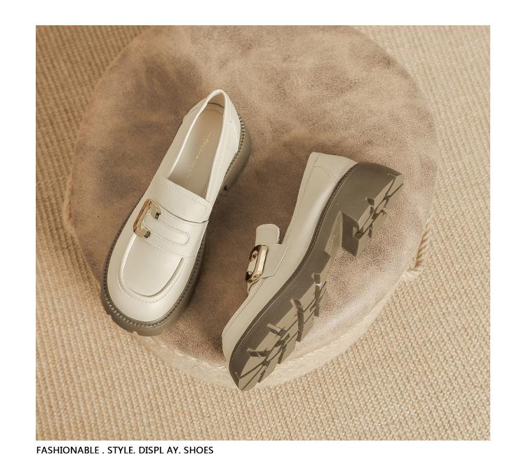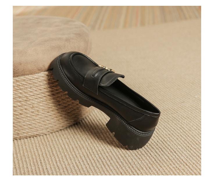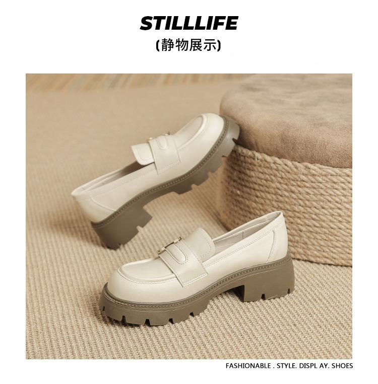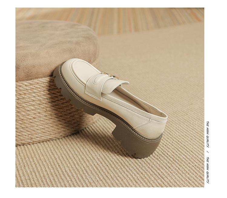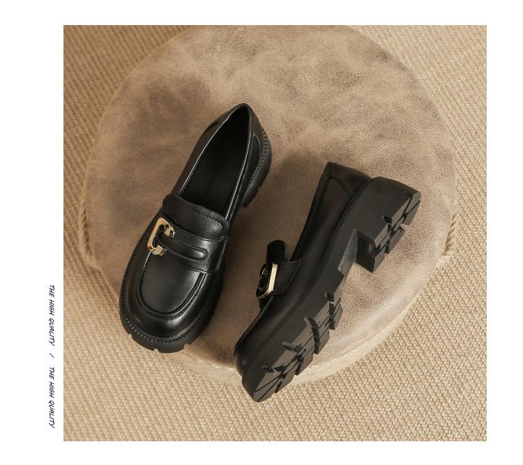 Zapatos de cuero estilo británico para mujer, primavera 2023, nuevos zapatos de tacón alto y grueso de cuero de una sola capa, mocasines de plataforma universitaria sin cordones