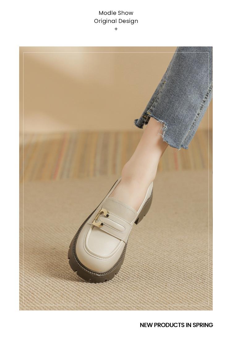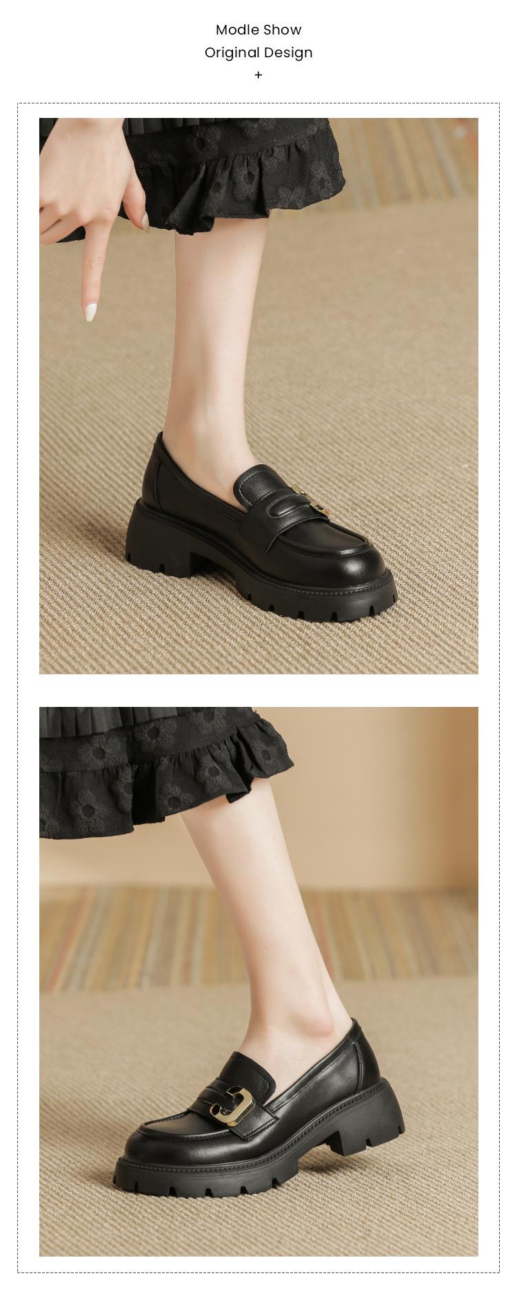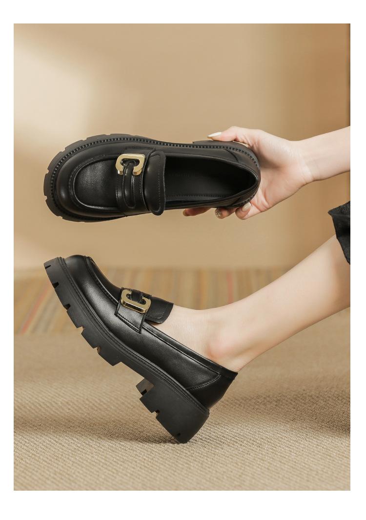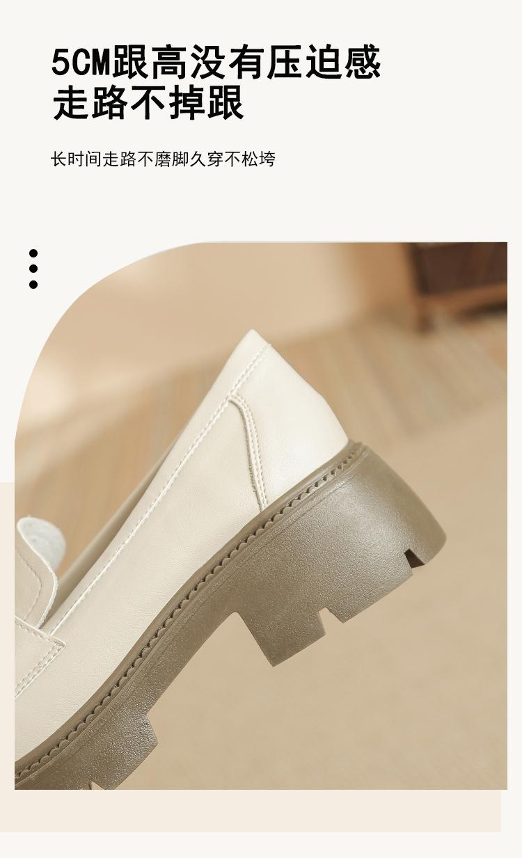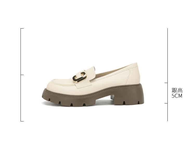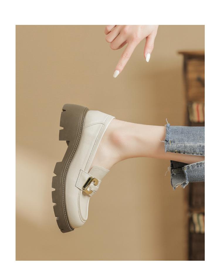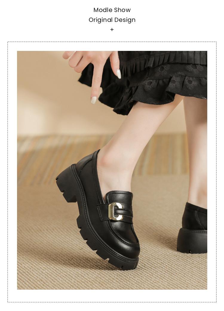 Zapatos de cuero estilo británico para mujer, primavera 2023, nuevos zapatos de tacón alto y grueso de cuero de una sola capa, mocasines de plataforma universitaria sin cordones