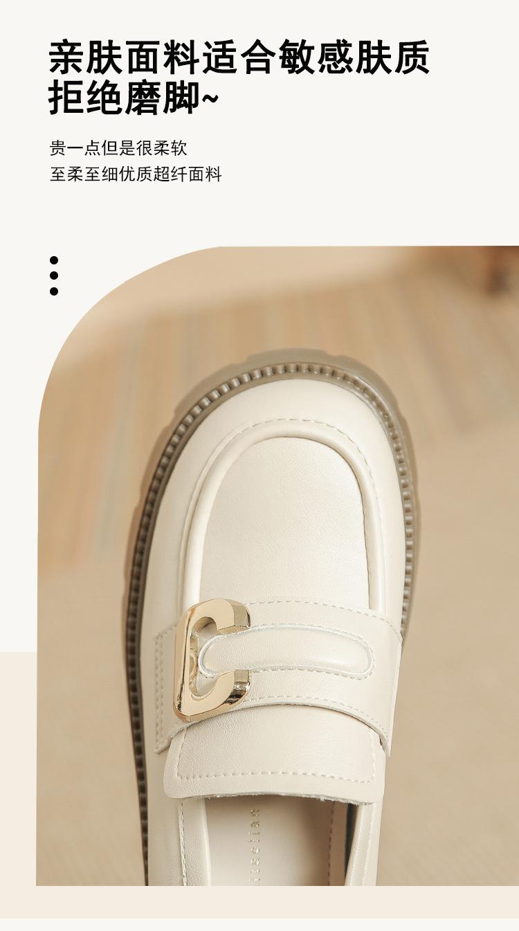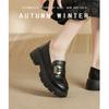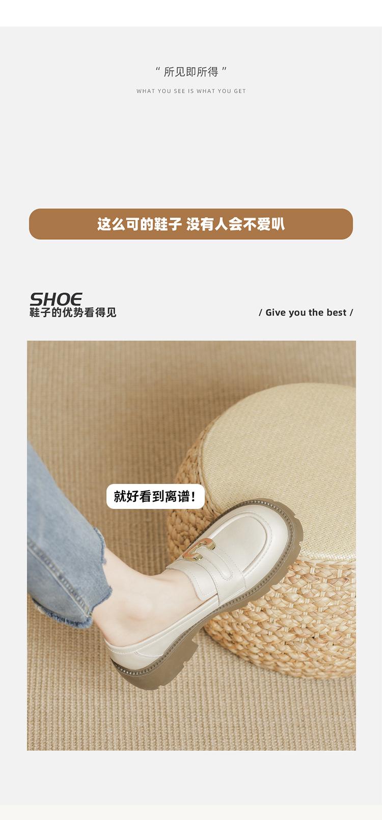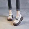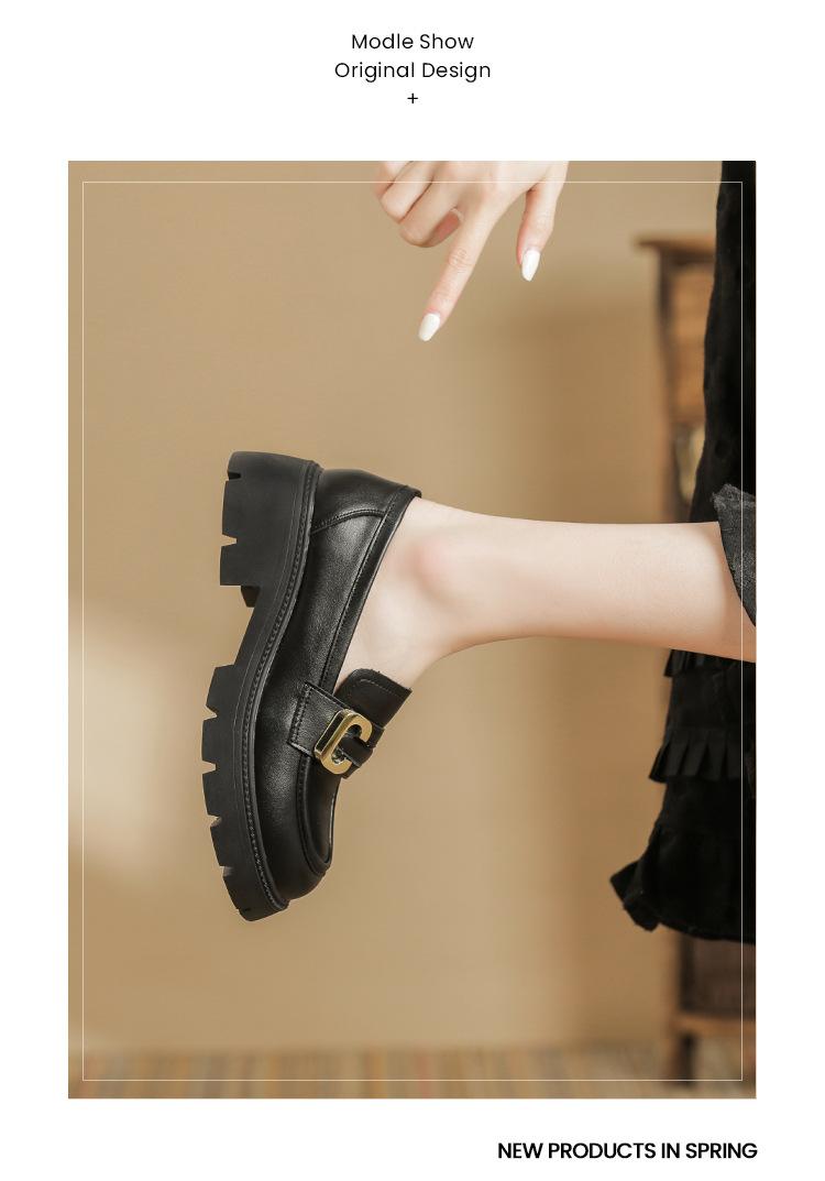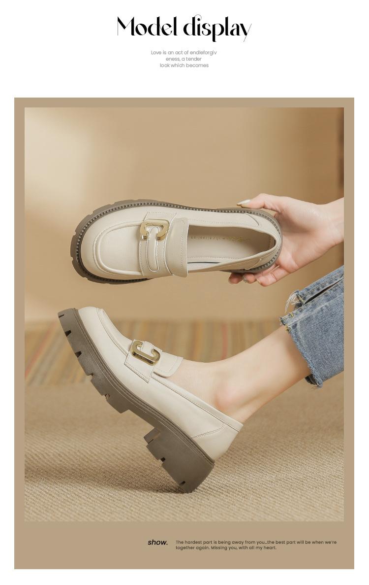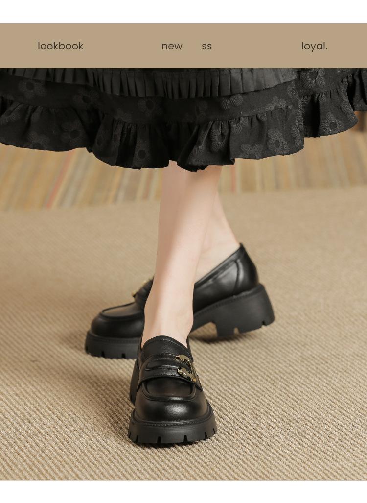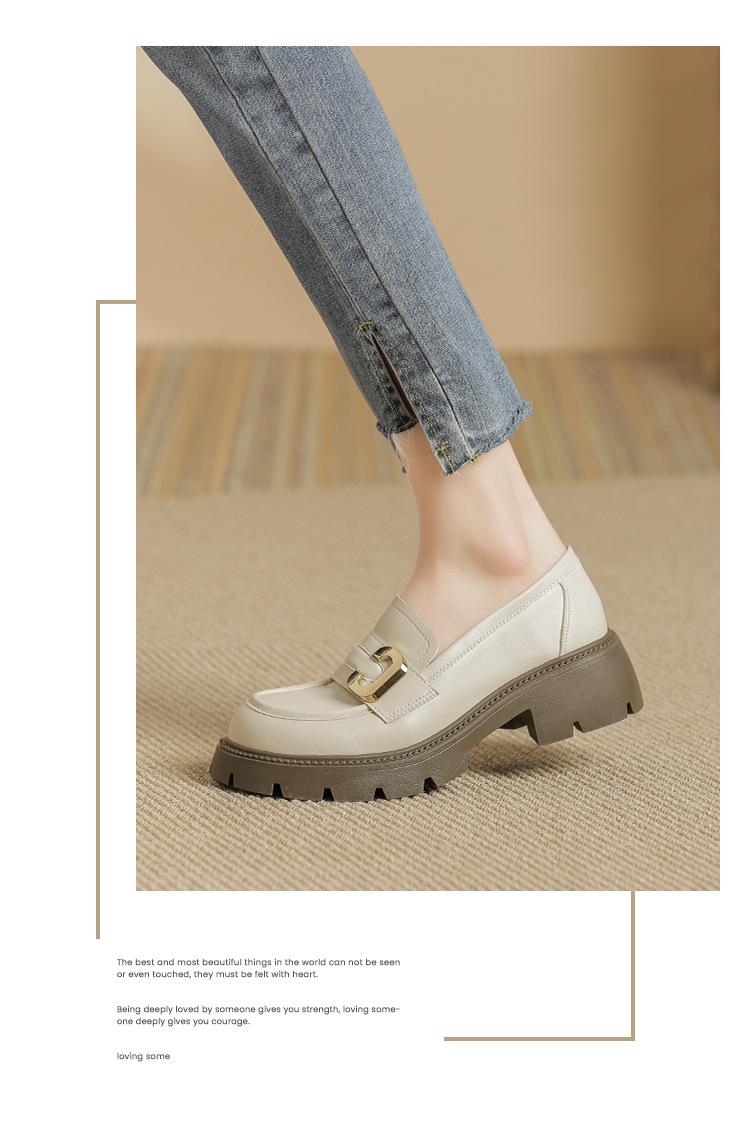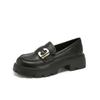 Zapatos de cuero estilo británico para mujer, primavera 2023, nuevos zapatos de tacón alto y grueso de cuero de una sola capa, mocasines de plataforma universitaria sin cordones