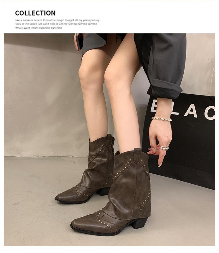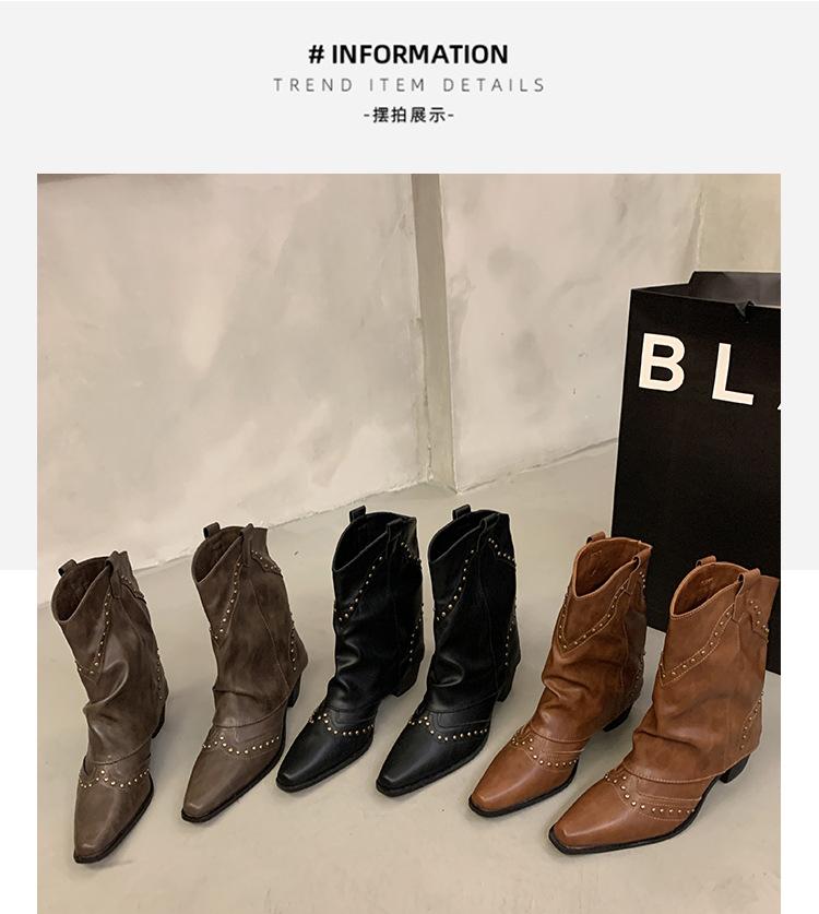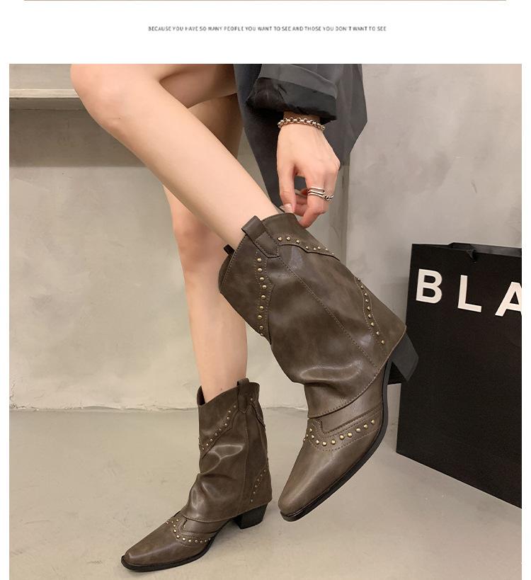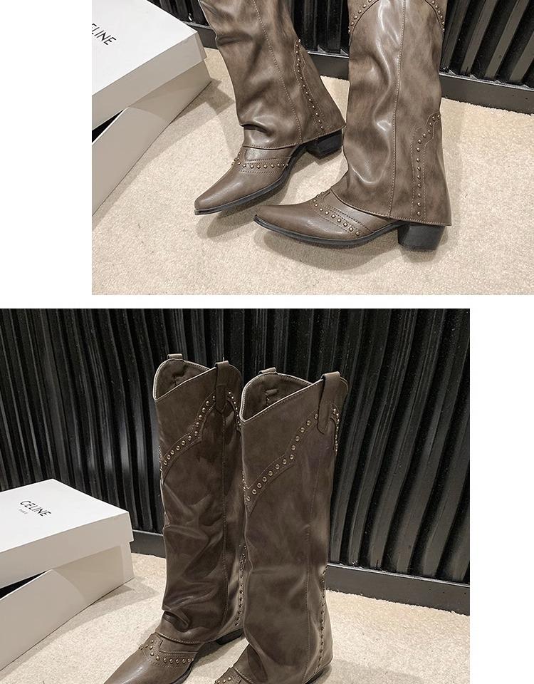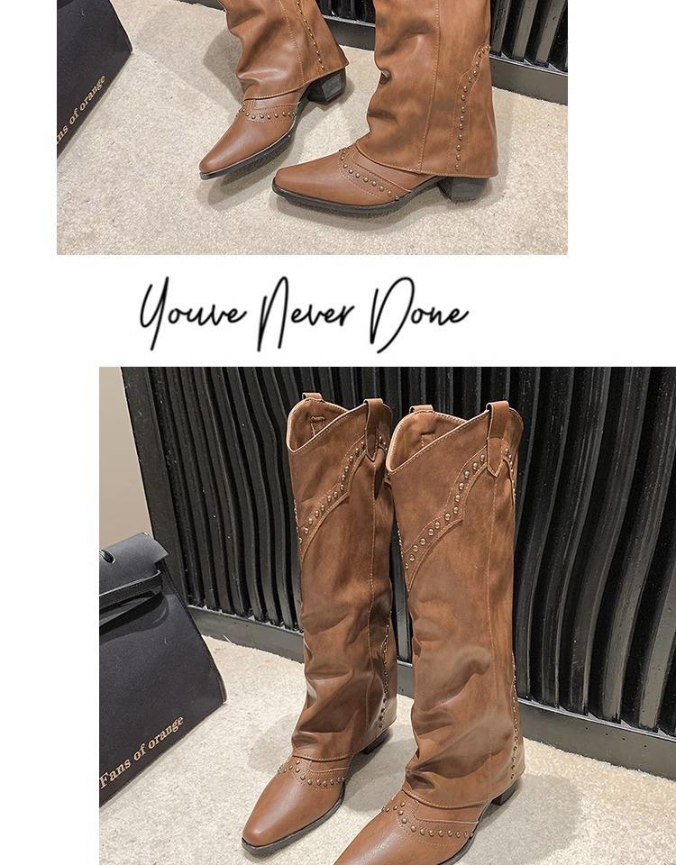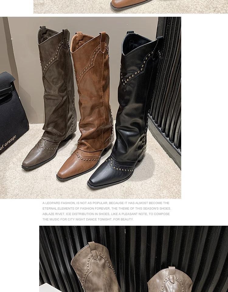 Botas vaqueras occidentales con remaches de caña alta, botas de caballero, botas de mujer, botas francesas de todo tipo, botas de cuero vintage