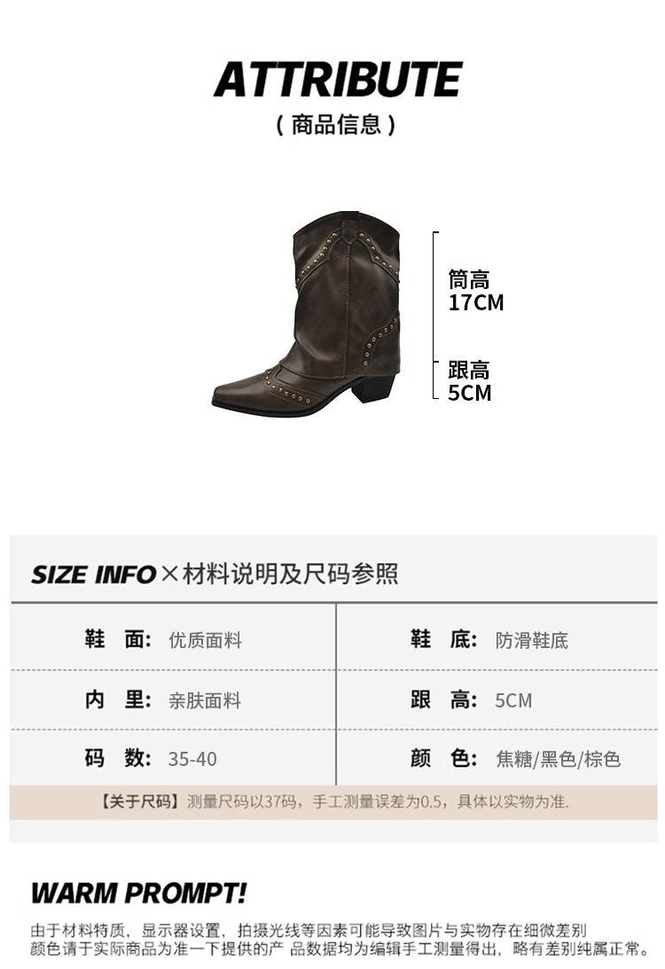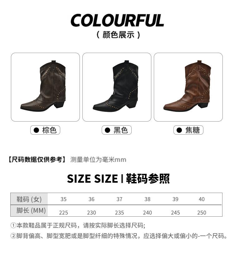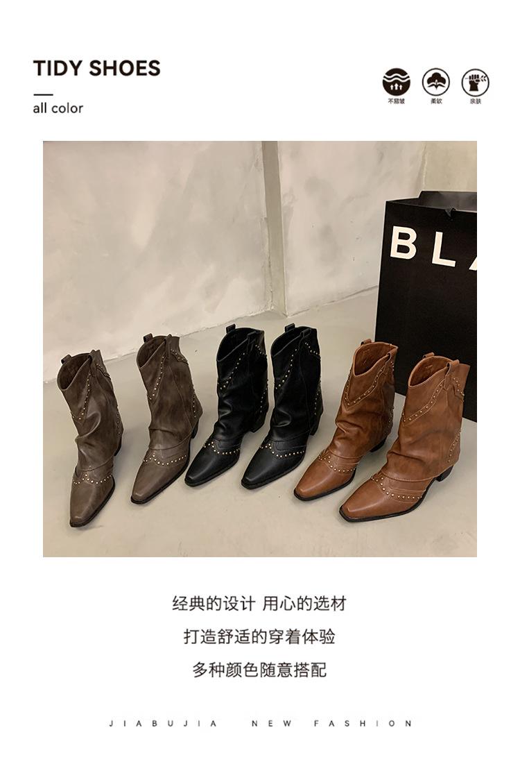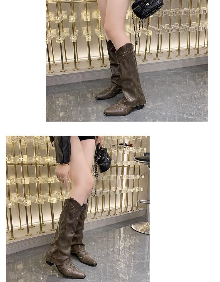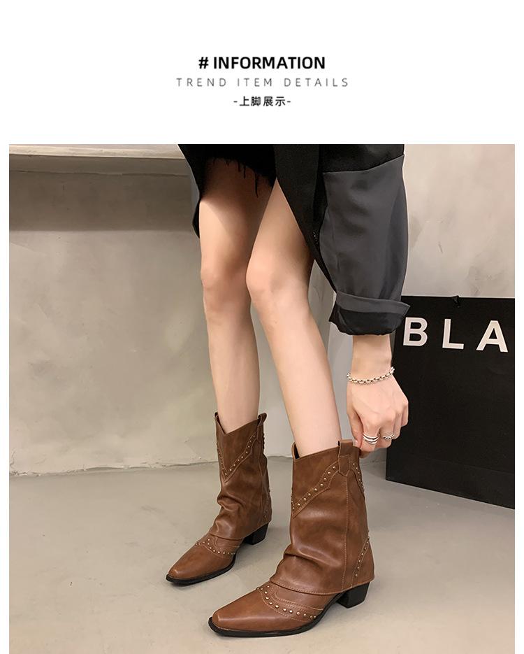 Botas vaqueras occidentales con remaches de caña alta, botas de caballero, botas de mujer, botas francesas de todo tipo, botas de cuero vintage