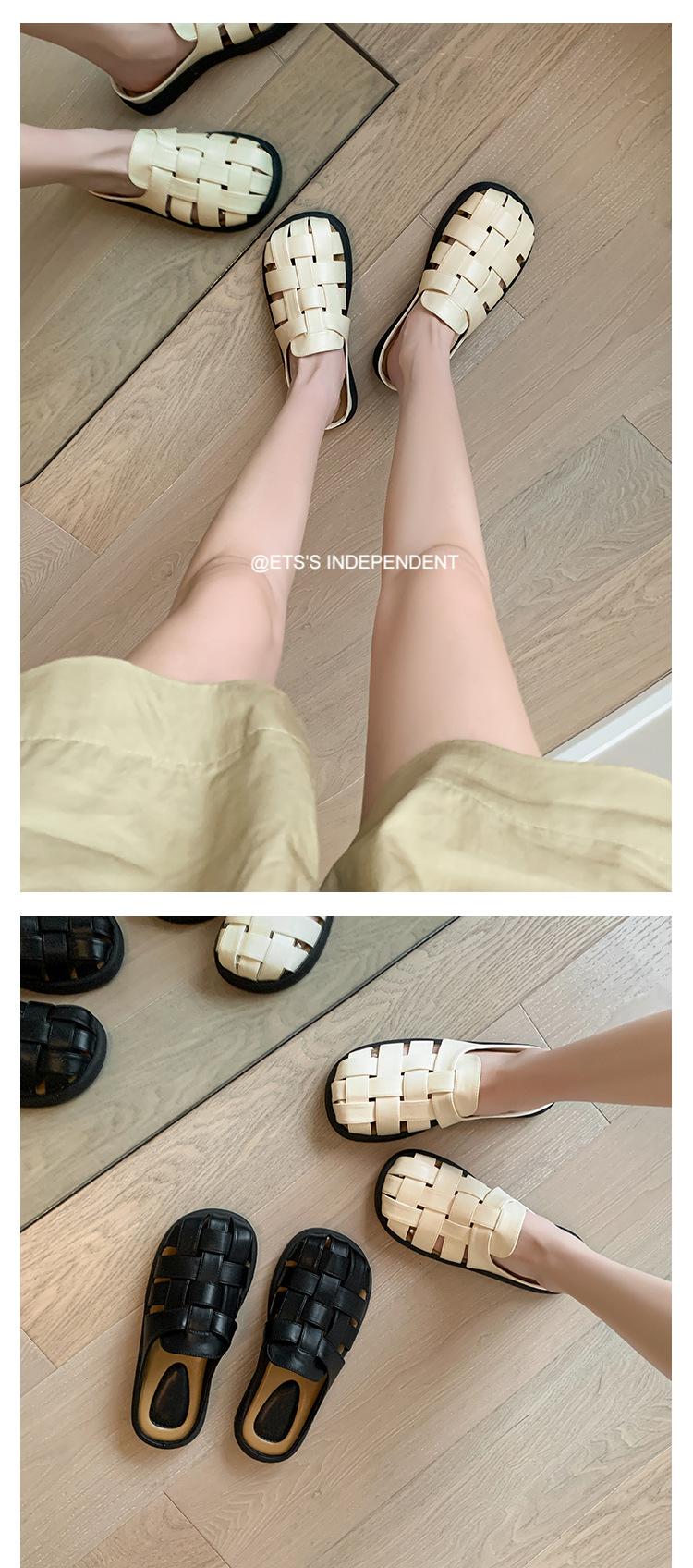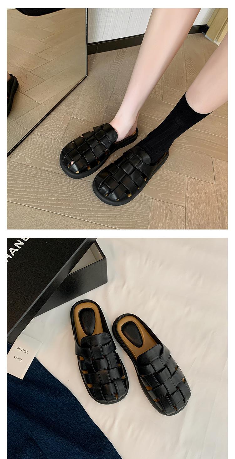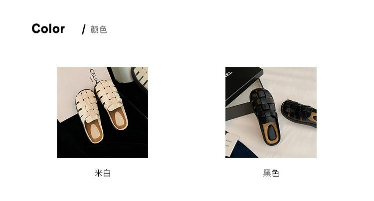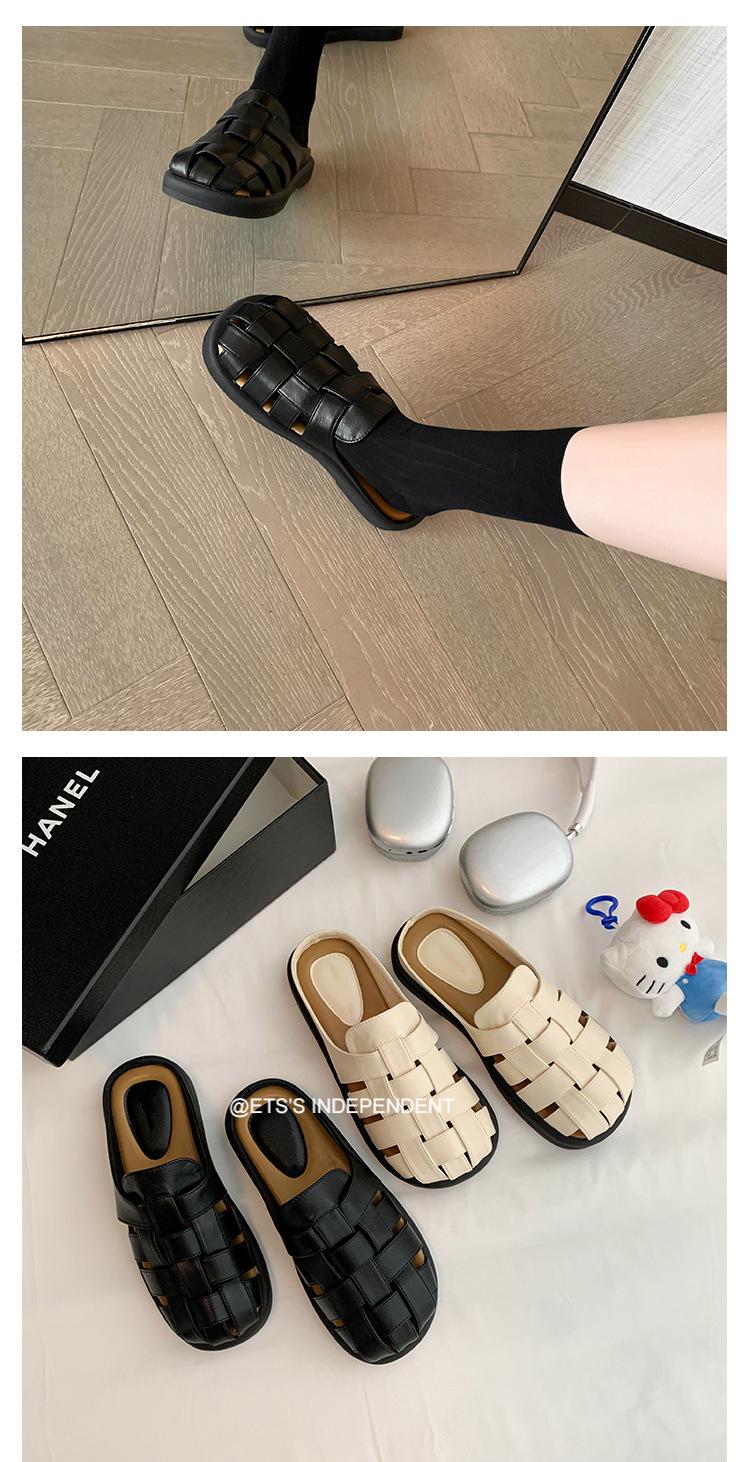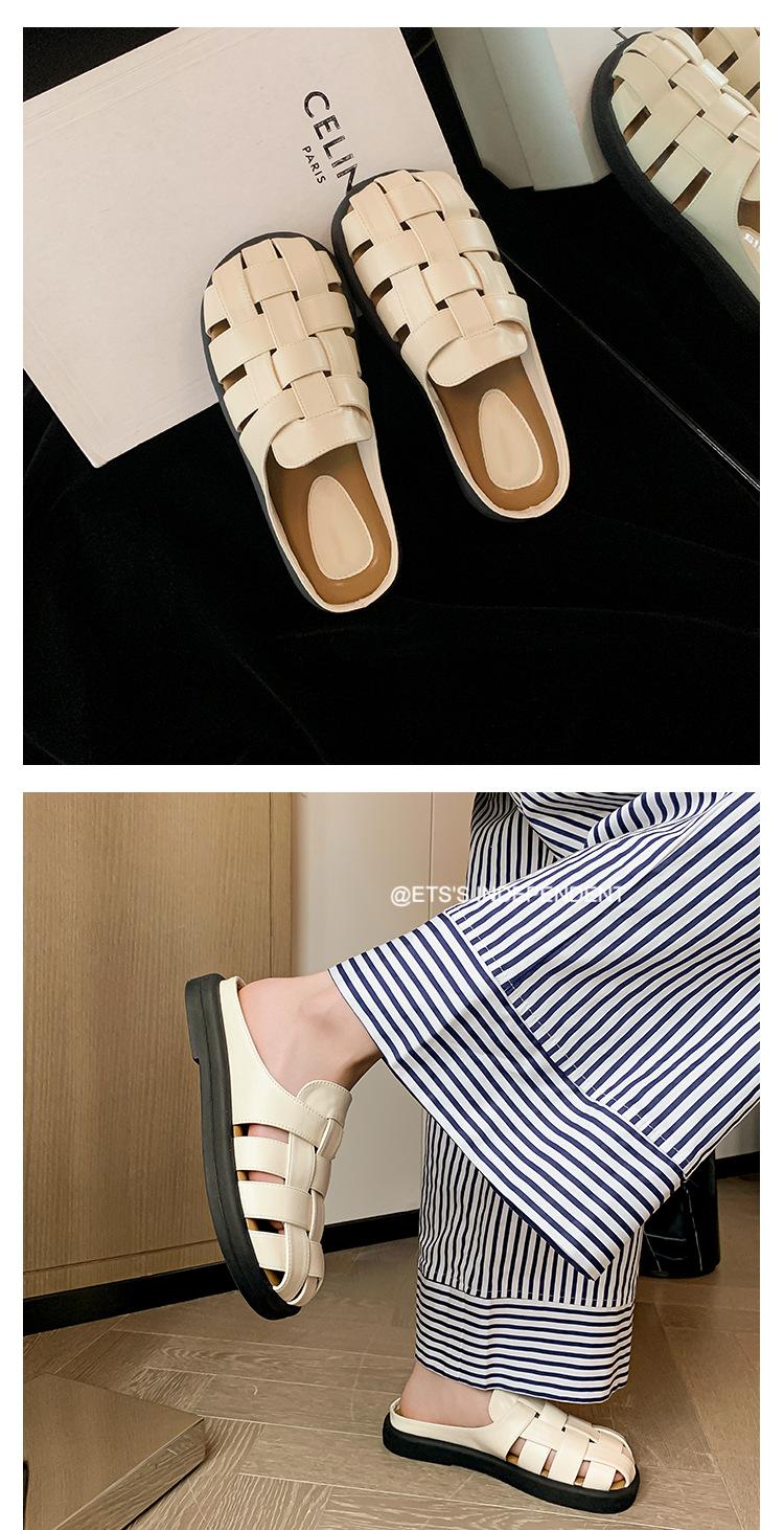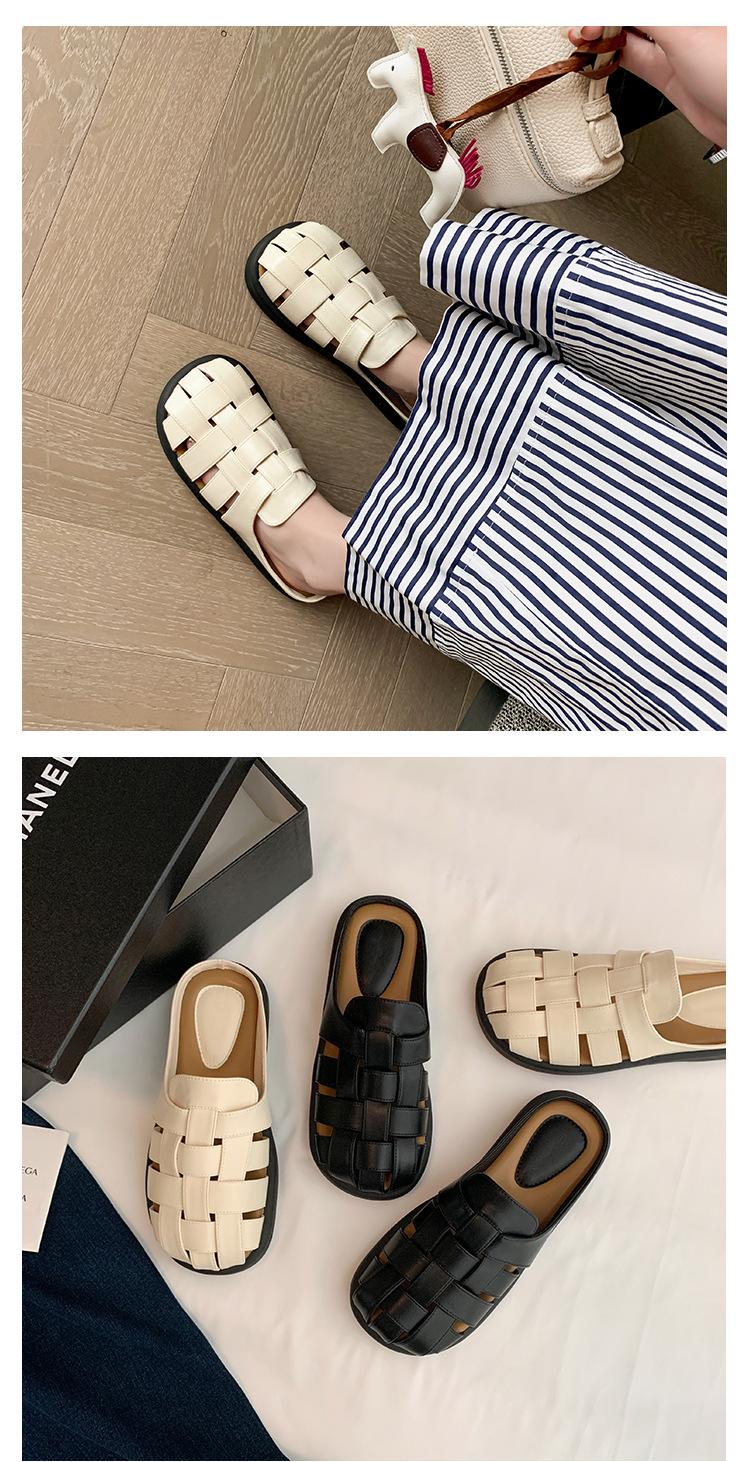 Zapatos de Verano Frescos Tejidos Jaula de Cerdo Huecos Sandalias Romanas Planas Ropa Exterior para Mujer Pantuflas de Punta Pantuflas Casuales para Mujer