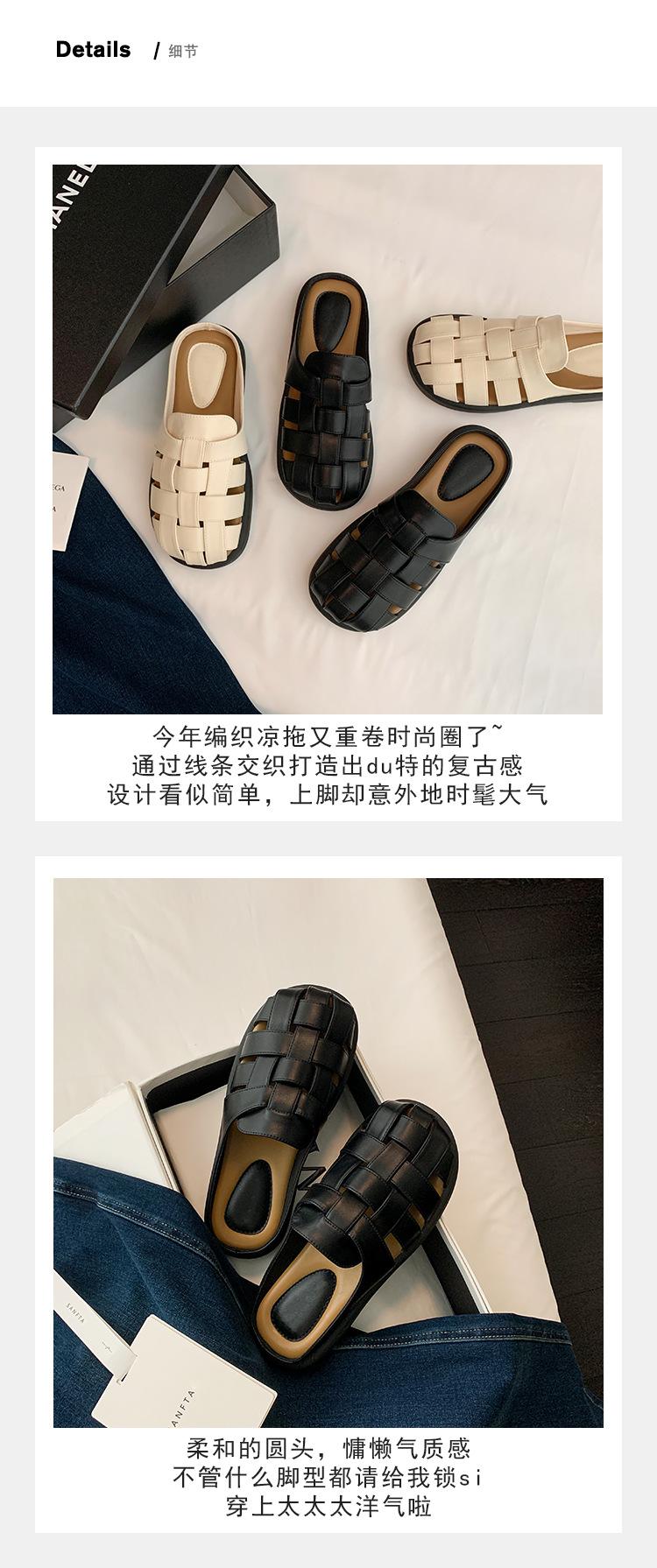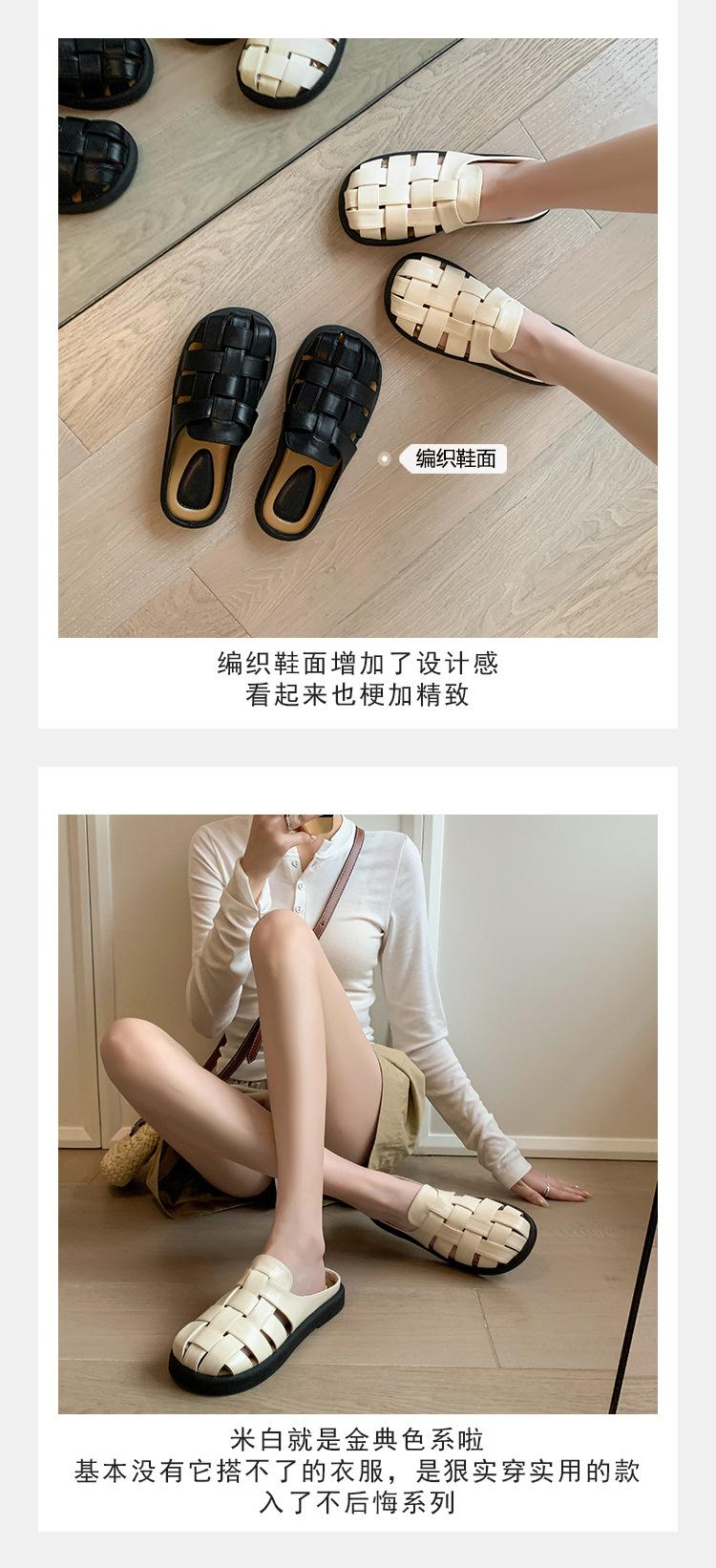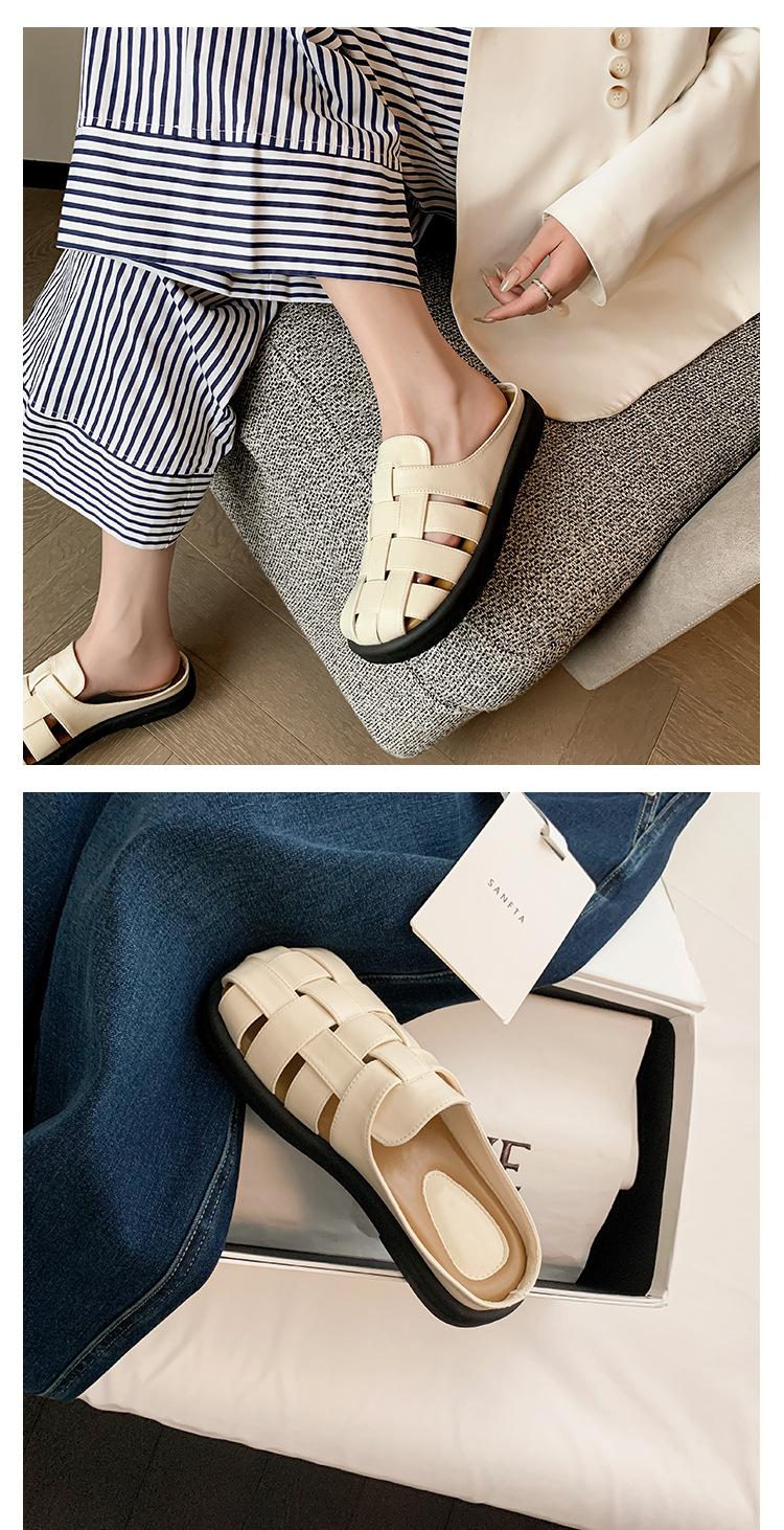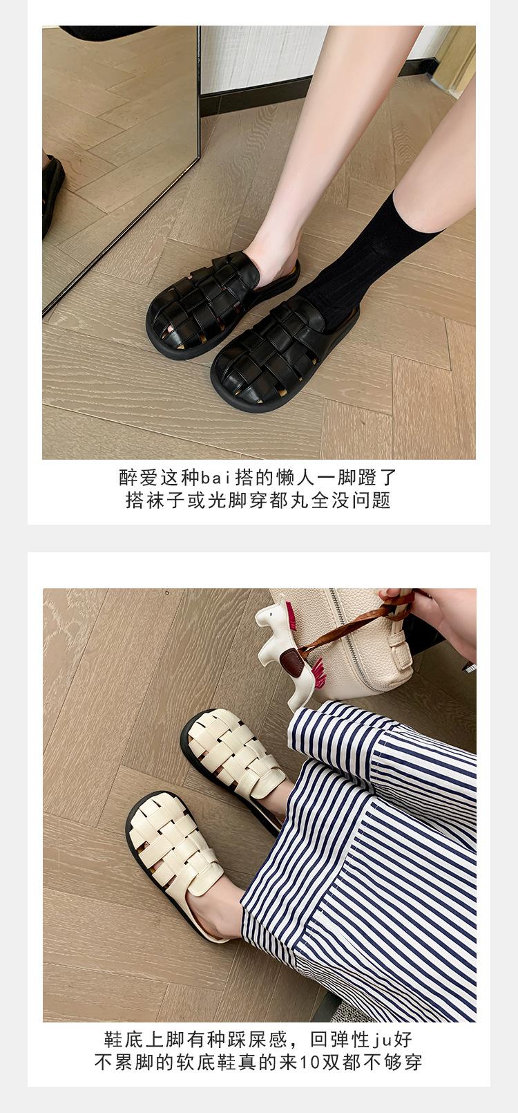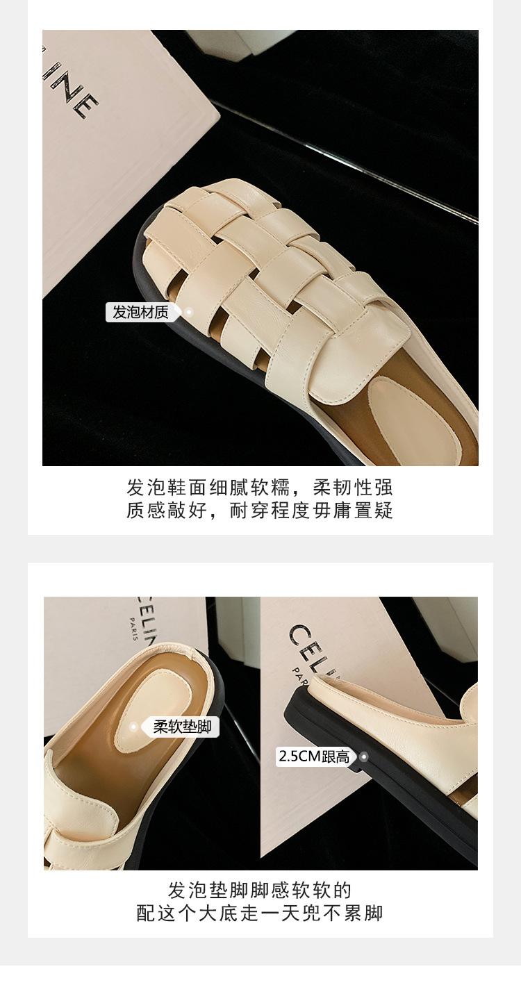 Zapatos de Verano Frescos Tejidos Jaula de Cerdo Huecos Sandalias Romanas Planas Ropa Exterior para Mujer Pantuflas de Punta Pantuflas Casuales para Mujer