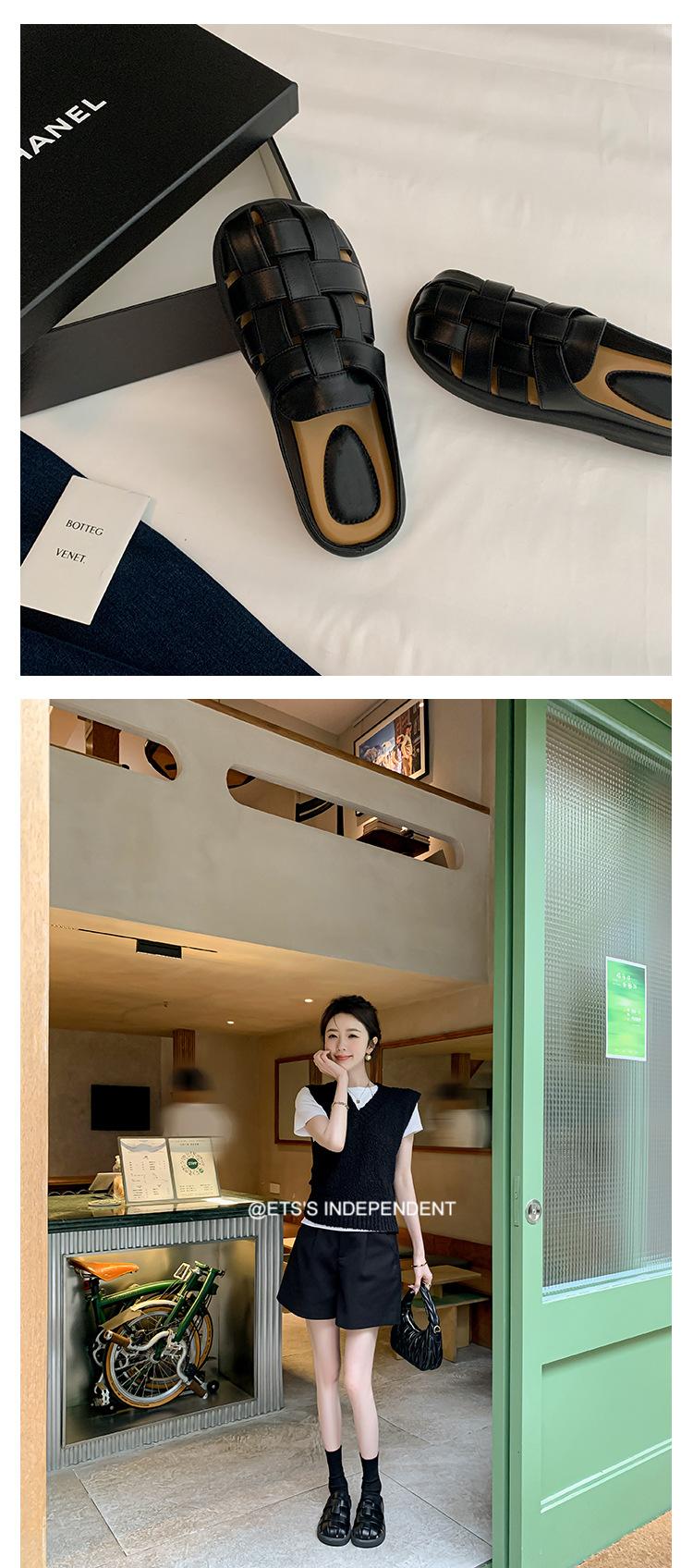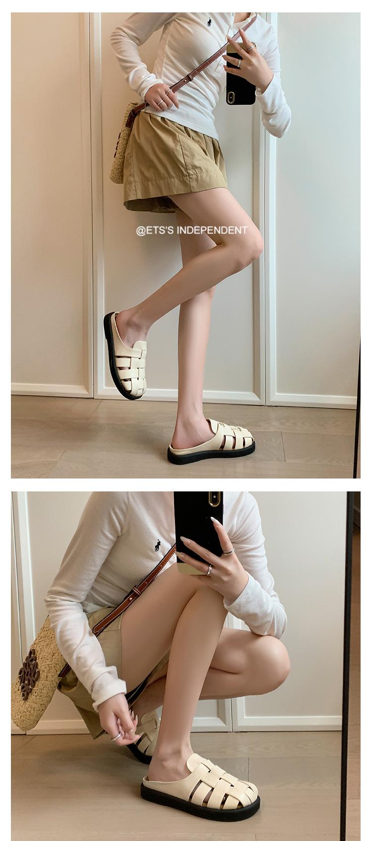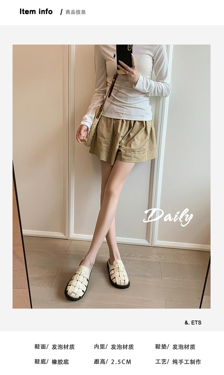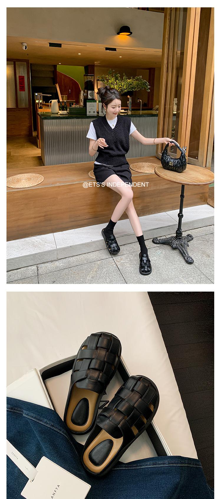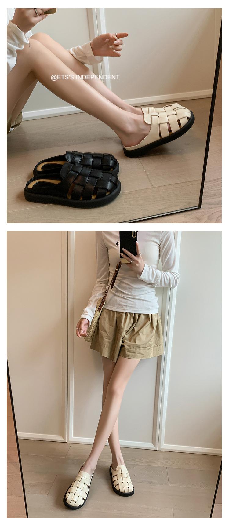 Zapatos de Verano Frescos Tejidos Jaula de Cerdo Huecos Sandalias Romanas Planas Ropa Exterior para Mujer Pantuflas de Punta Pantuflas Casuales para Mujer