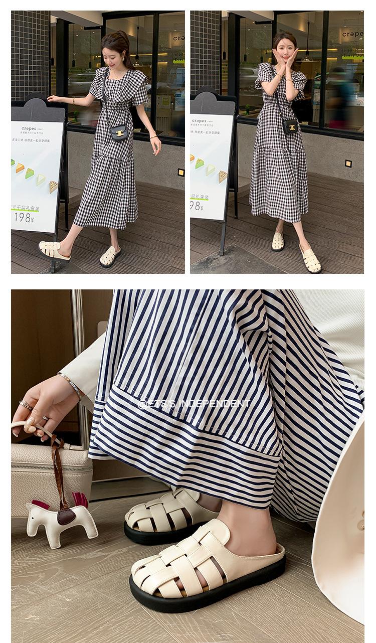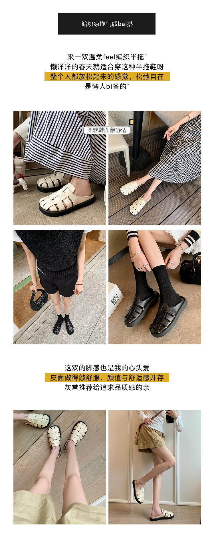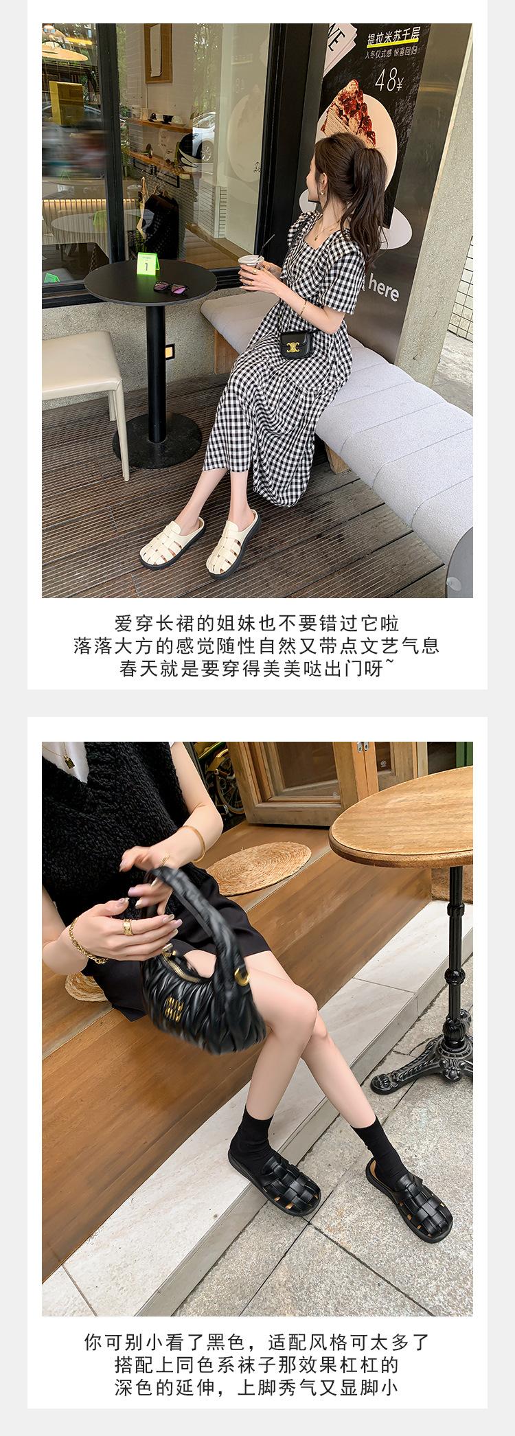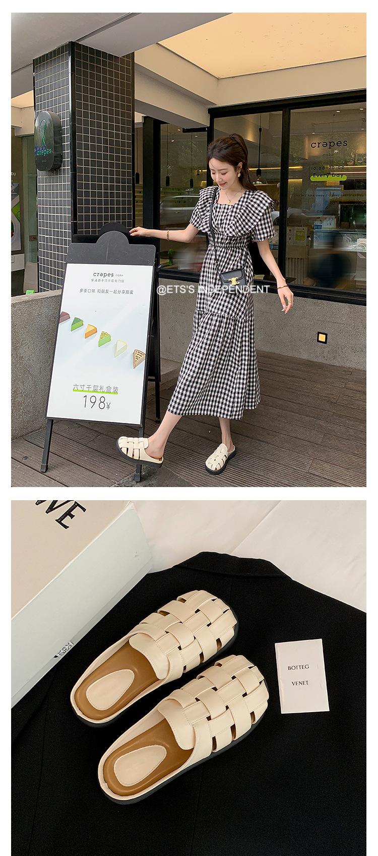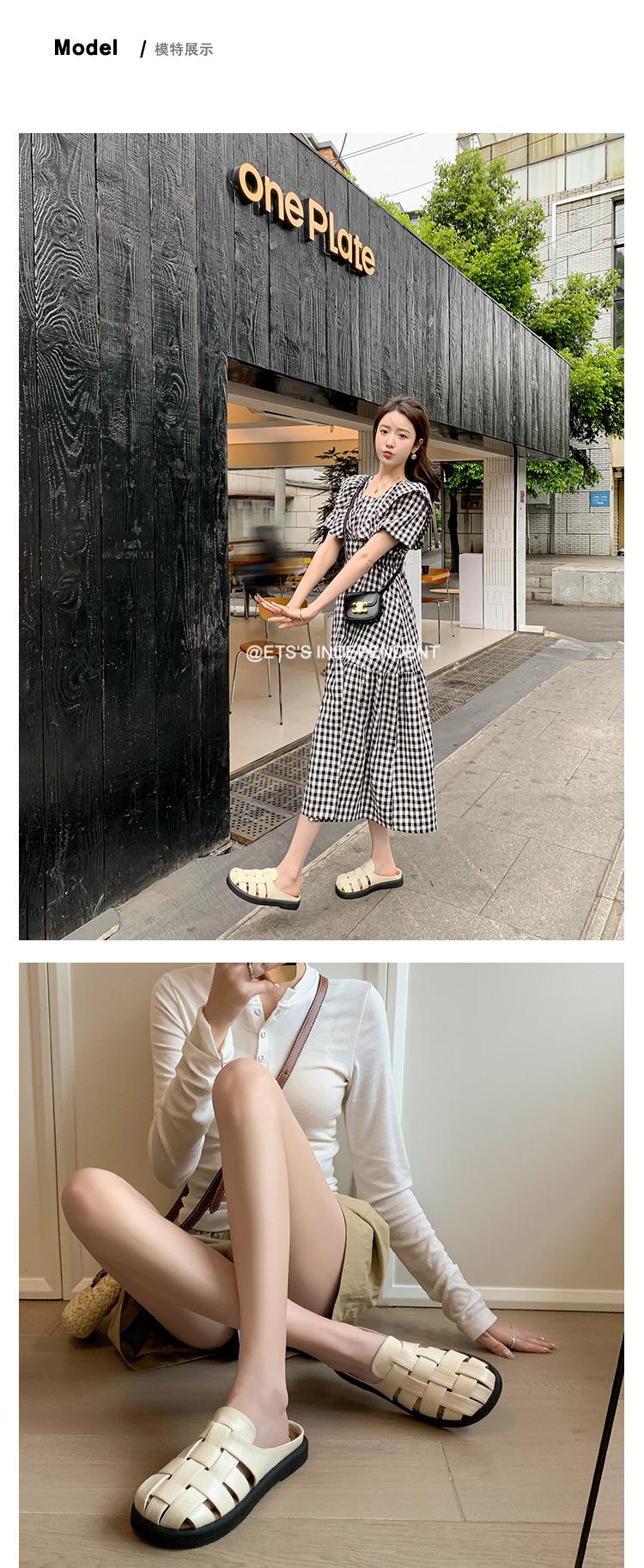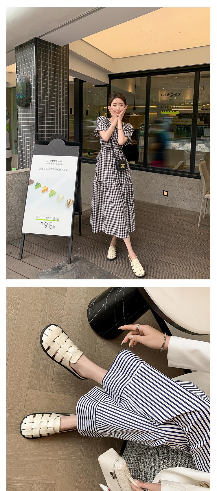 Zapatos de Verano Frescos Tejidos Jaula de Cerdo Huecos Sandalias Romanas Planas Ropa Exterior para Mujer Pantuflas de Punta Pantuflas Casuales para Mujer