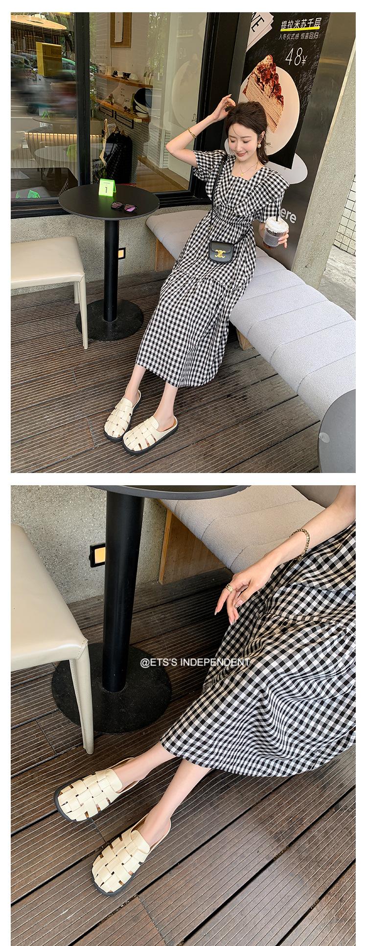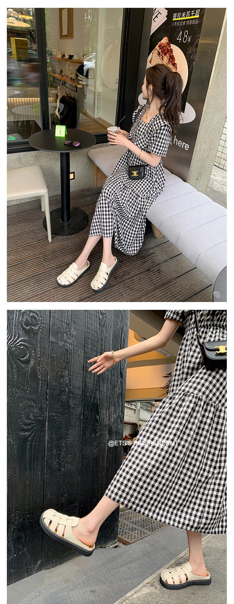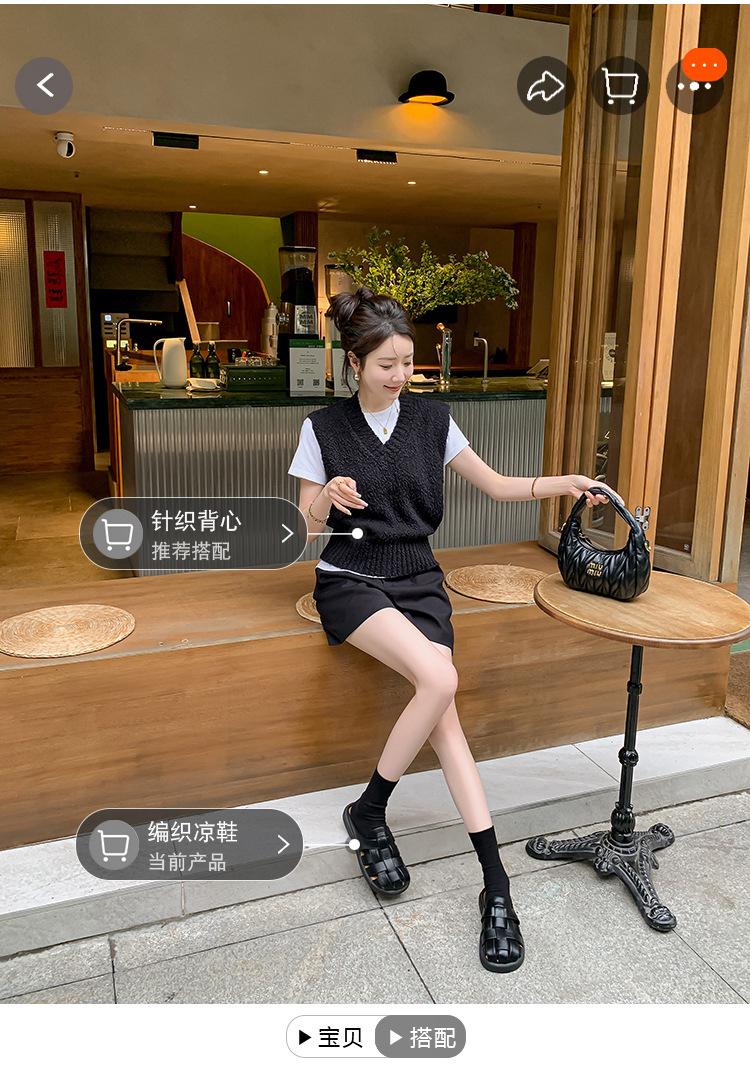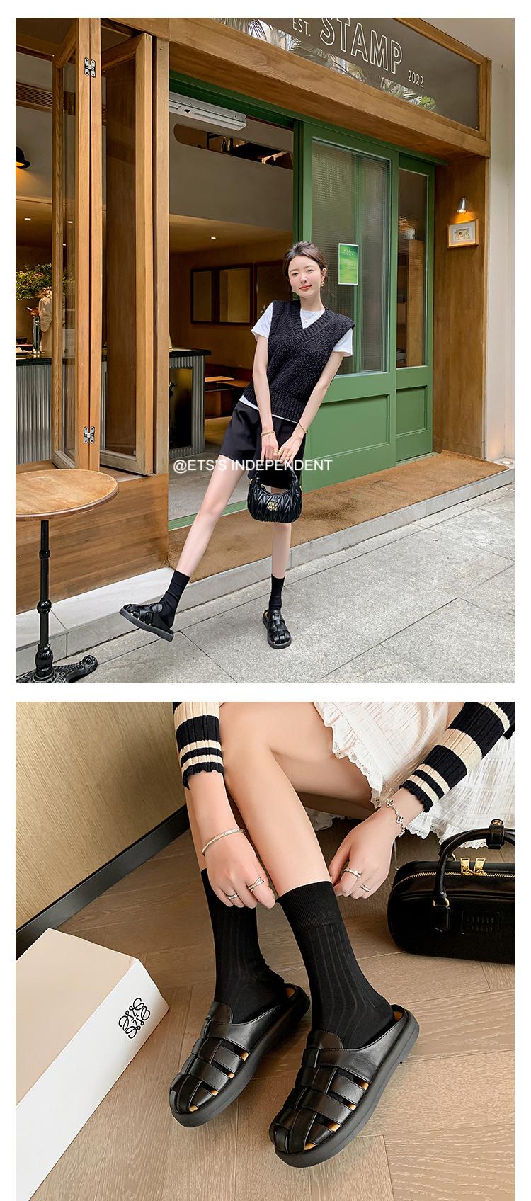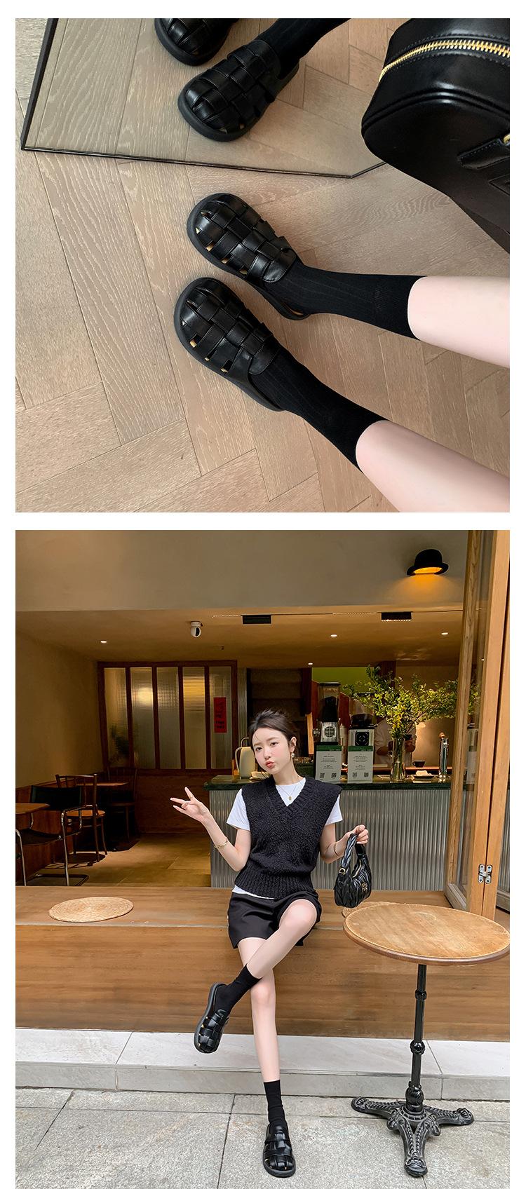 Zapatos de Verano Frescos Tejidos Jaula de Cerdo Huecos Sandalias Romanas Planas Ropa Exterior para Mujer Pantuflas de Punta Pantuflas Casuales para Mujer