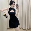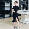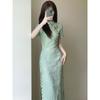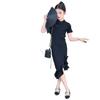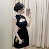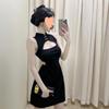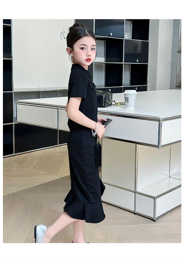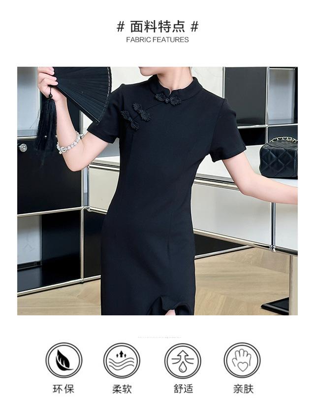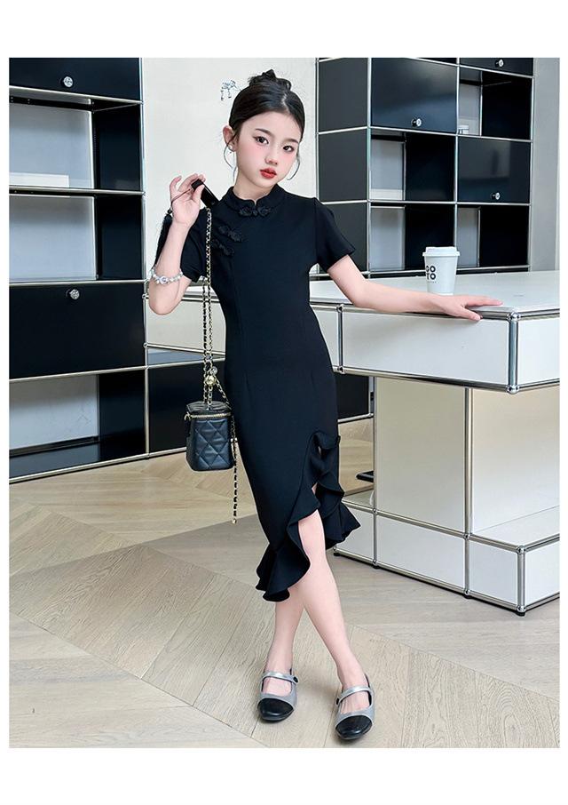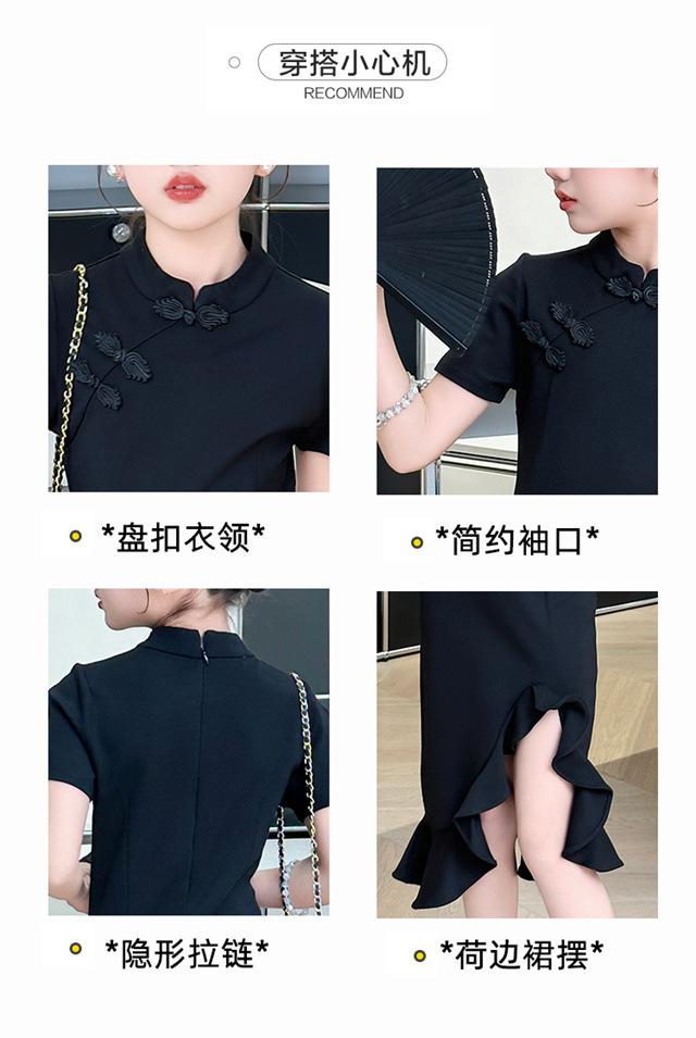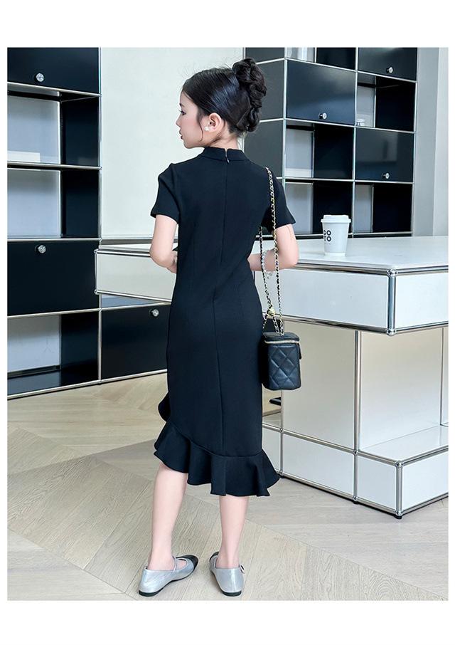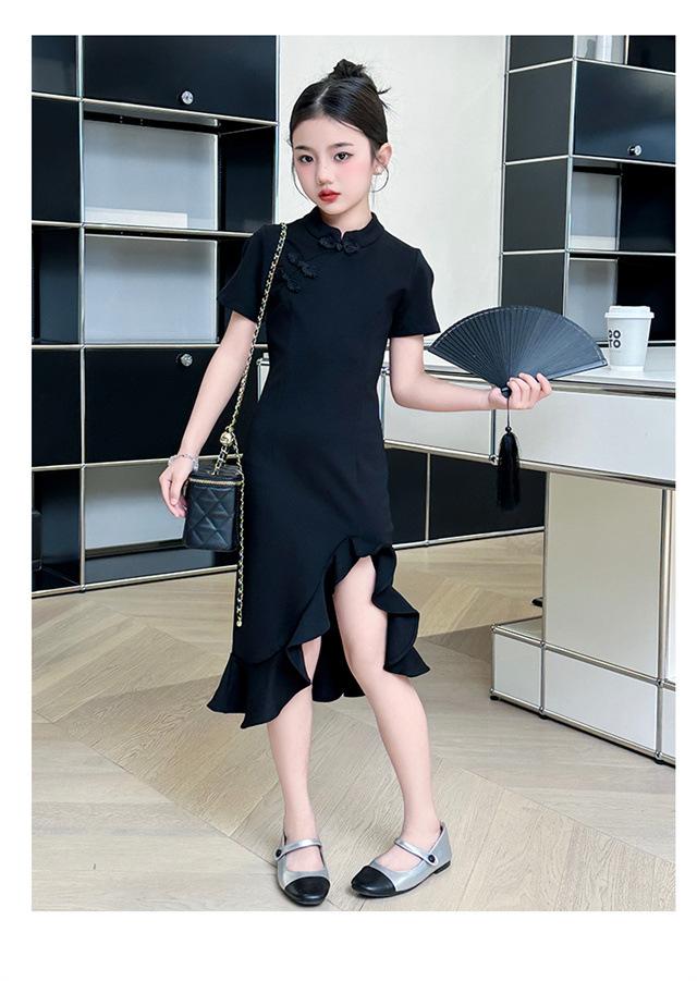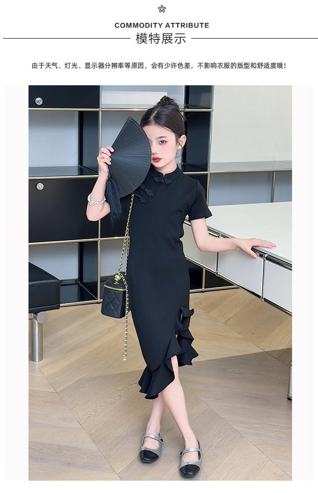 Vestido de Verano para Niñas Nuevo Cheongsam Chinoiserie Mejorado Negro Cintura Entallada Diseño Nicho Retro Elegante Cola de Pescado Cadera