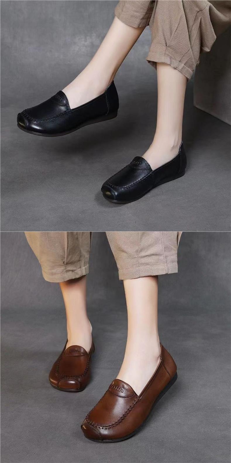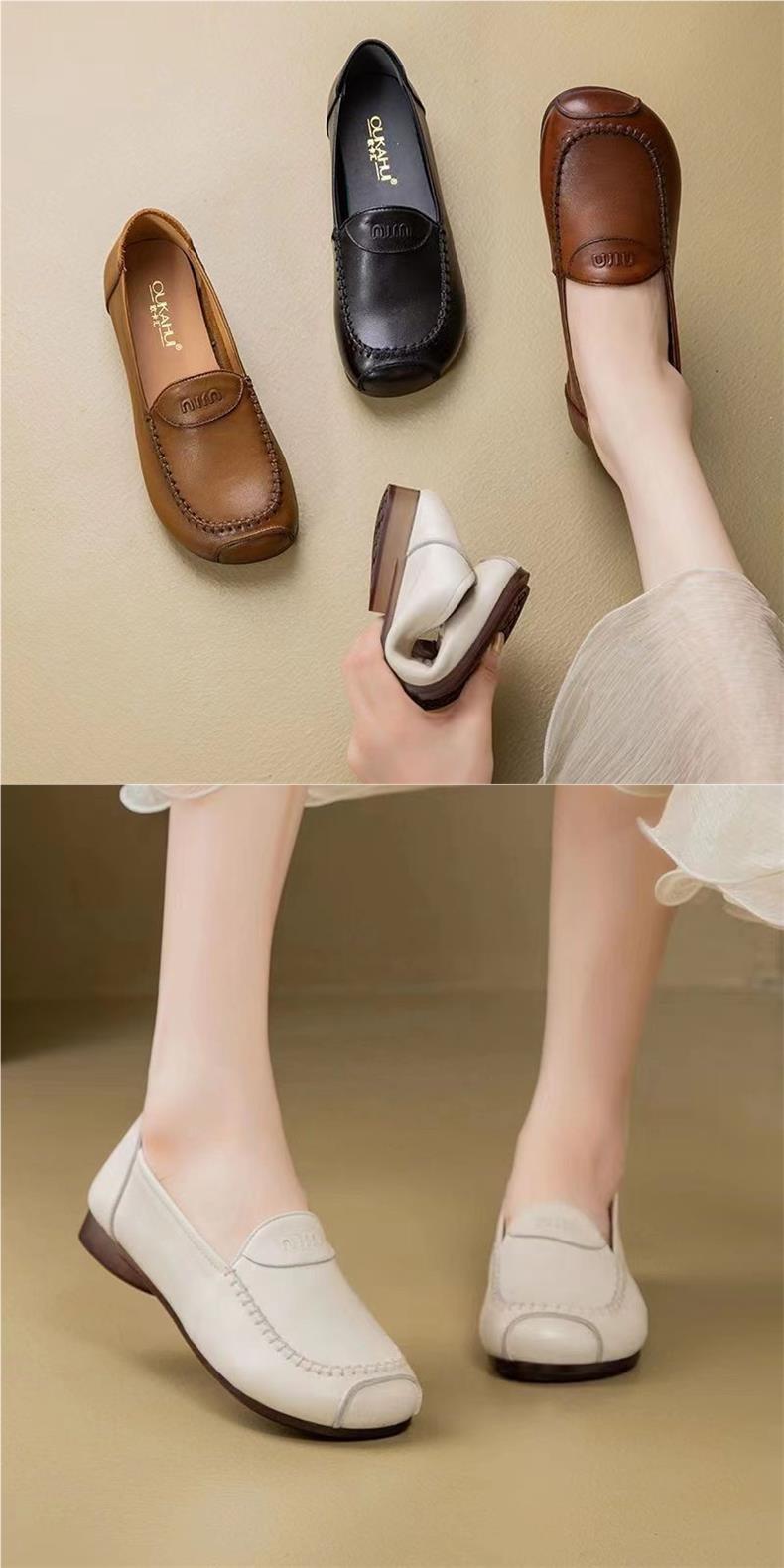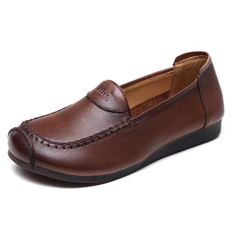 Otoño 2023, nuevo estilo, zapatos antideslizantes de suela suave para madres de mediana edad y mayores, zapatos planos de tacón bajo que combinan con todo.