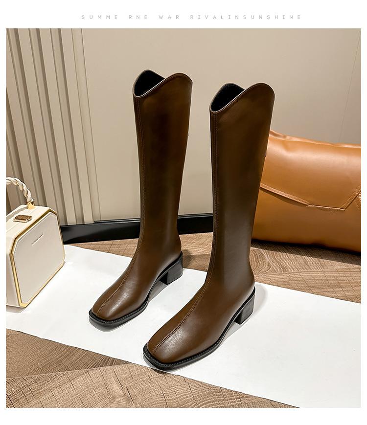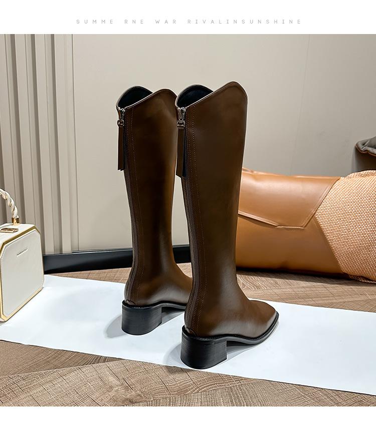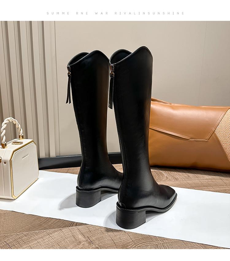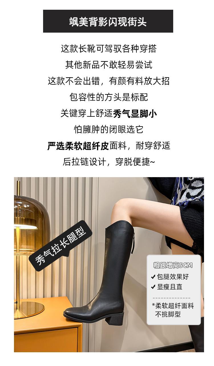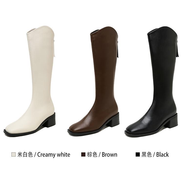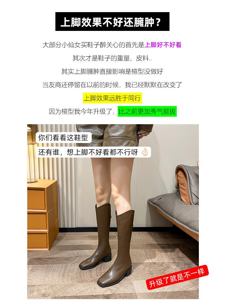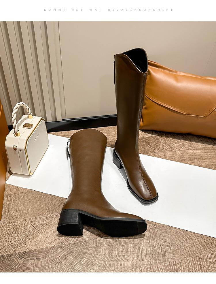 [Sin Reemplazo Cuando se Agoten] Botas de Tacón Grueso para Mujer Otoño e Invierno Nuevas Punta Cuadrada Elegantes Versátiles Botas Ajustadas Botas Altas