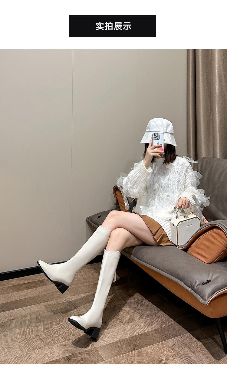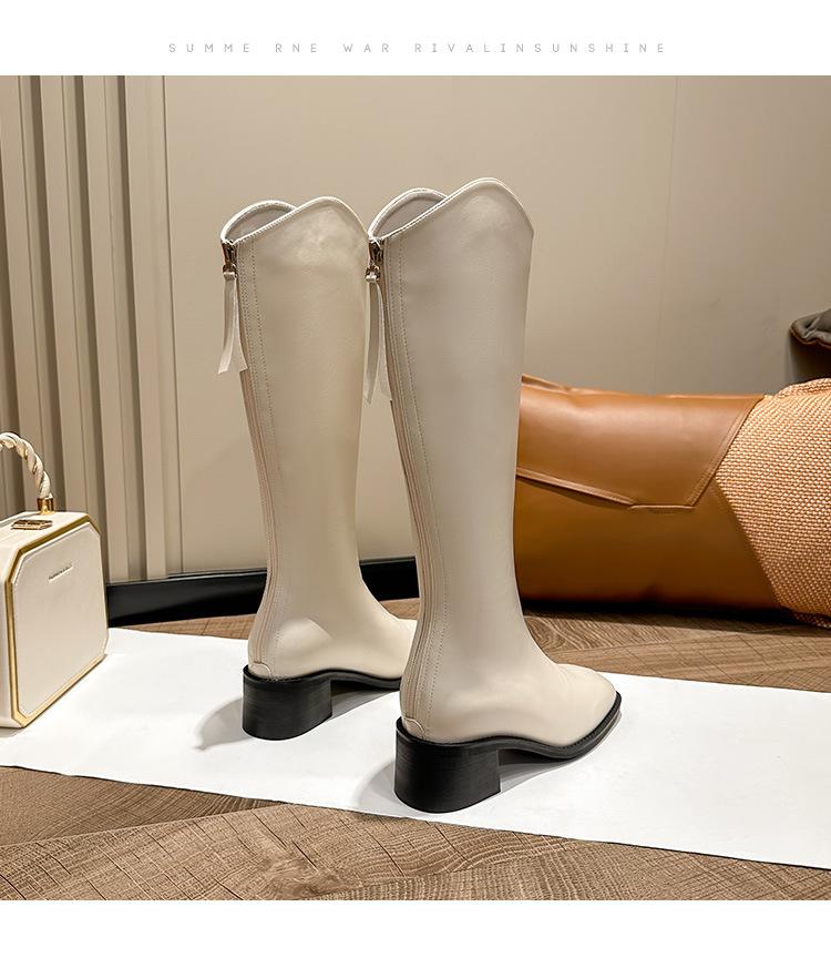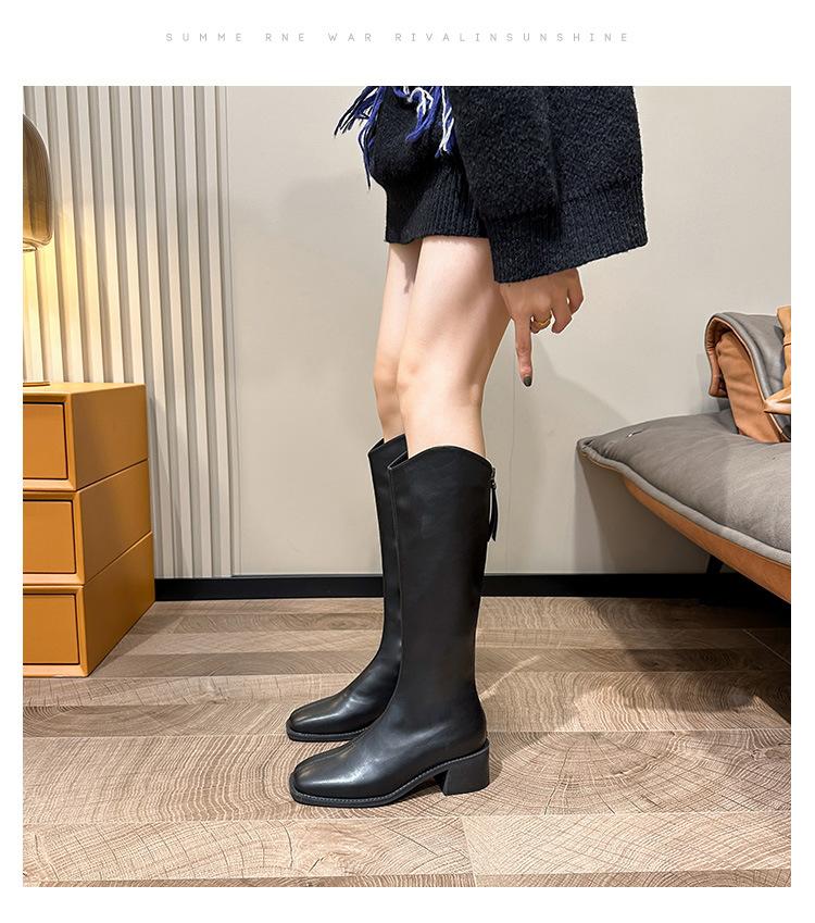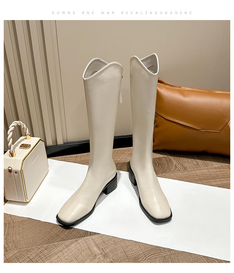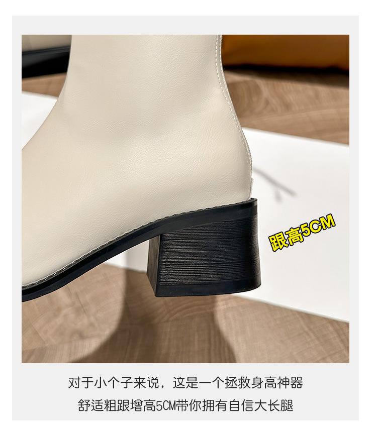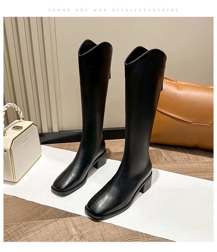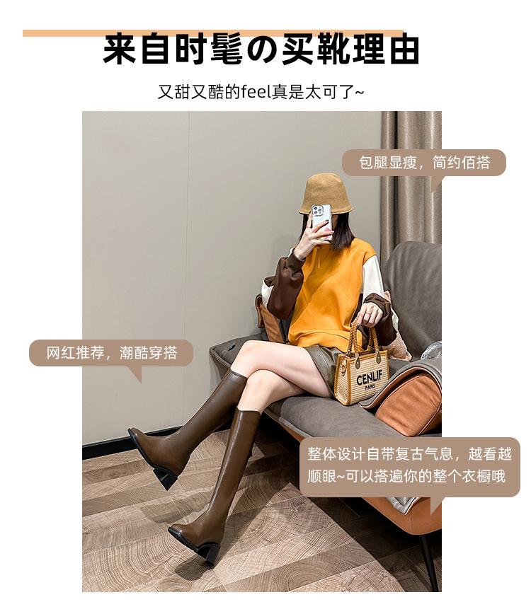 [Sin Reemplazo Cuando se Agoten] Botas de Tacón Grueso para Mujer Otoño e Invierno Nuevas Punta Cuadrada Elegantes Versátiles Botas Ajustadas Botas Altas