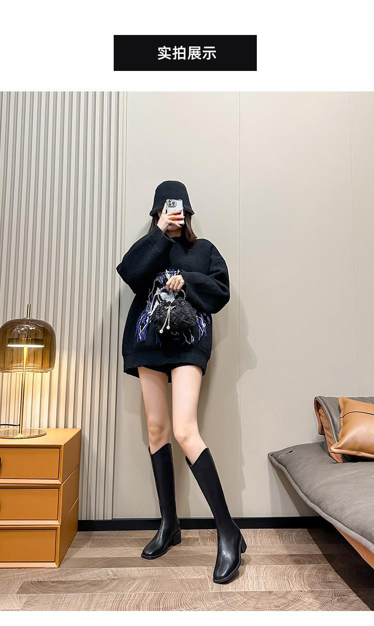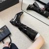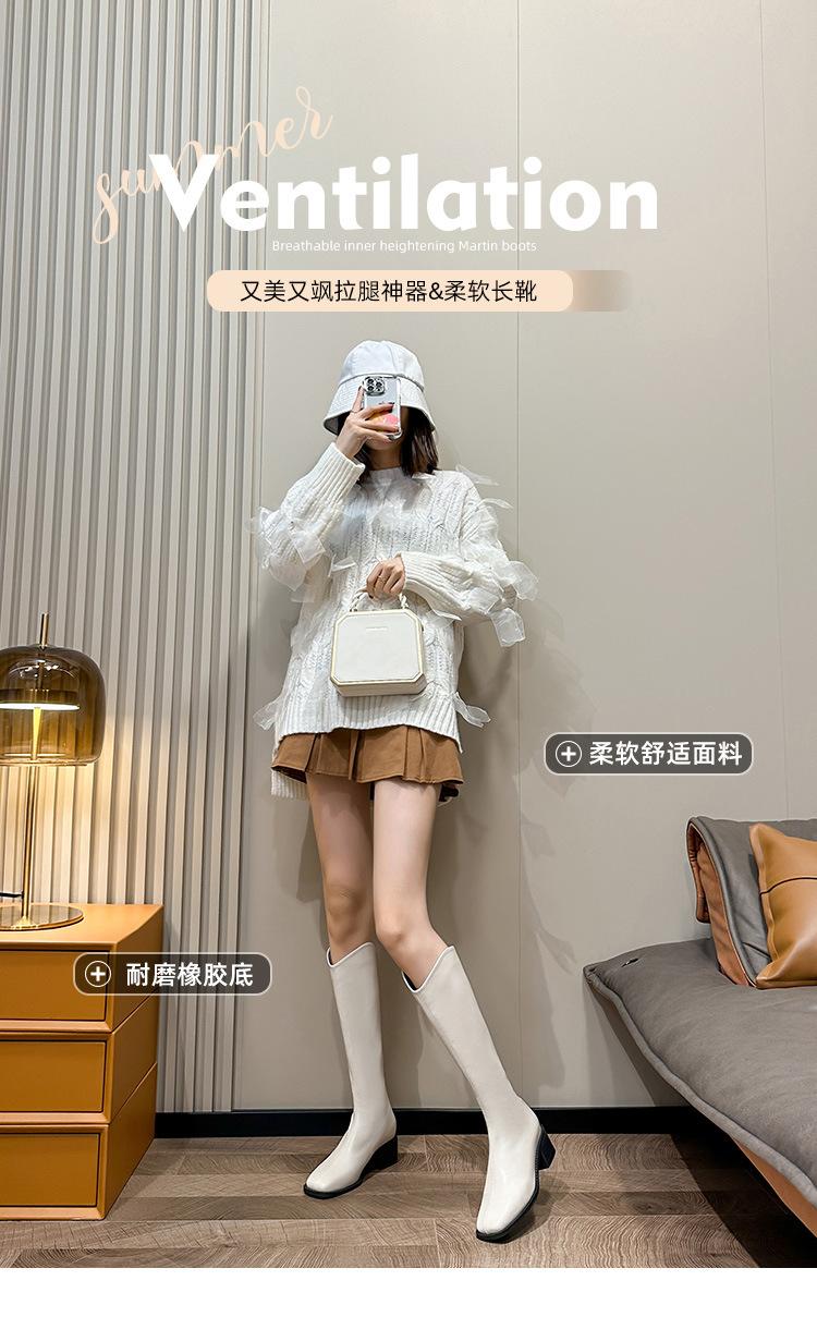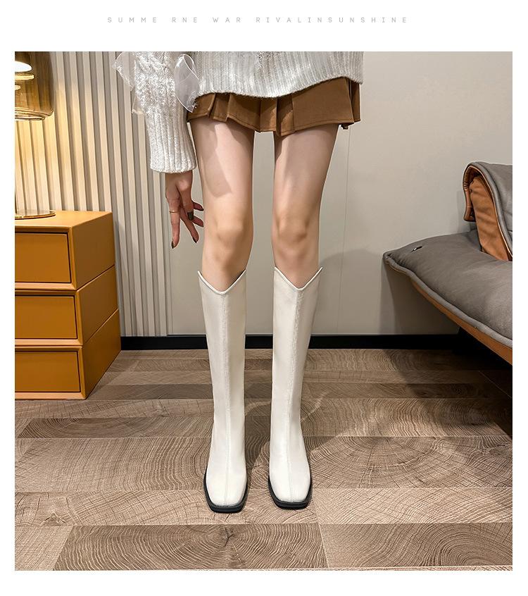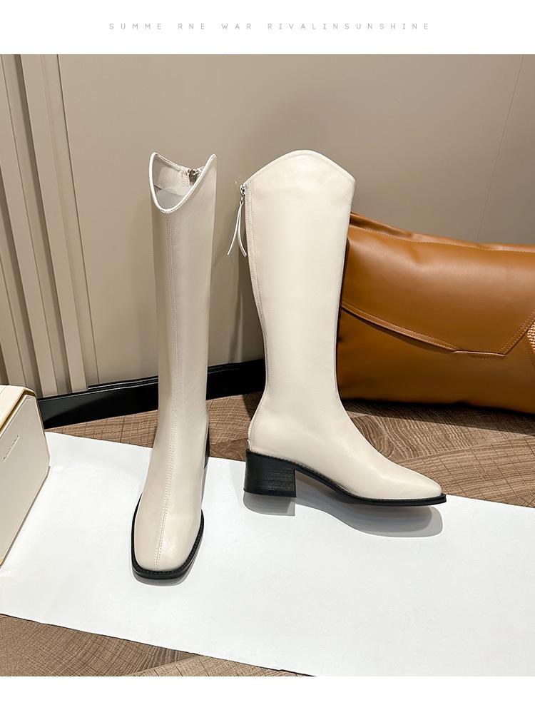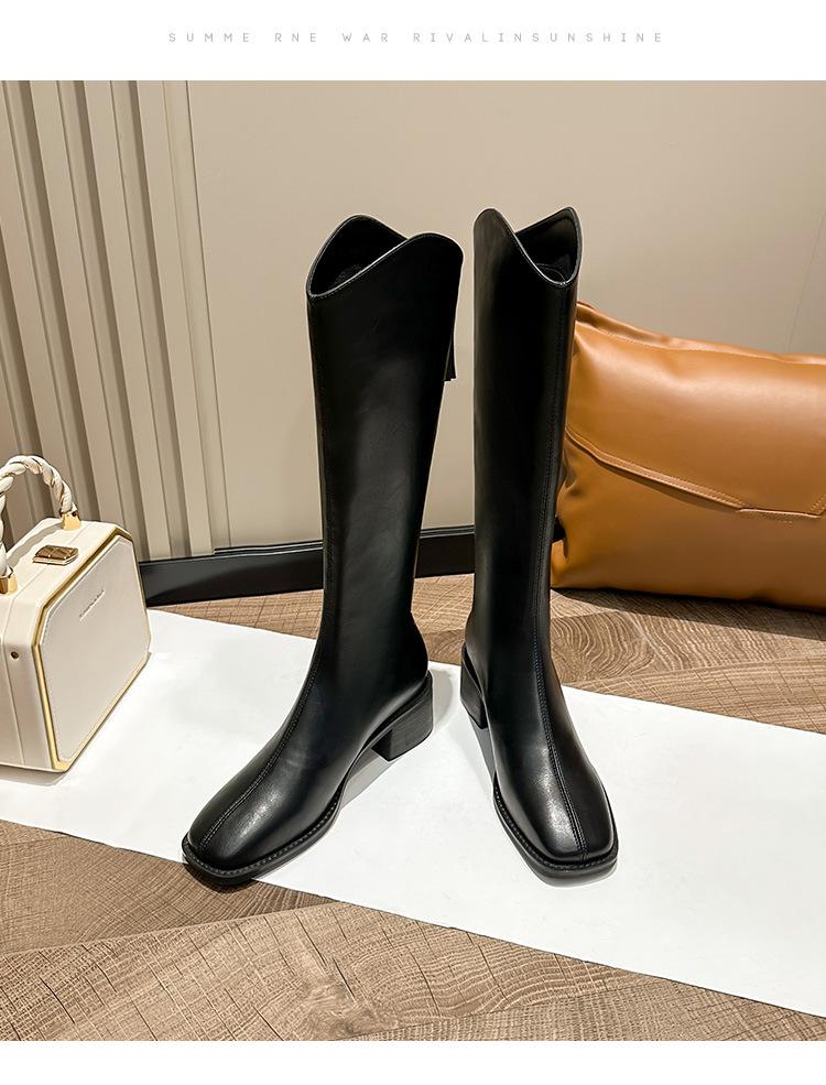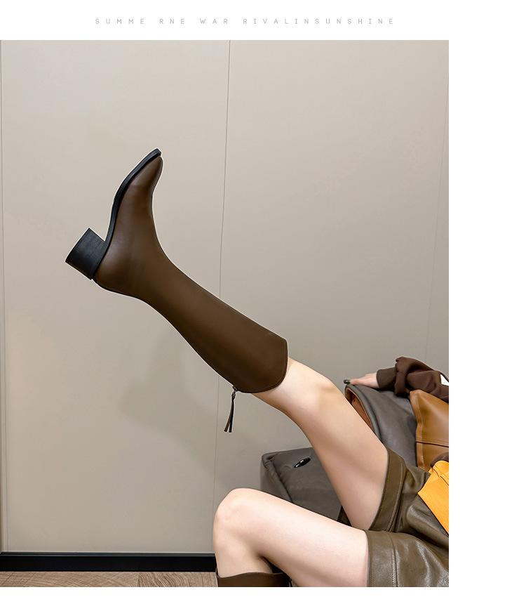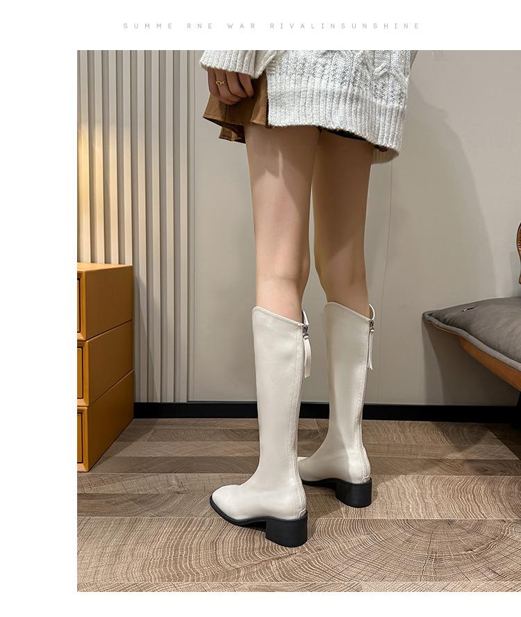 [Sin Reemplazo Cuando se Agoten] Botas de Tacón Grueso para Mujer Otoño e Invierno Nuevas Punta Cuadrada Elegantes Versátiles Botas Ajustadas Botas Altas