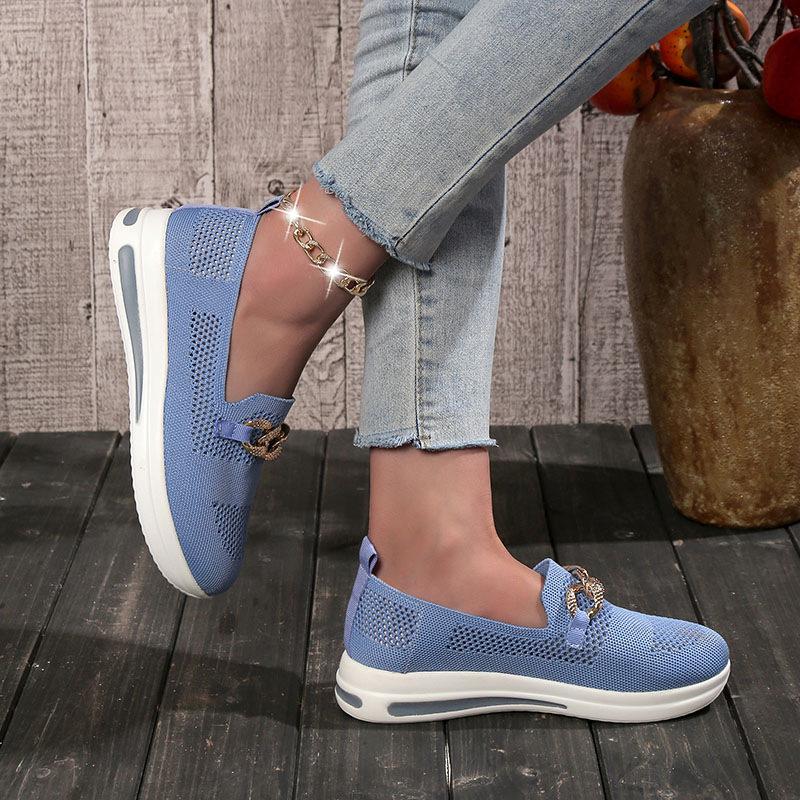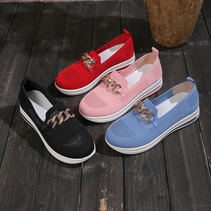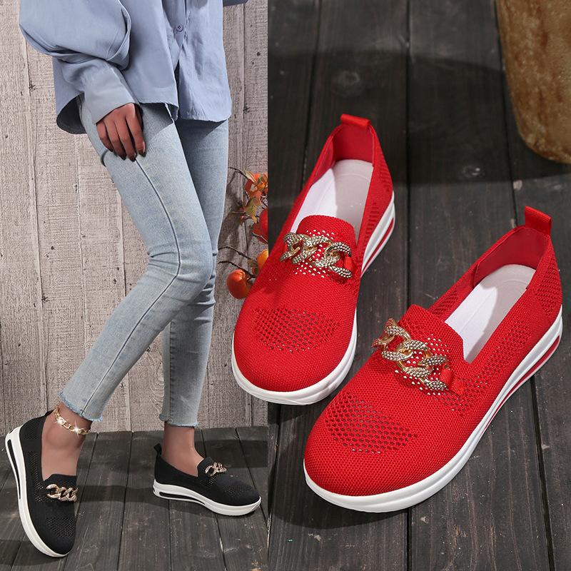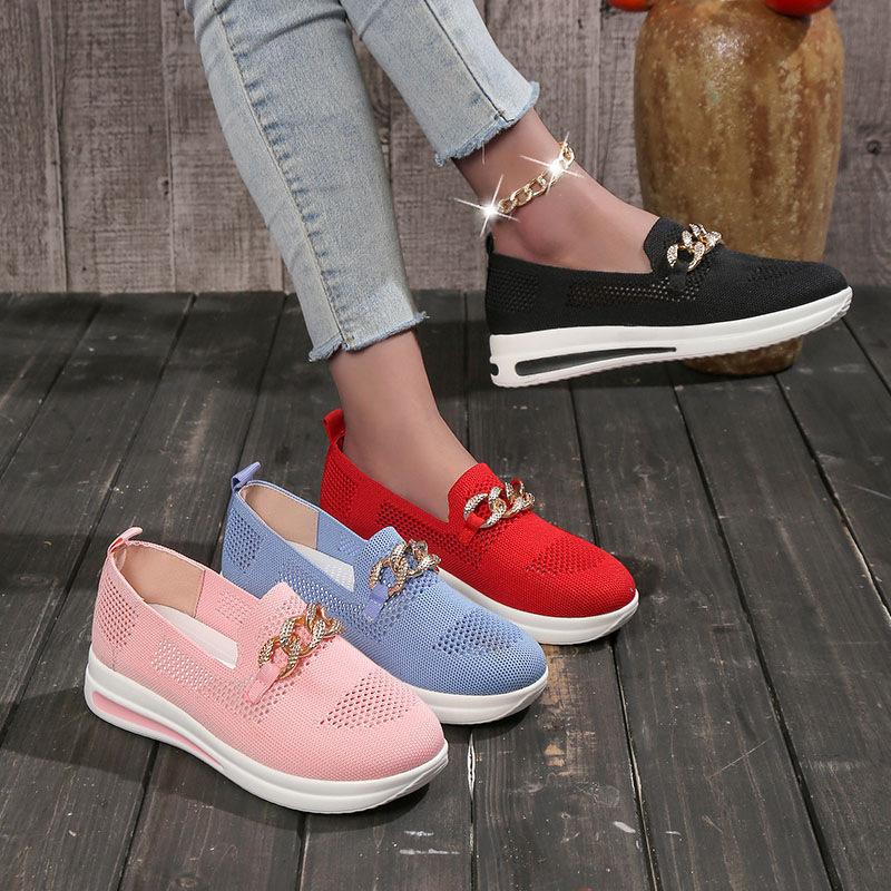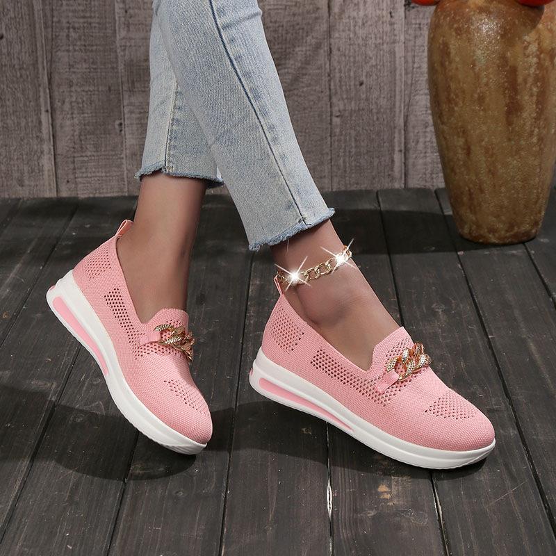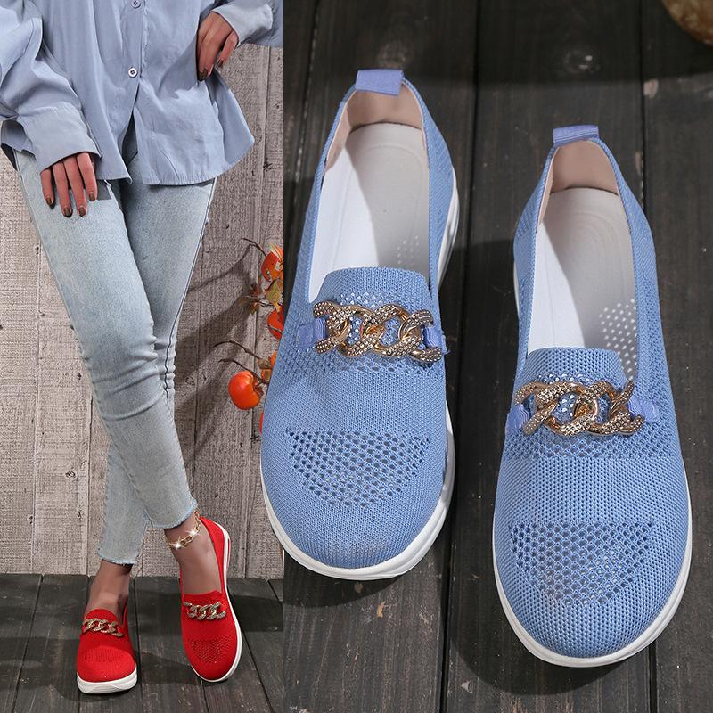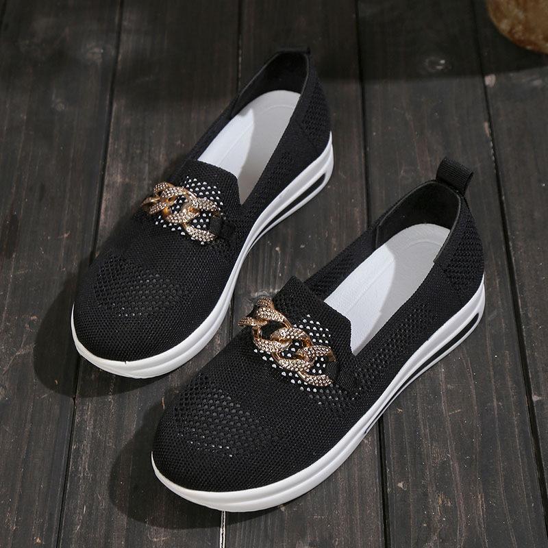 Zapatos Casuales para Mujer de Tallas Grandes, Estilo Nuevo Primavera 2025, Mocasines Planos de Punta Redonda, Talla 43, Zapatos de Mujer de Flyknit Transpirable
