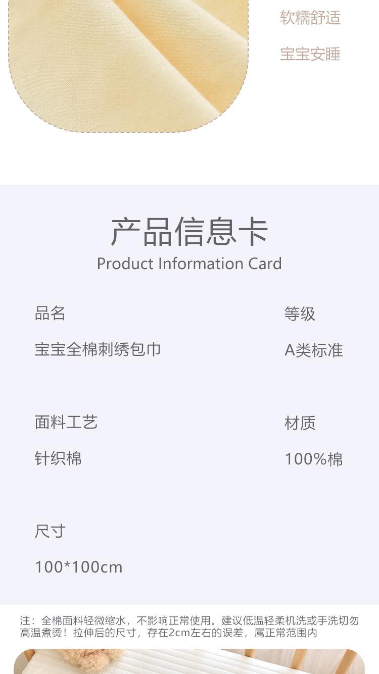 Swaddle de algodón bordado para bebé Hecho de algodón tejido con buena elasticidad, absorción de humedad y transpirabilidad Envoltura suave de 360°, cuidado íntimo para prevenir saltos Una toalla se puede usar para múltiples propósitos, se puede usar como envoltorio, toalla de baño, manta, etc. Material de algodón, suave y ligeramente elástico, bordado exquisito, calidad Clase A