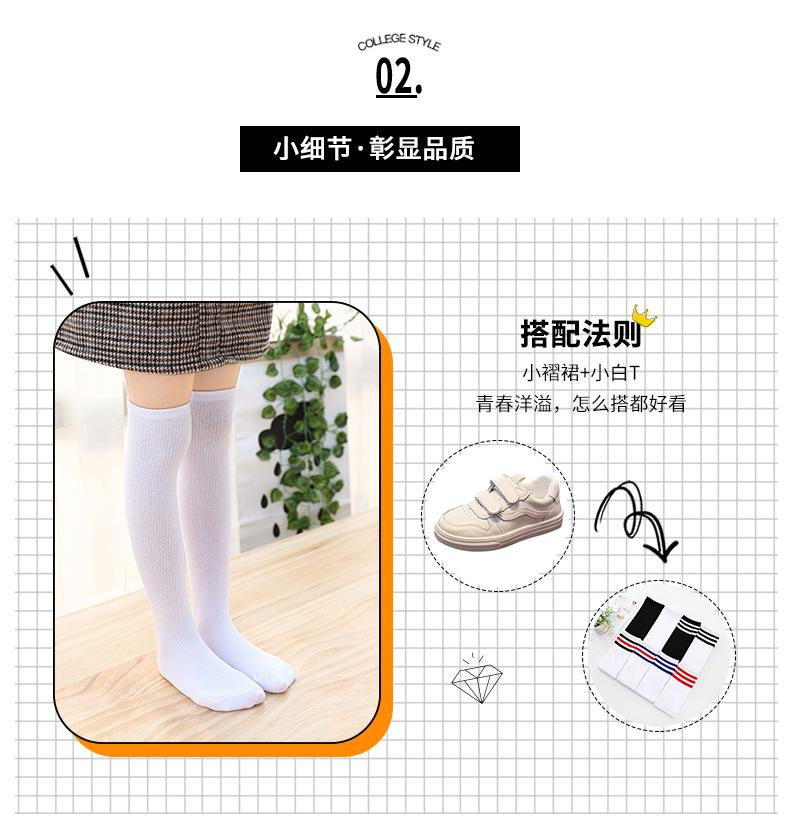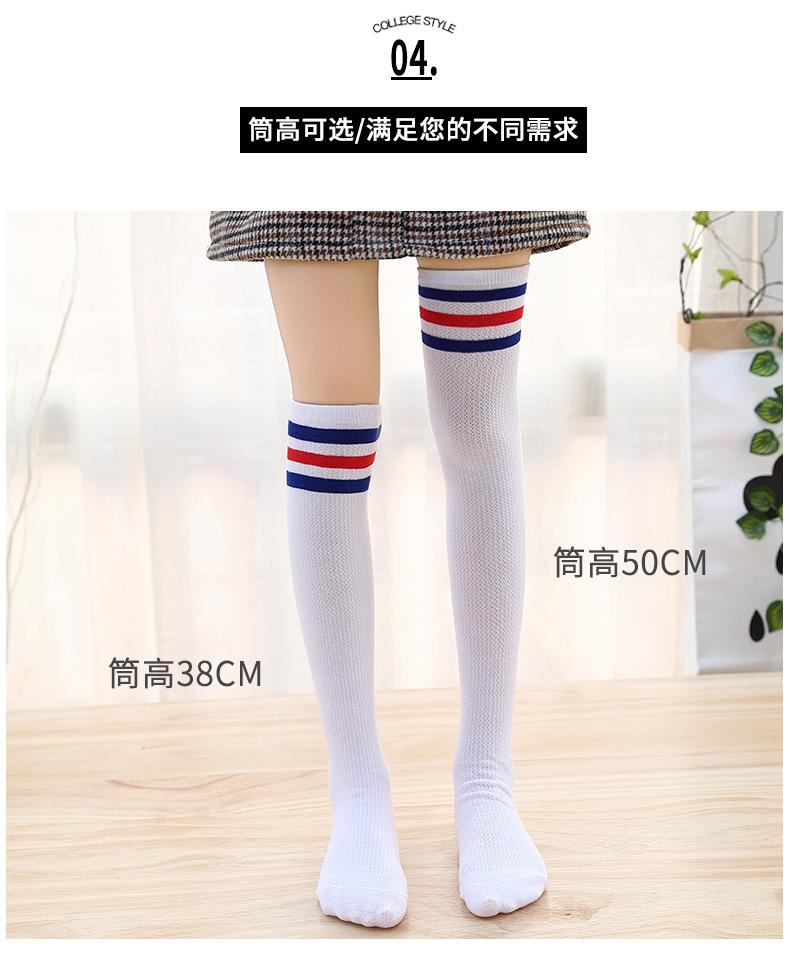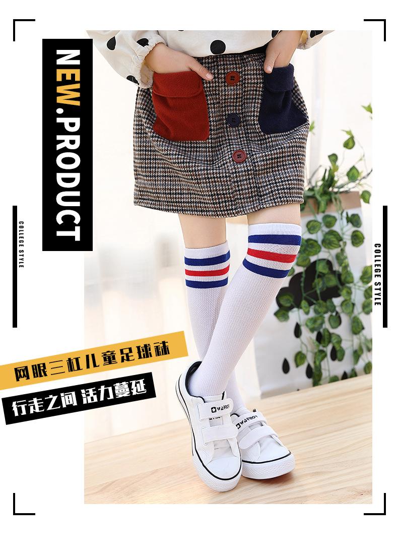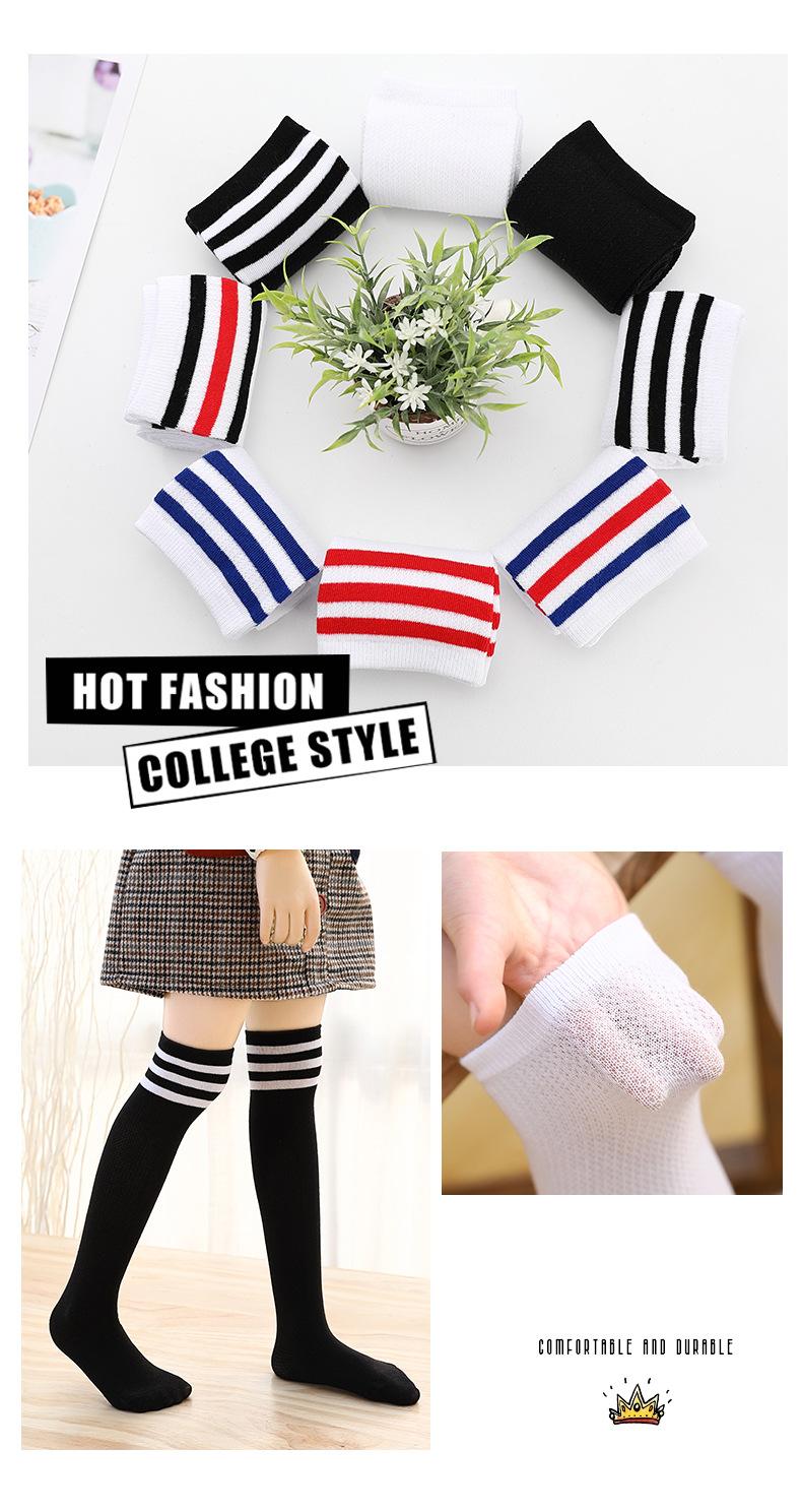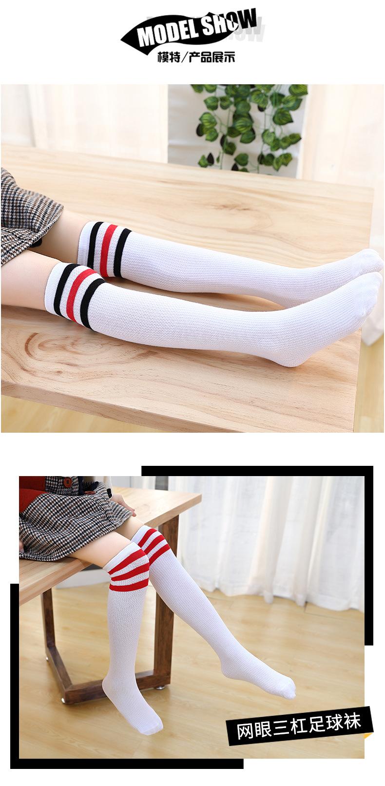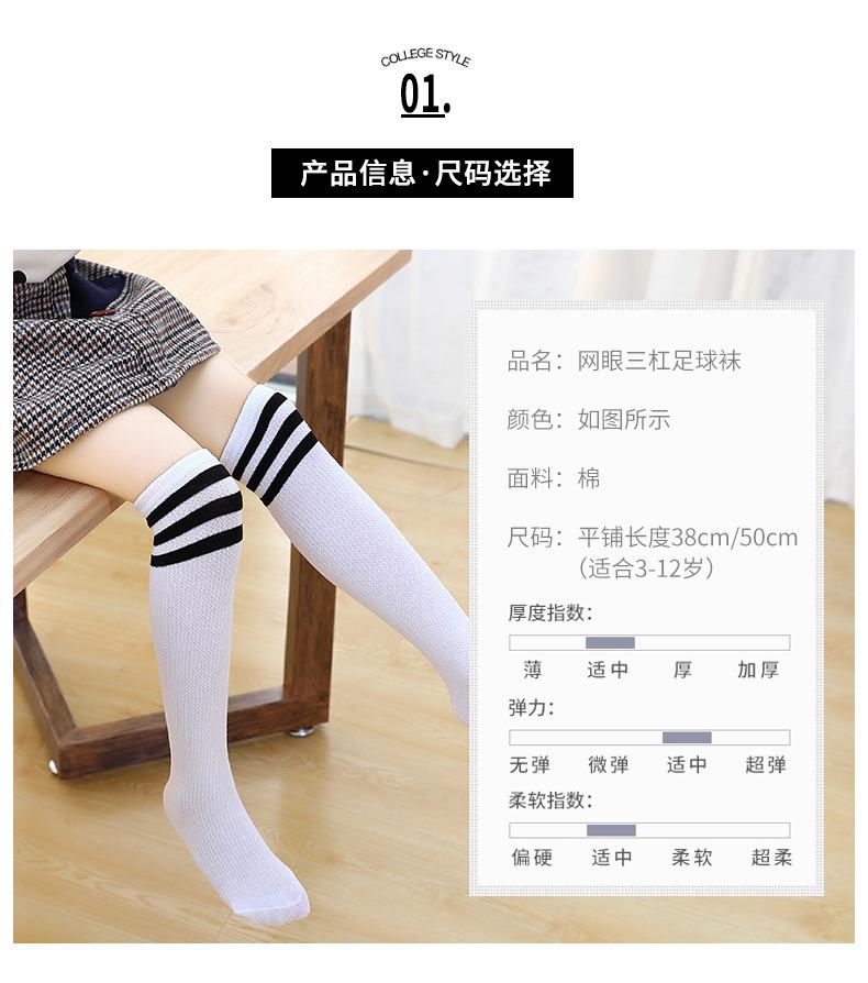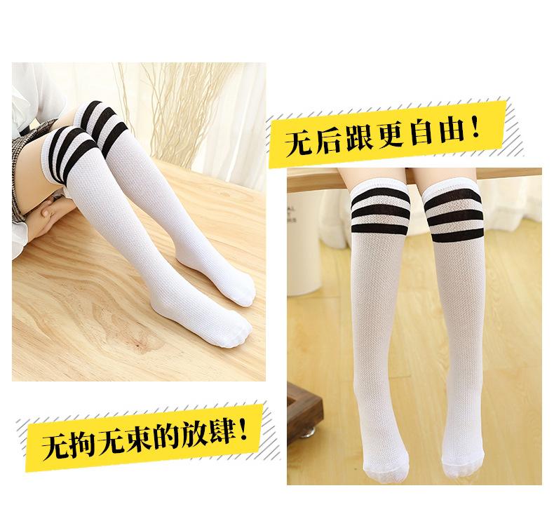 Calcetines de malla para niños hasta la rodilla primavera y verano delgados de algodón calcetines de tubo para niñas vintage a rayas de tres barras medias para bebés al por mayor