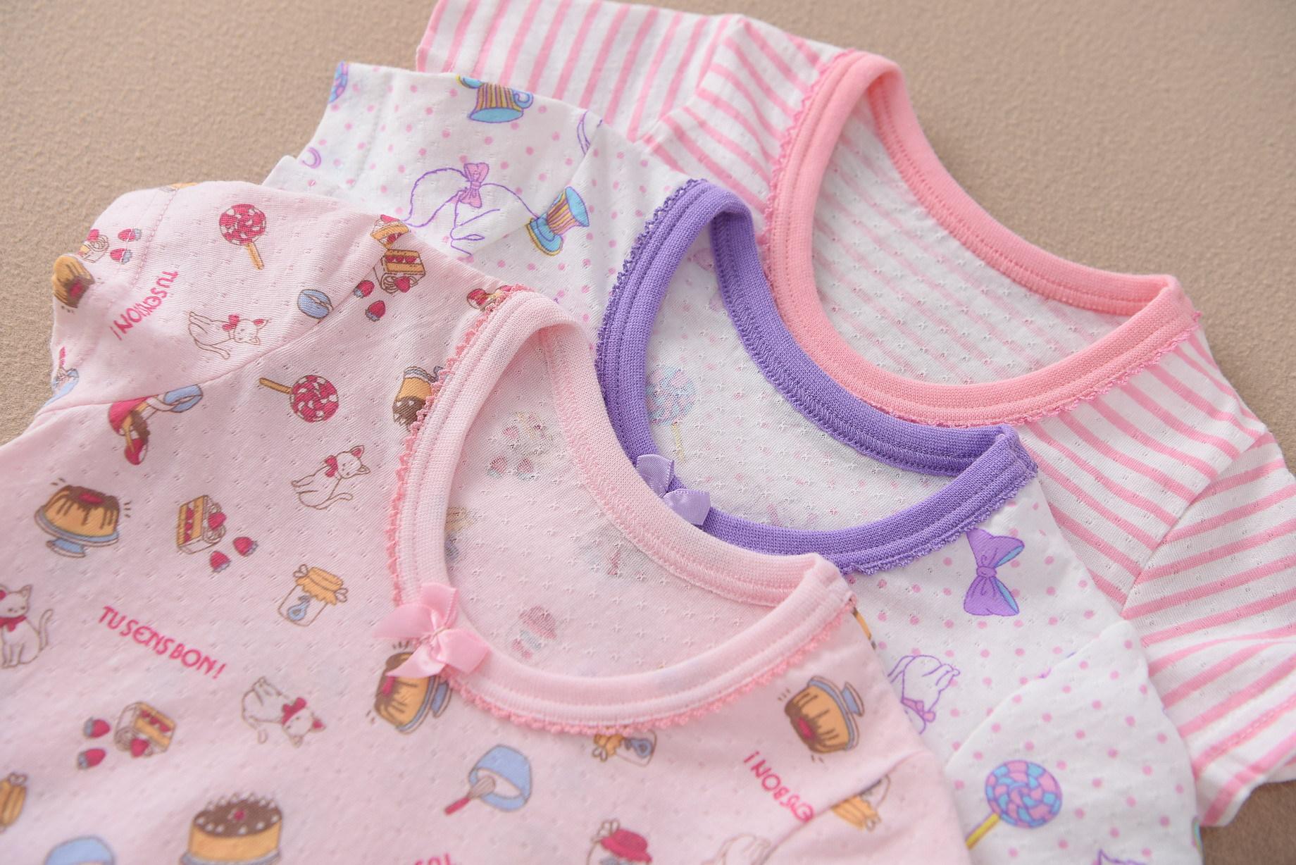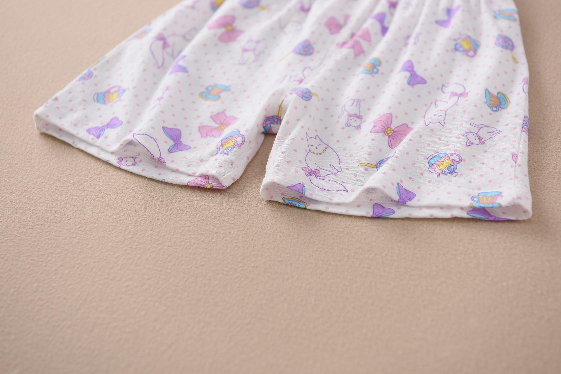 DX1003 mesh wheat purple bow white cat short sleeve (3 pieces)