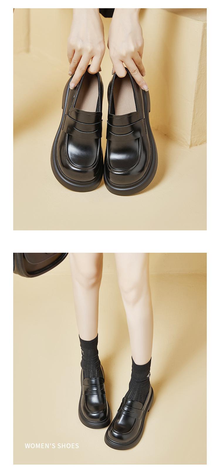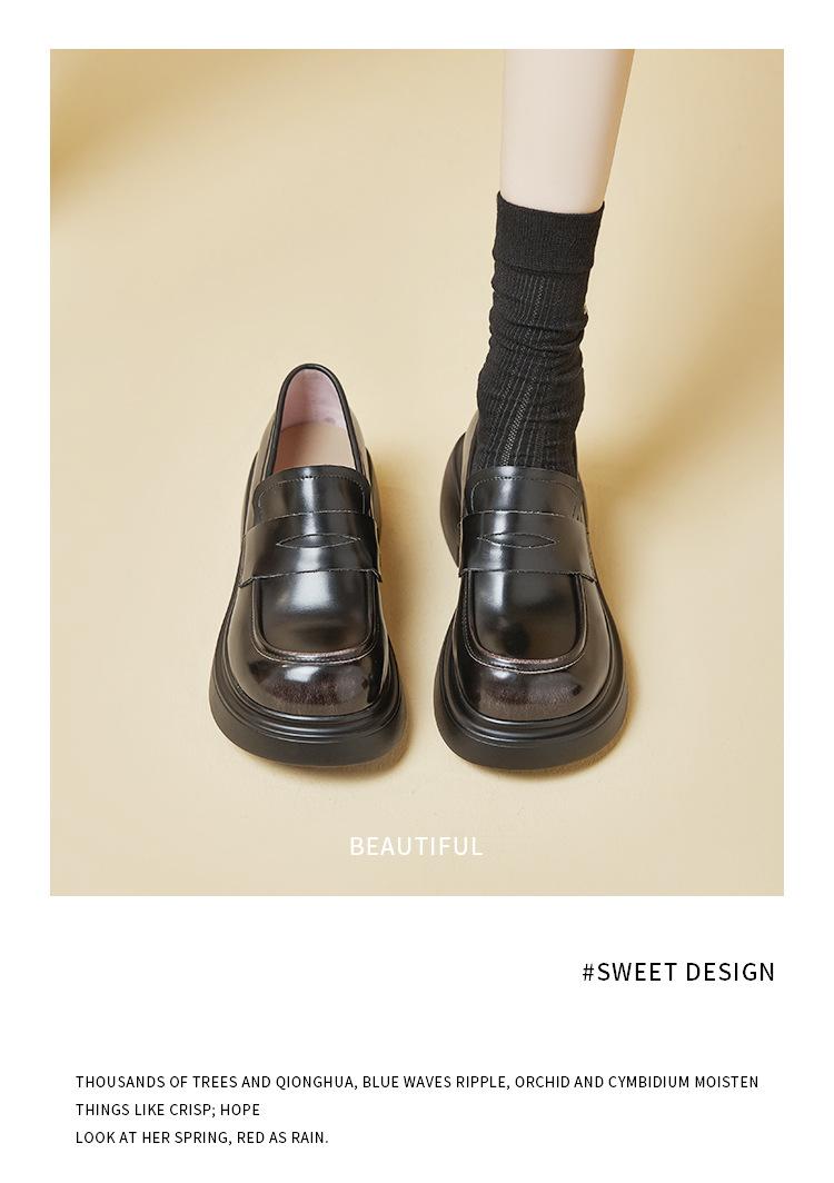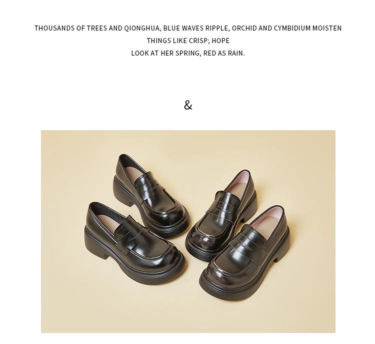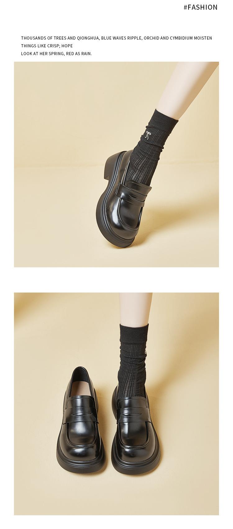 Mocasines de suela gruesa para mujer, de piel auténtica, primavera 2024, con plataforma, combinables, estilo británico, pequeños, sin cordones.