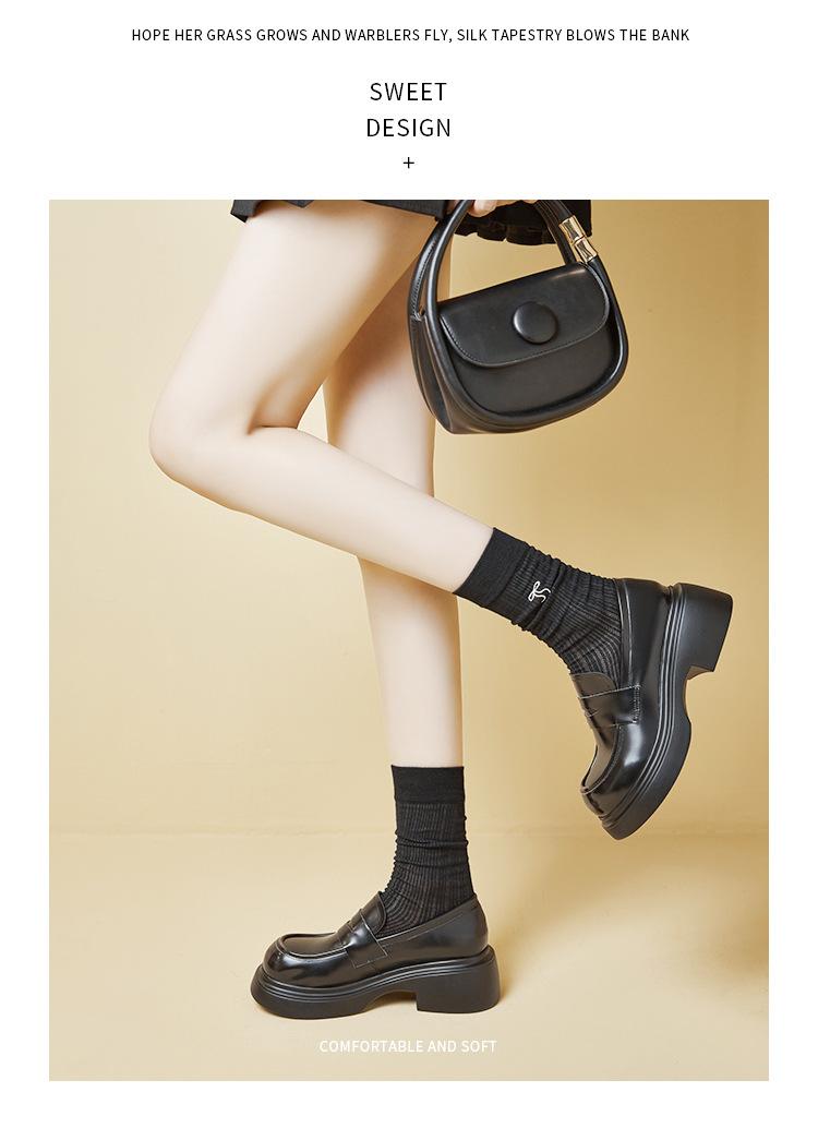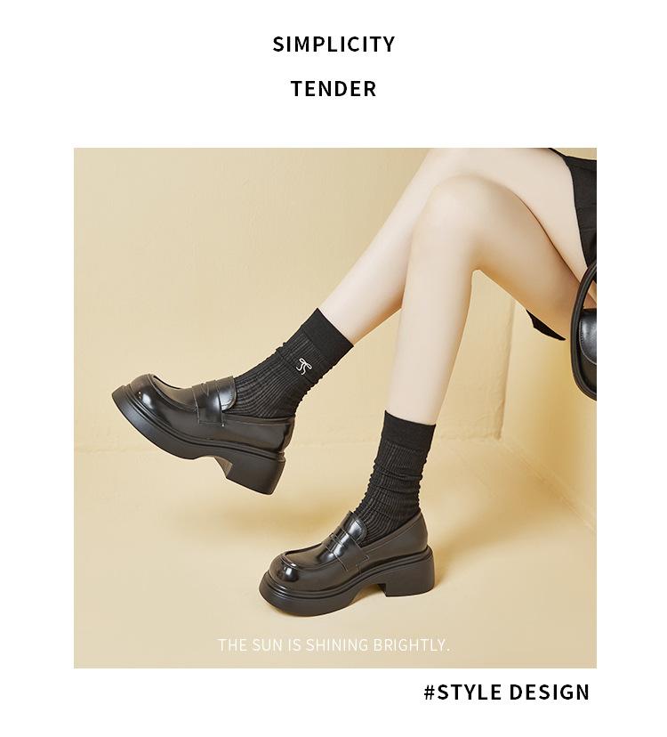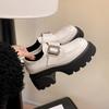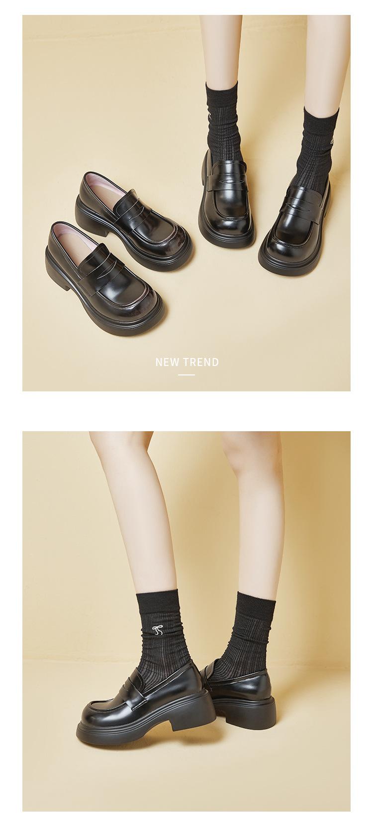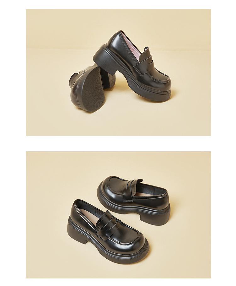 Mocasines de suela gruesa para mujer, de piel auténtica, primavera 2024, con plataforma, combinables, estilo británico, pequeños, sin cordones.