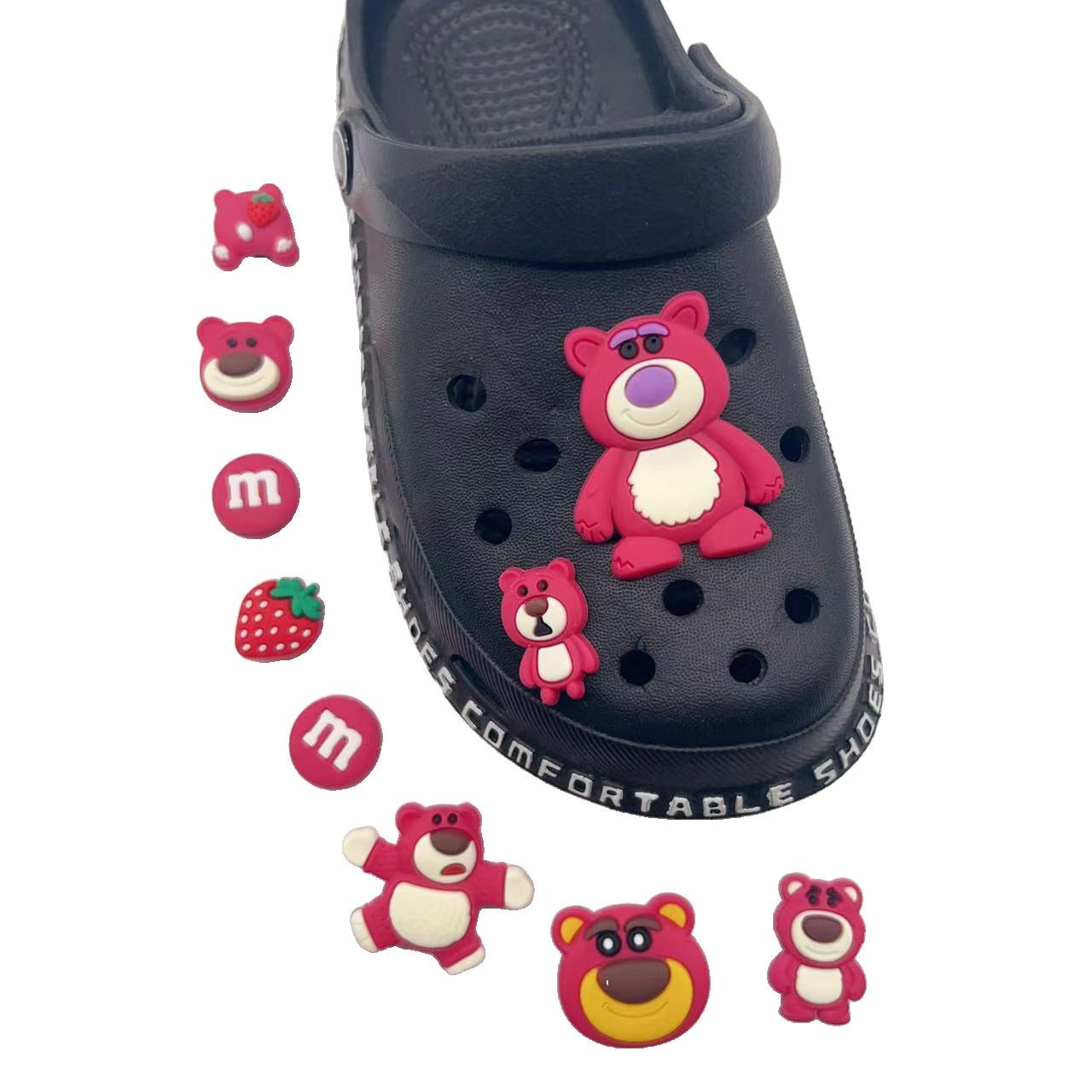 Accesorios para zapatos de cueva, zapatos de dibujos animados, lindo oso de fresa, hebilla decorativa para bricolaje, zapatos cruzados, accesorios de flores, hebilla de zapato extraíble