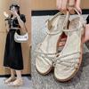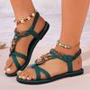 Sandalias de tanga para comercio transfronterizo 2025 Verano Nuevo estilo planas florales planas playa talla grande punta abierta sandalias para mujer