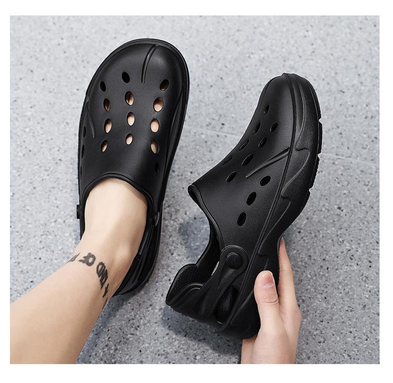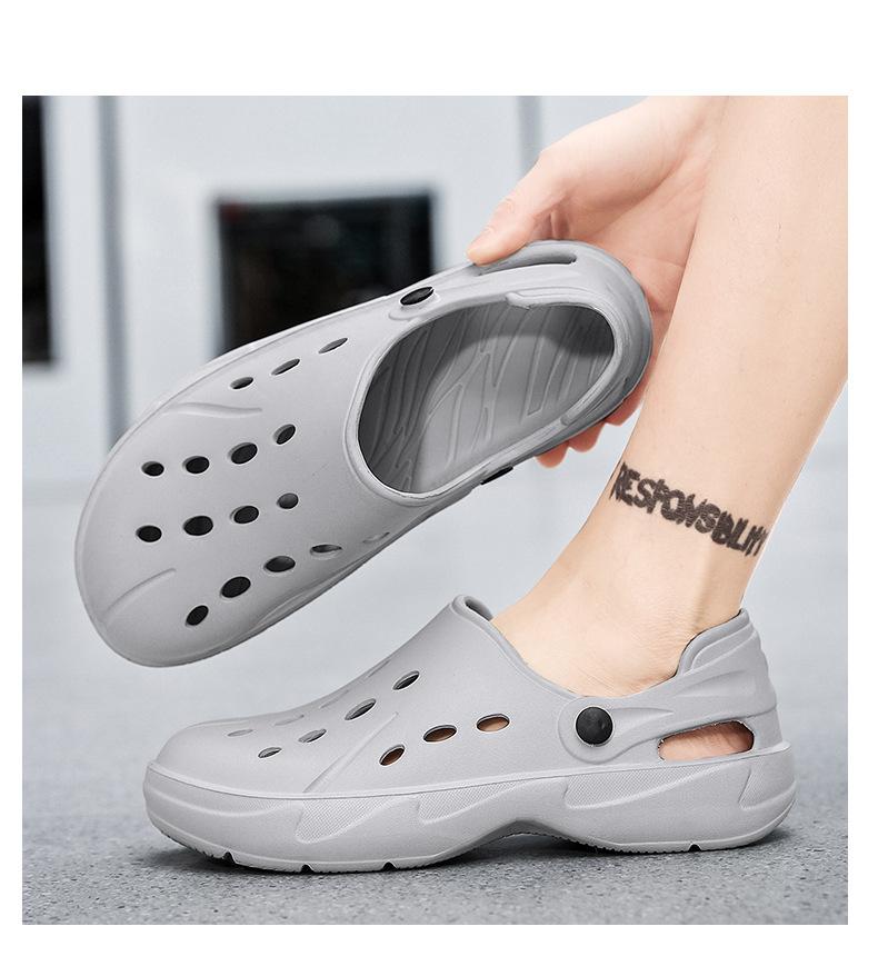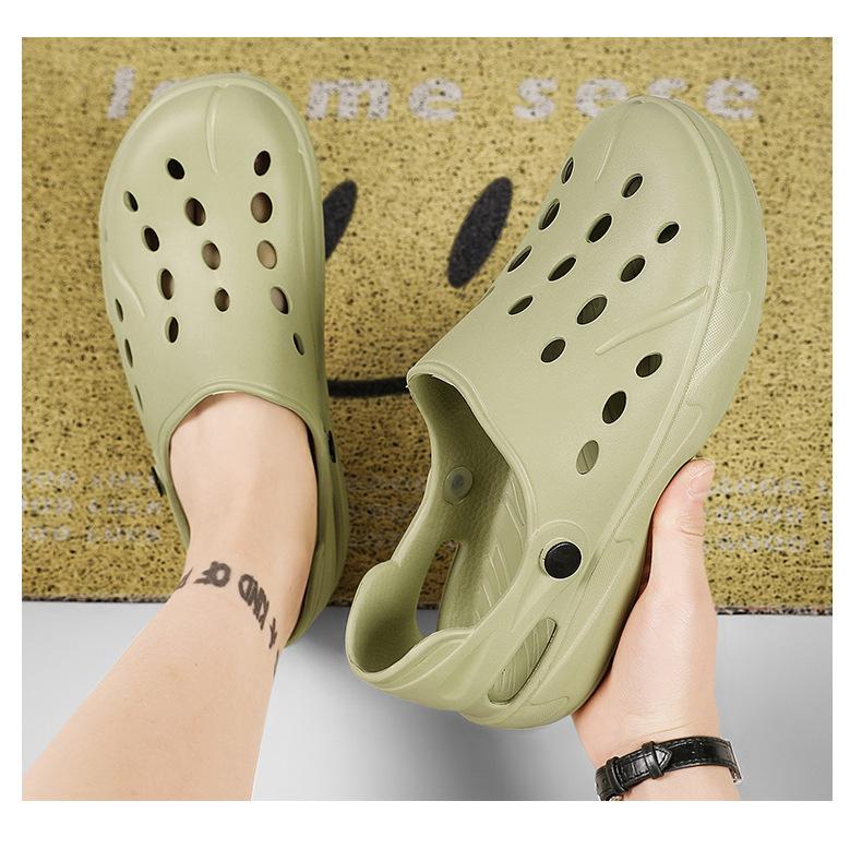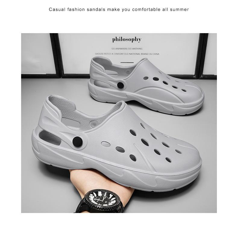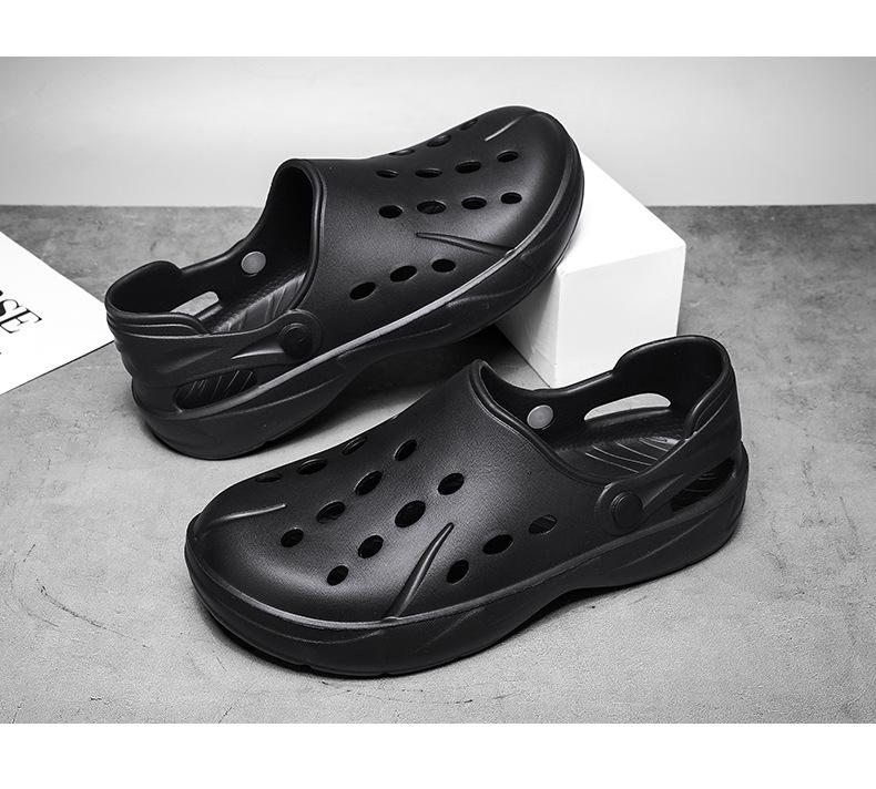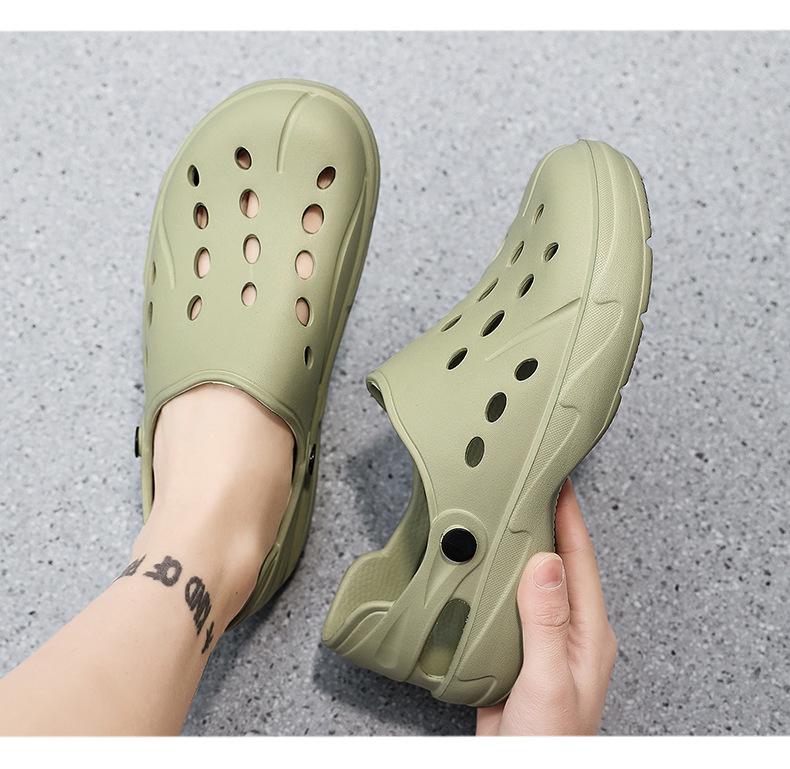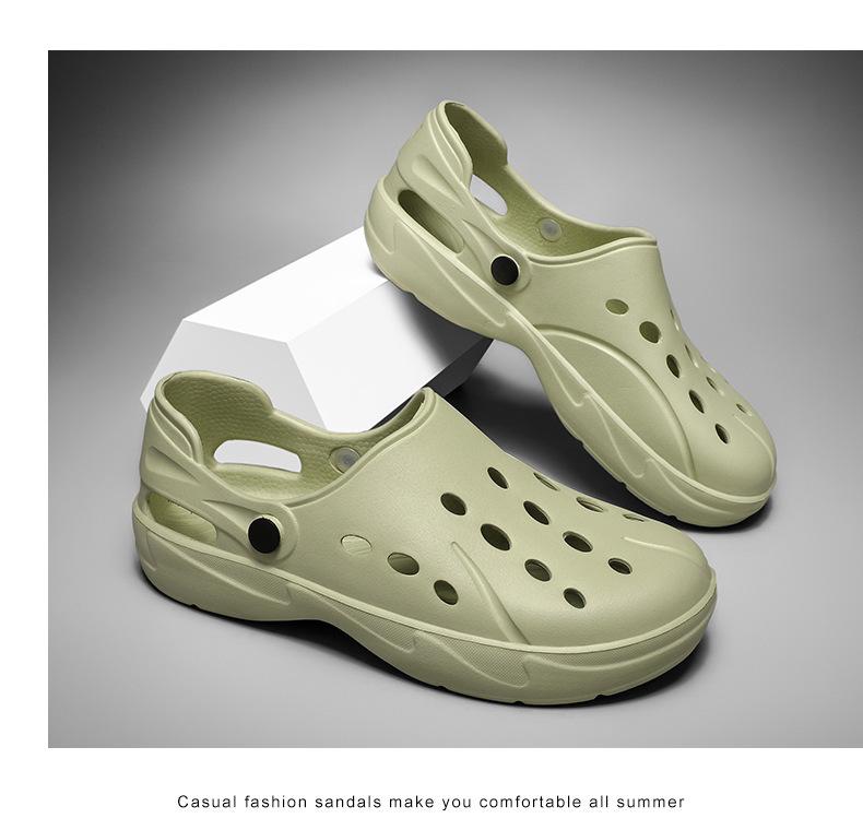 Sandalias de conducción transpirables y huecas para hombre, zapatos informales de gran tamaño con agujeros de color sólido, para verano, para exteriores, antideslizantes, para playa