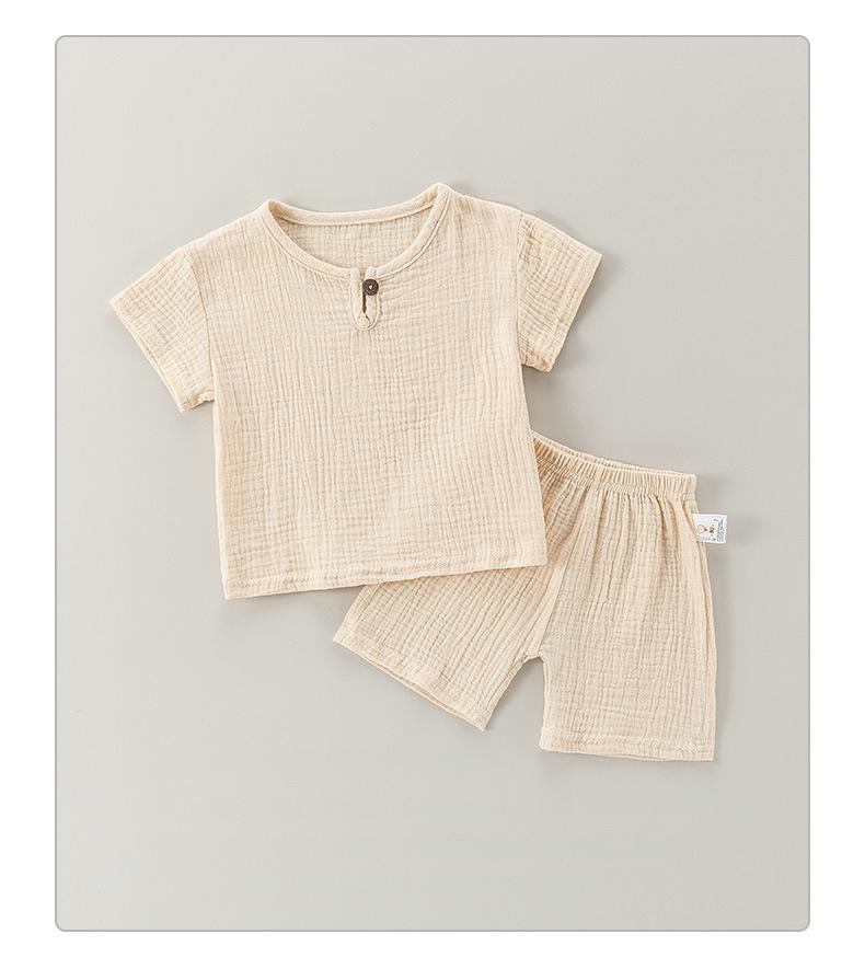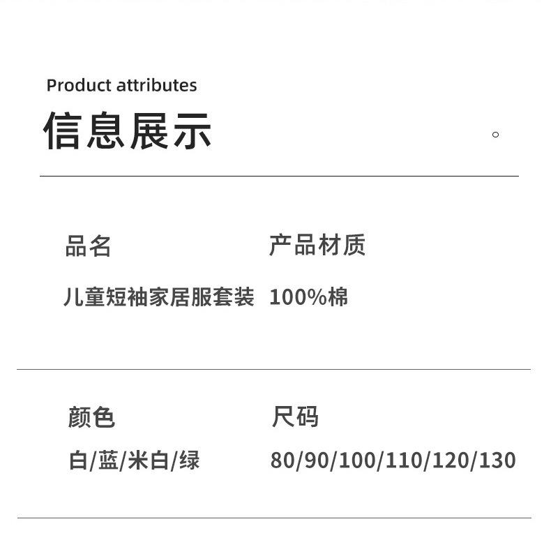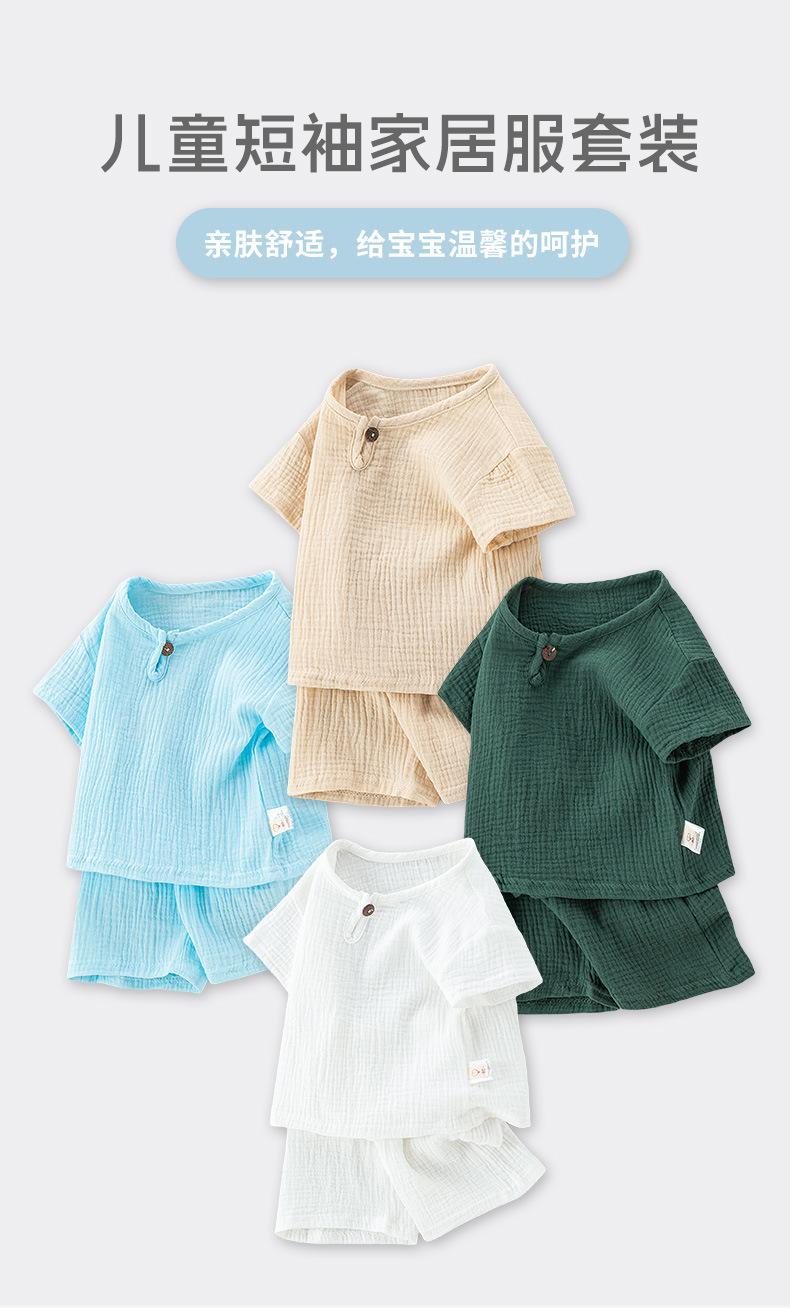 Pijama de Algodón Puro Fino de Verano para Niños Ropa para Aire Acondicionado Bebé Primavera y Otoño Manga Corta Traje de Ropa para el Hogar Algodón Casual para Niños y Niñas