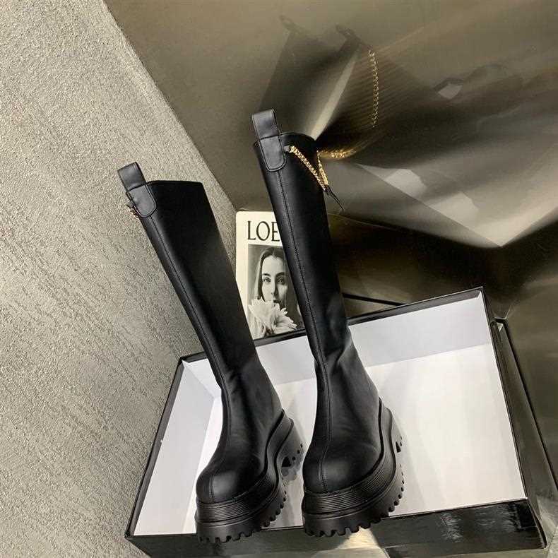 Botas hasta la rodilla de celebridad de Internet para mujer 2023 Otoño Nuevo fondo grueso adelgazante plano moda botas altas de Caballero moda