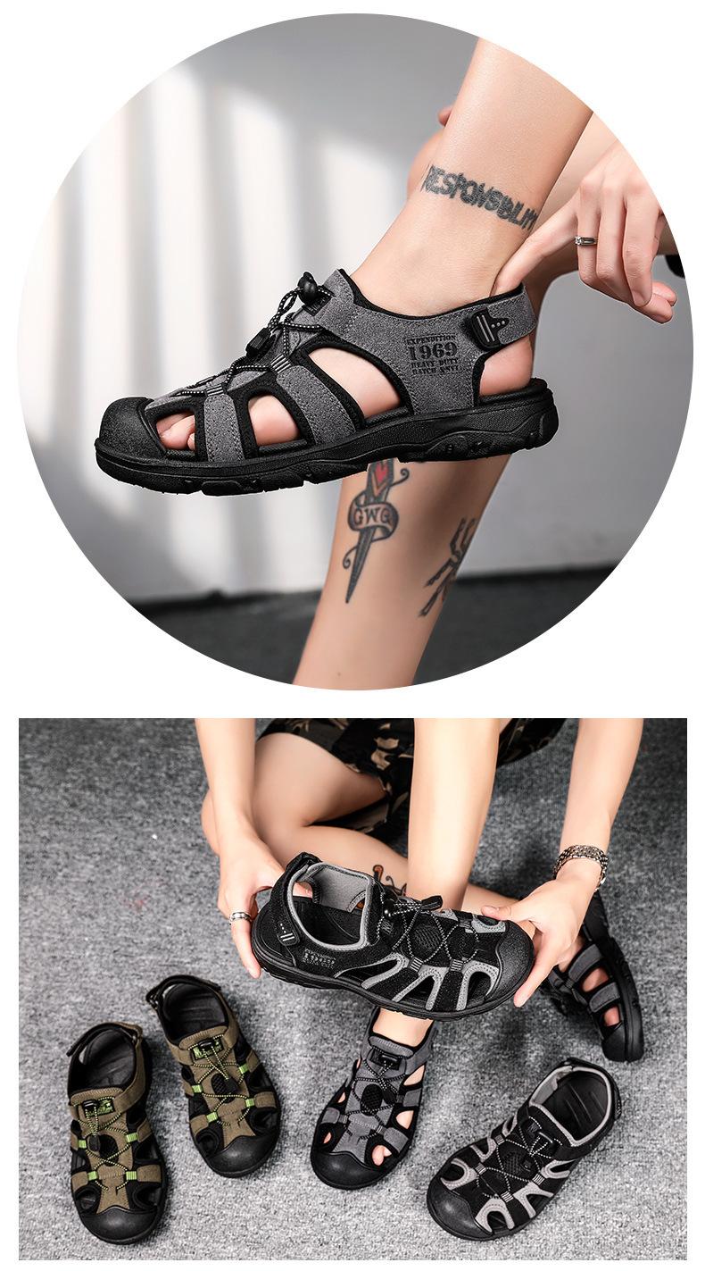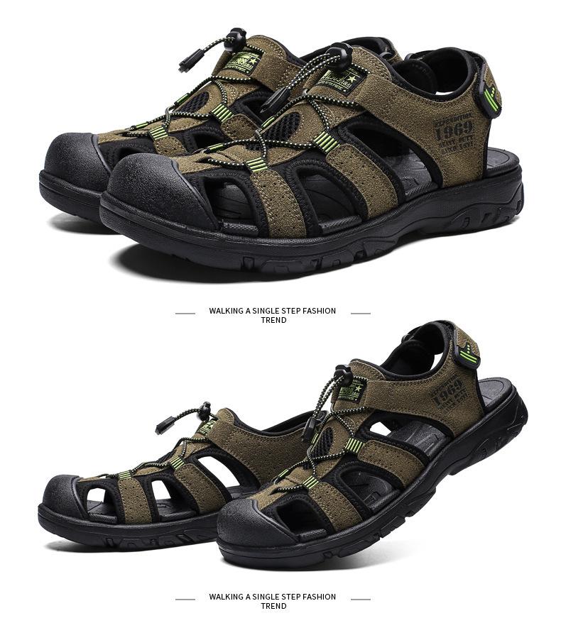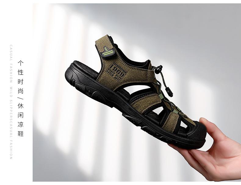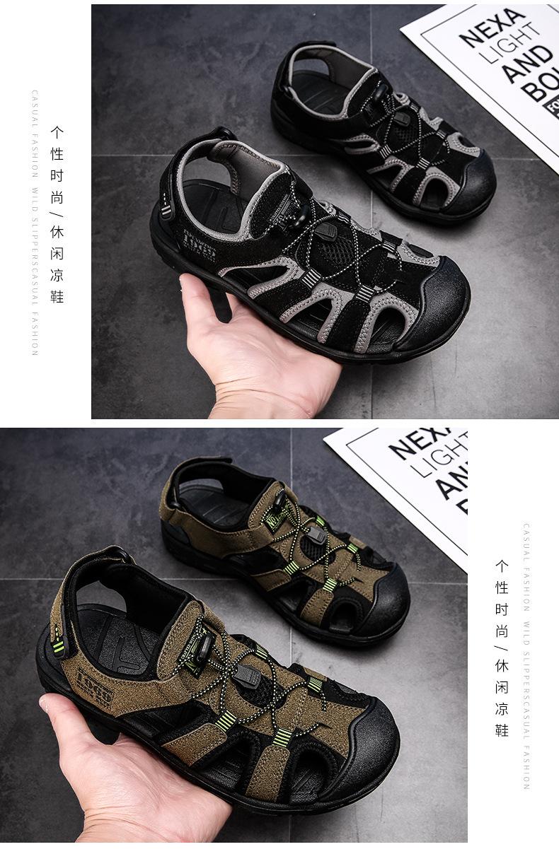 2024 Nuevos Zapatos de Playa para Montañismo al Aire Libre para Hombre Sandalias Casuales Suaves de Suela Gruesa Antideslizantes Sandalias Baotou de Cuero Genuino para Cabello
