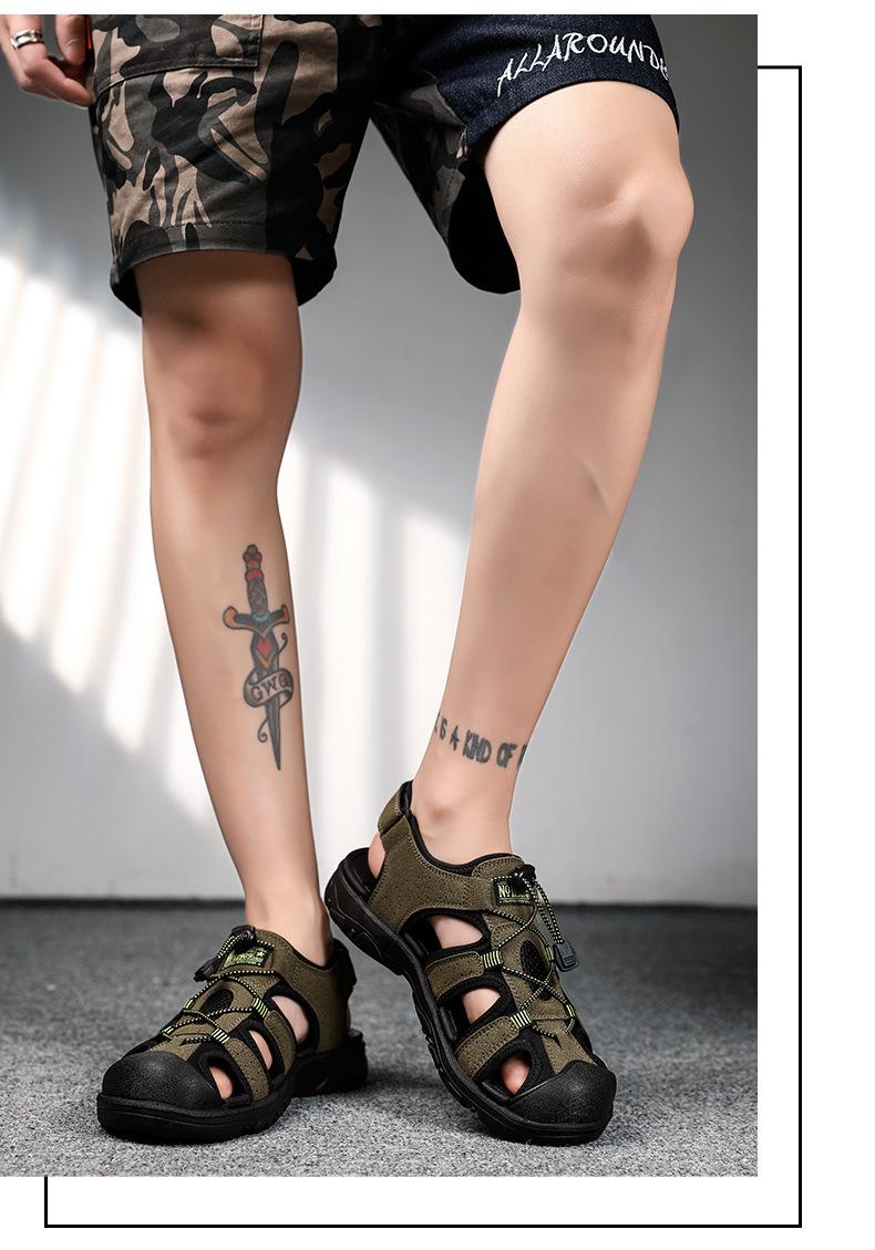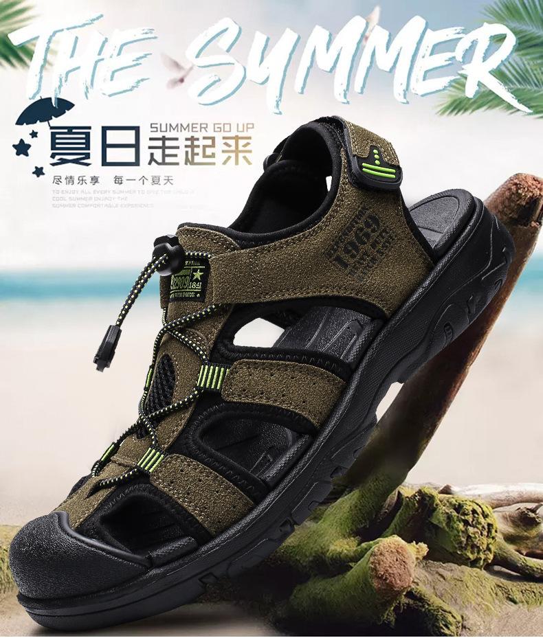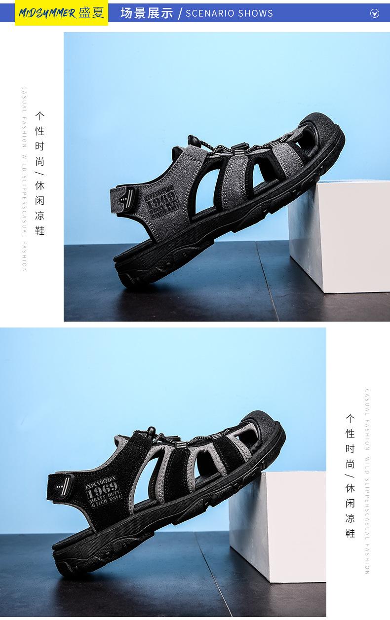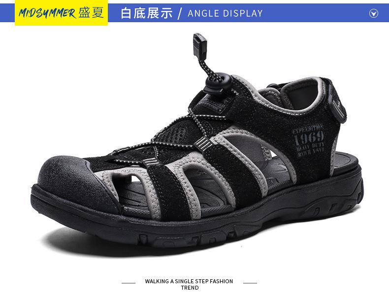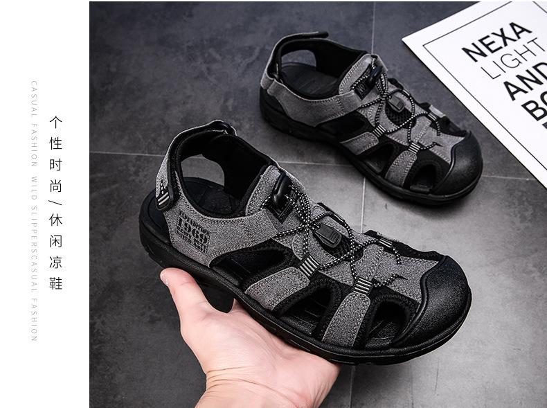 2024 Nuevos Zapatos de Playa para Montañismo al Aire Libre para Hombre Sandalias Casuales Suaves de Suela Gruesa Antideslizantes Sandalias Baotou de Cuero Genuino para Cabello