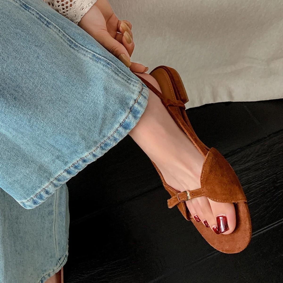 Sandalias Planas Vintage Diseño Nicho para Mujer Punta Abierta Vacaciones Casual Sandalias Romanas