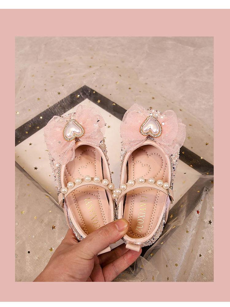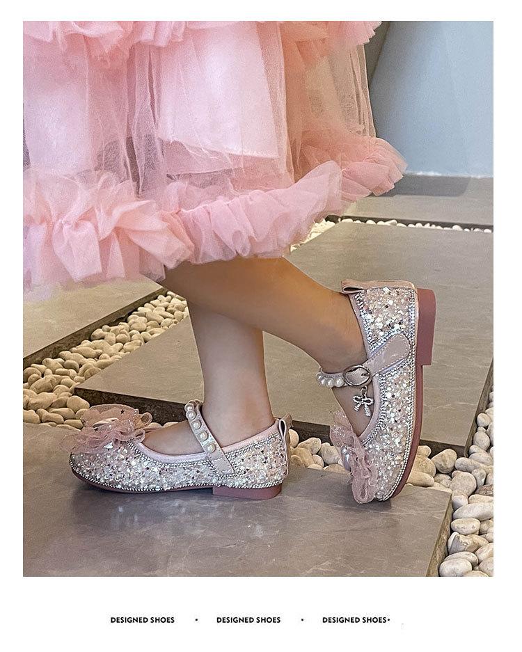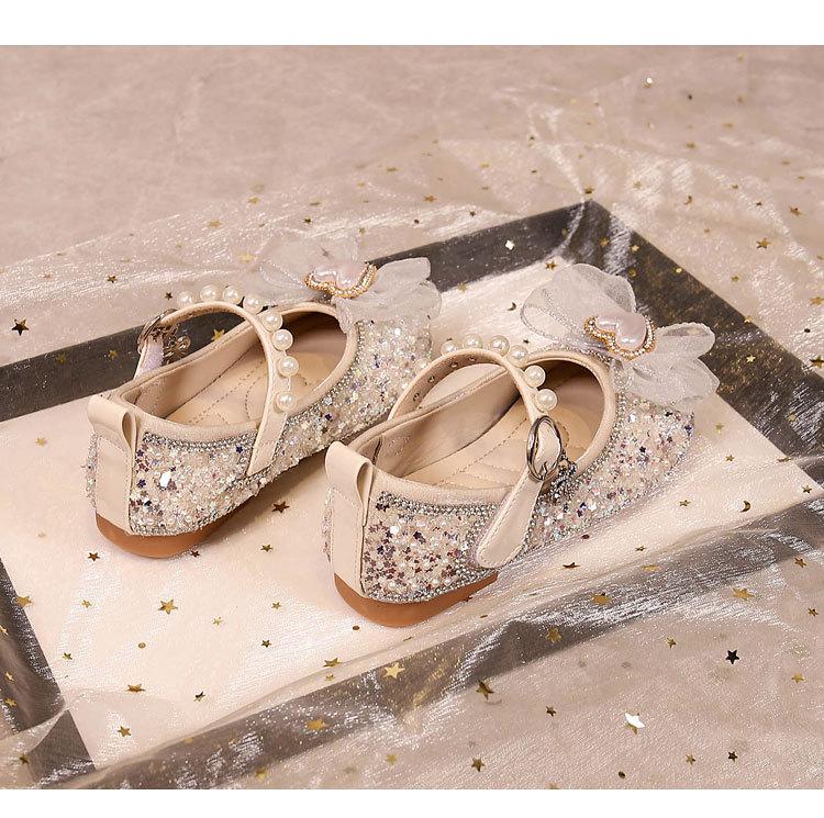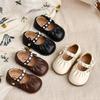 Zapatos de Cuero de Princesa para Niñas 2025 Otoño Nuevos Casual Niñitas Niños Flores Perla Bebé Zapatos de Suela Blanda