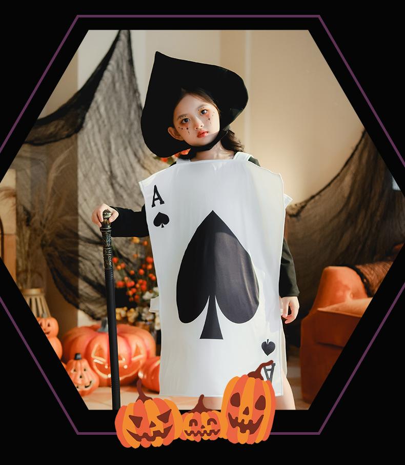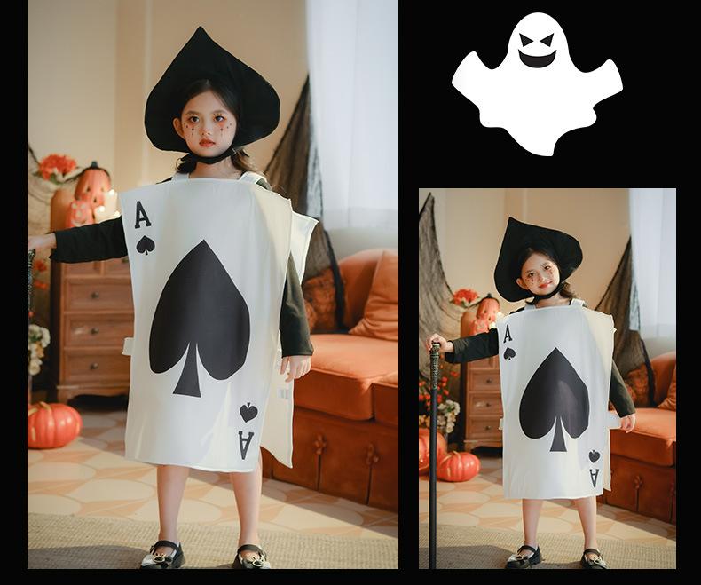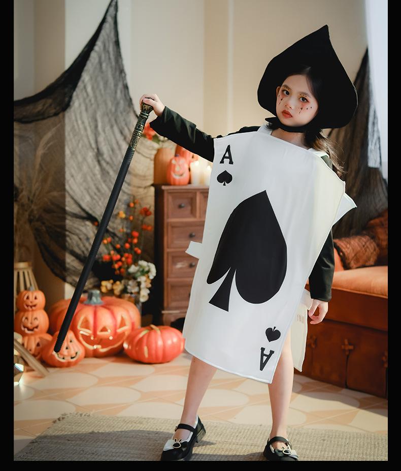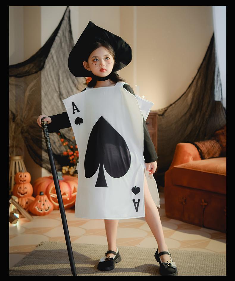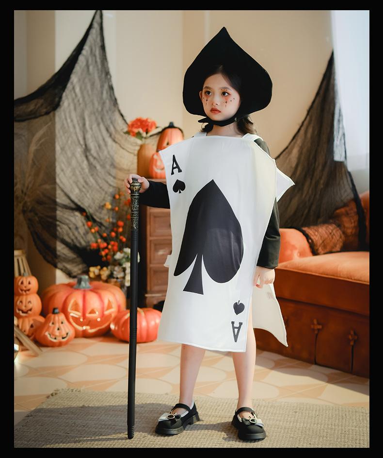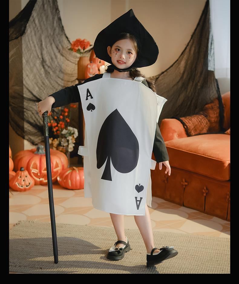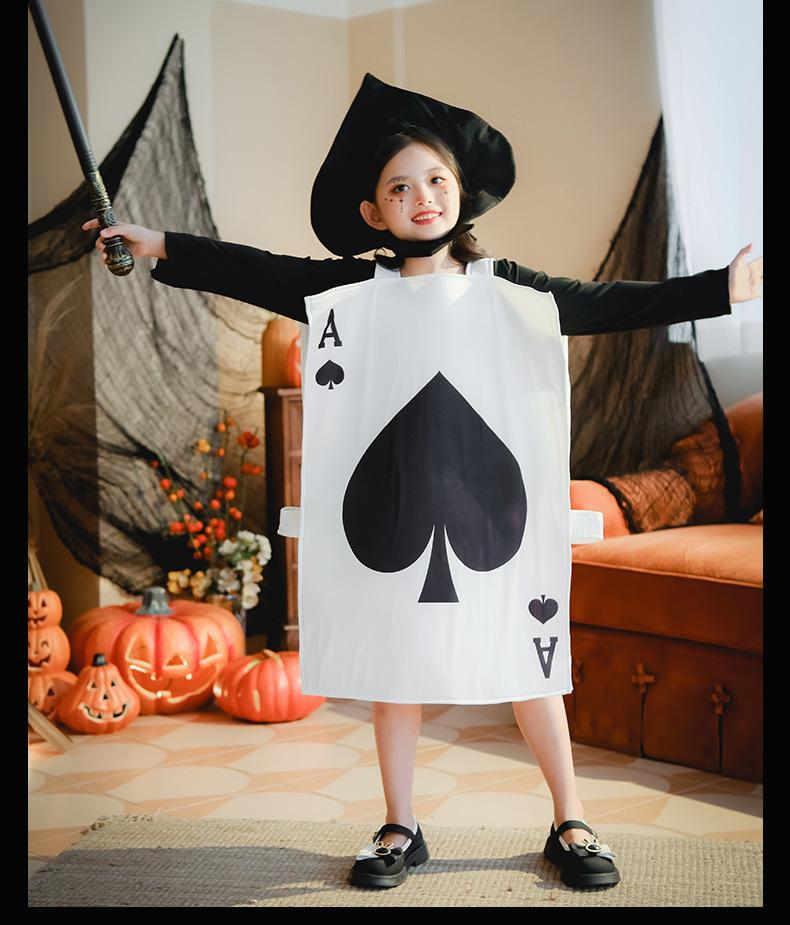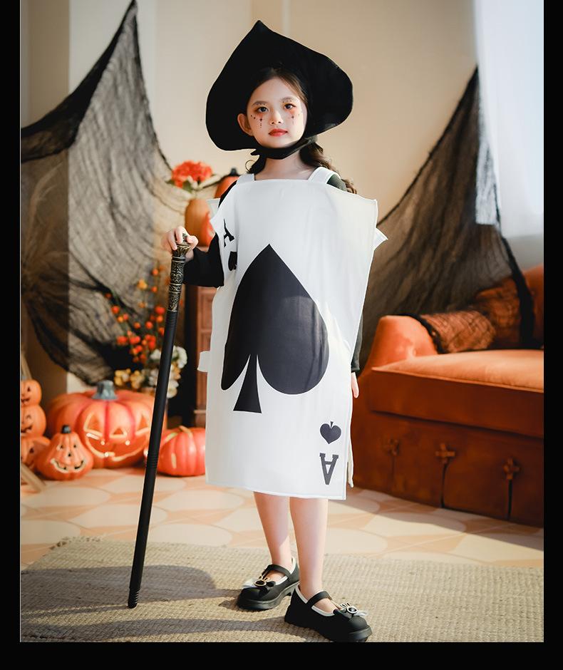 Disfraz de Halloween para niños Alicia en el País de las Maravillas Cuento de Hadas Póker Corazón Negro Melocotón A Disfraz para Niños Disfraz Divertido