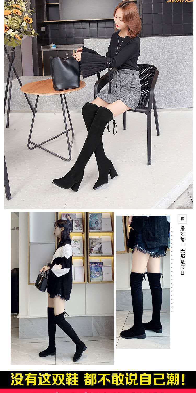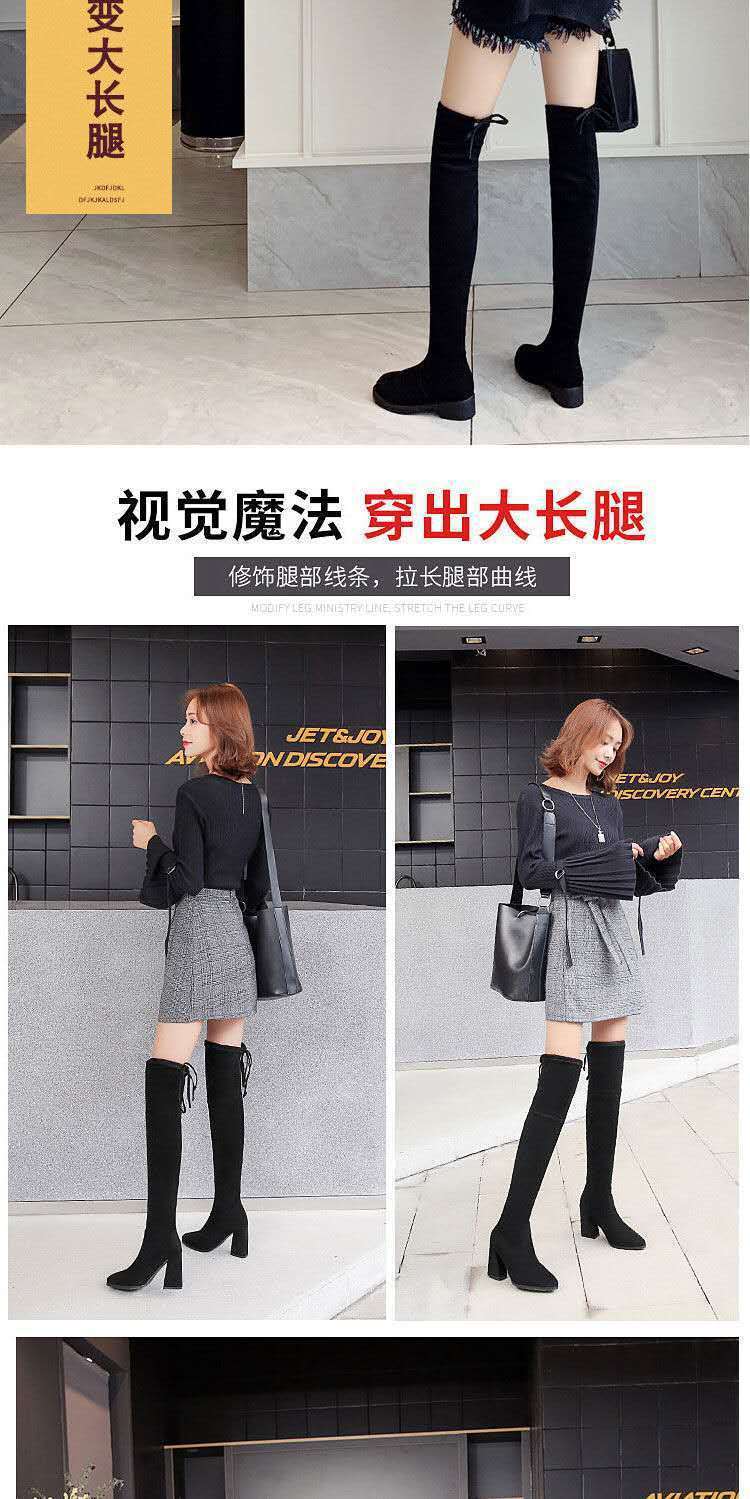 Botas altas por encima de la rodilla para mujer, botas altas ajustadas, botas elásticas de invierno con tacón grueso, botas largas de algodón, botas para mujer, 2022