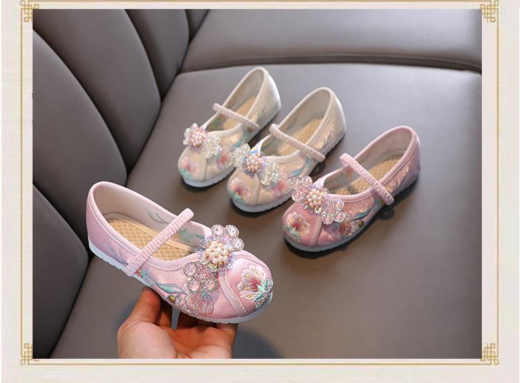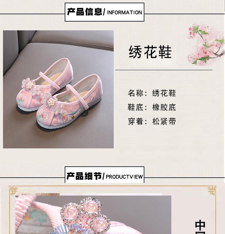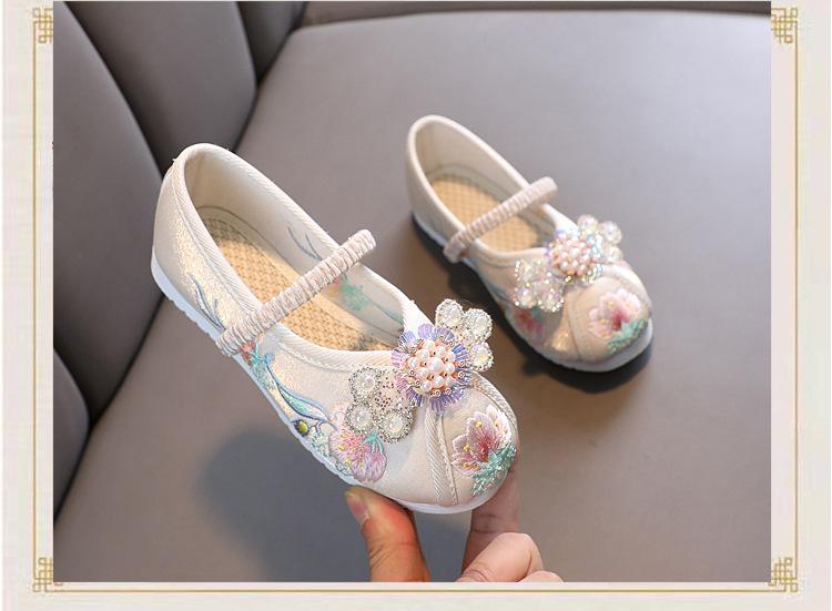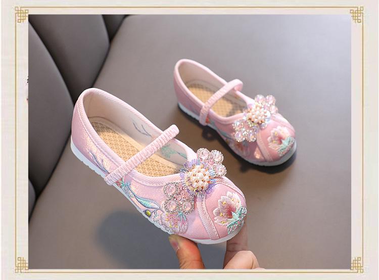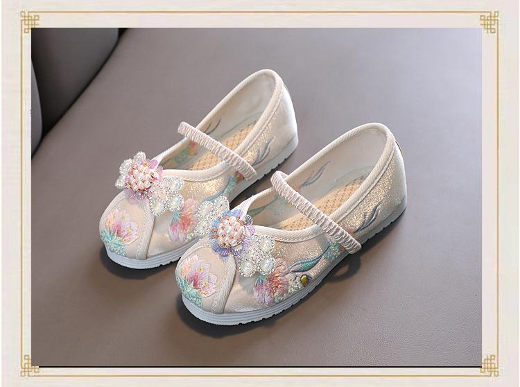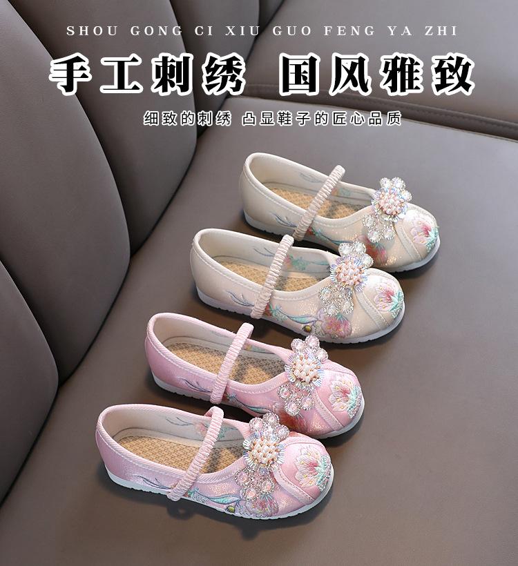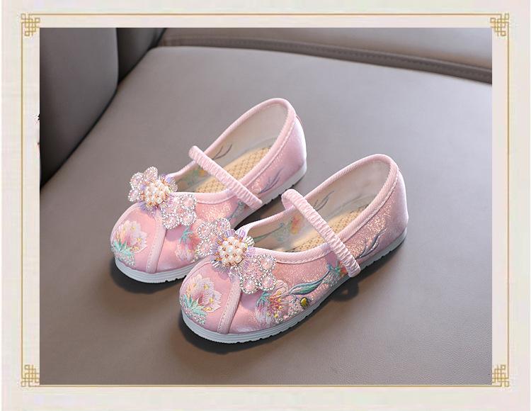 Zapatos Bordados Zapatos de Baile Estilo Chino Zapatos Hanfu para Niños Zapatos Étnicos Zapatos para Niños Zapatos de Vestimenta Antigua Zapatos de Tela Hechos a Mano