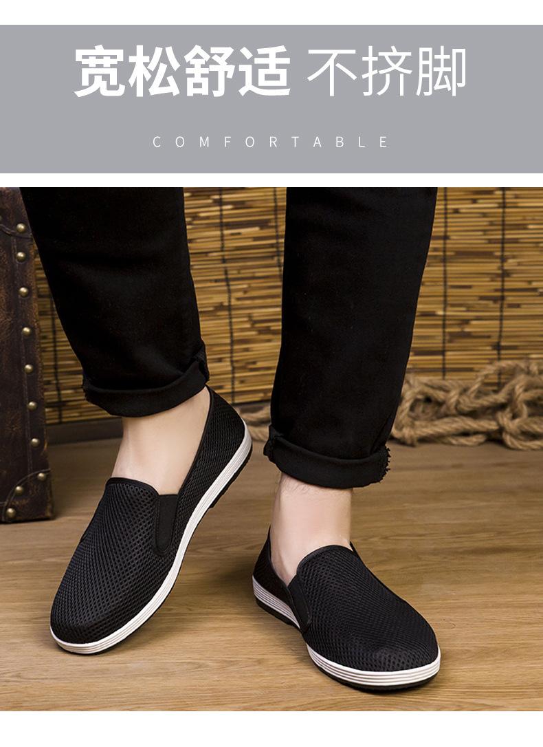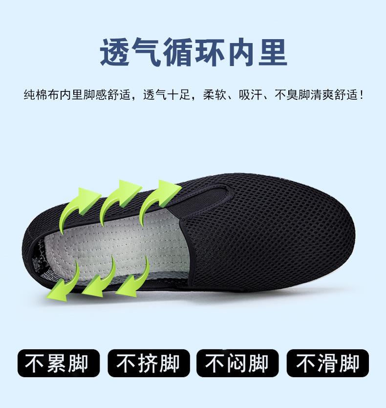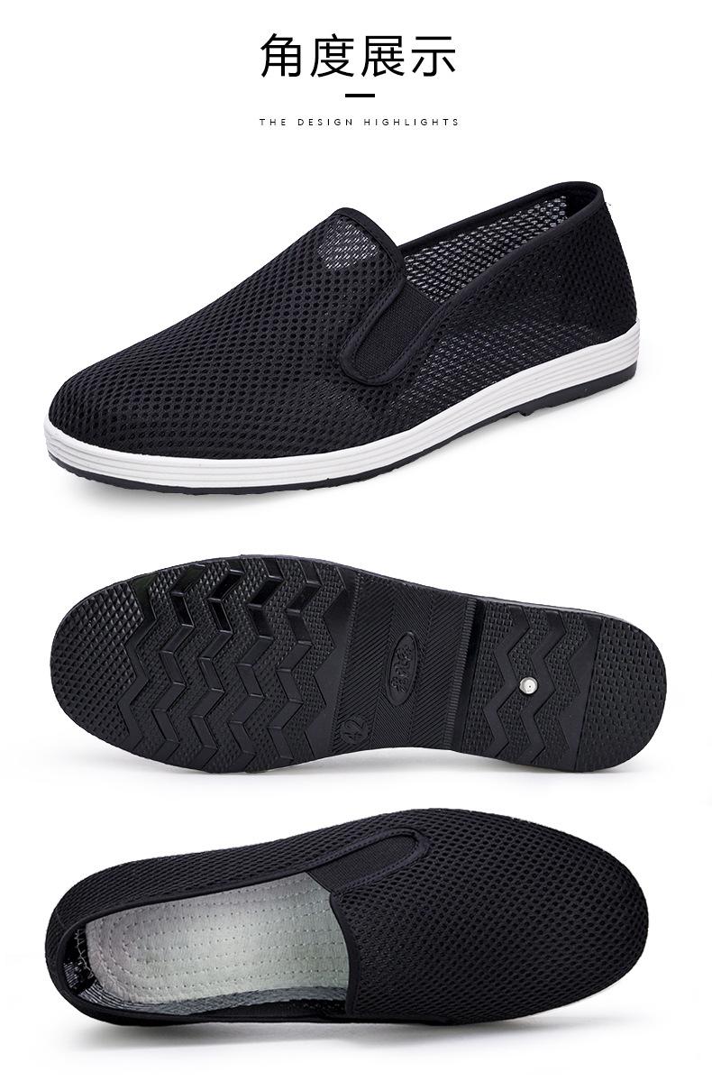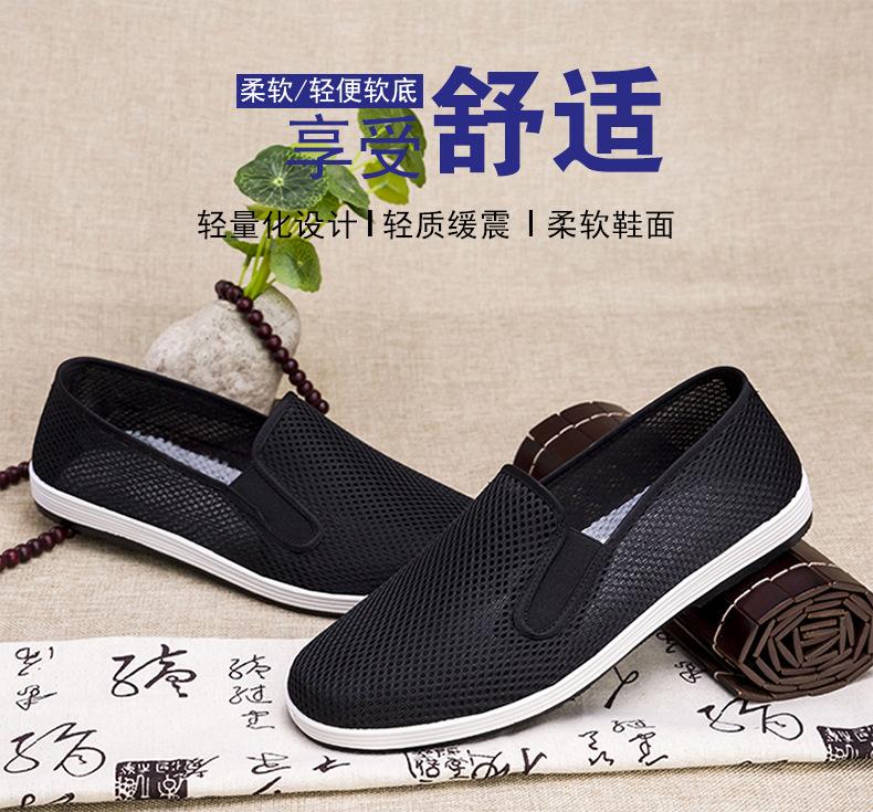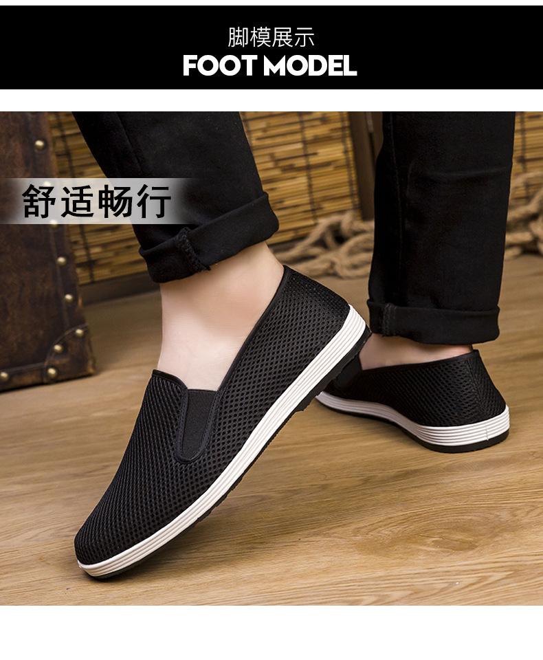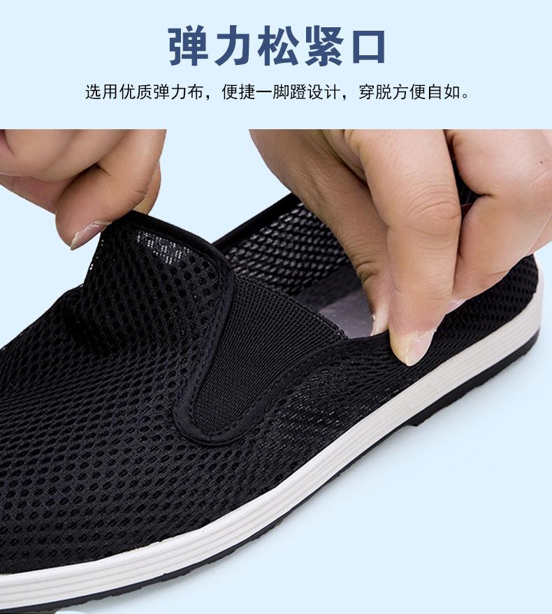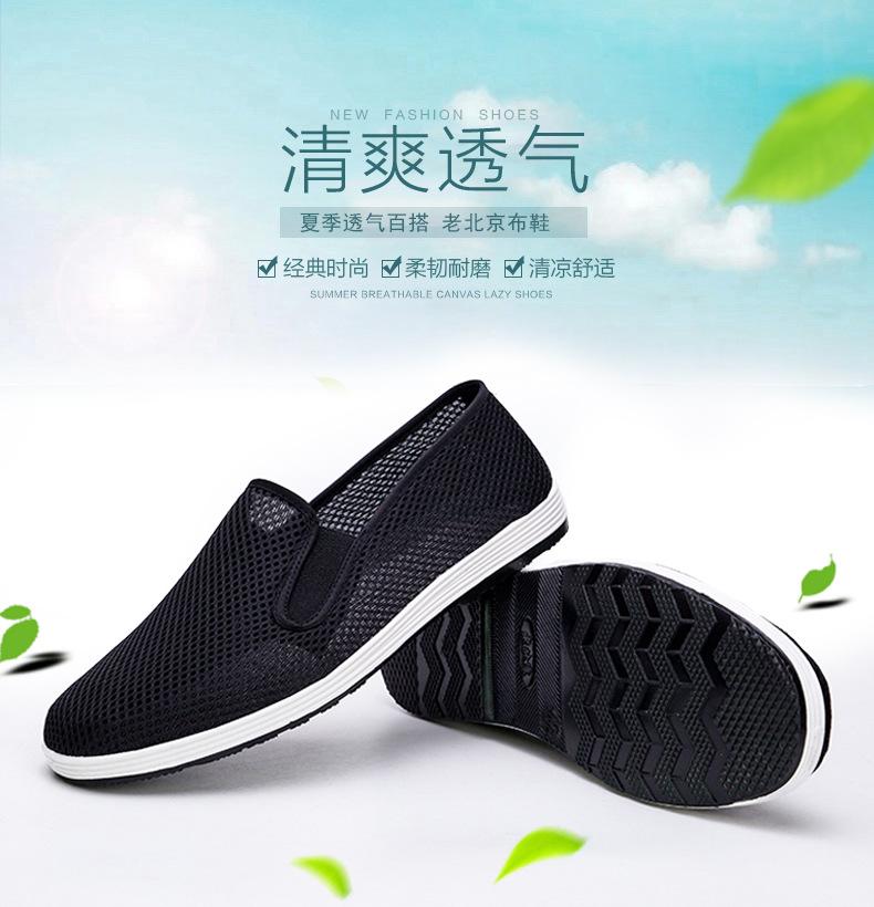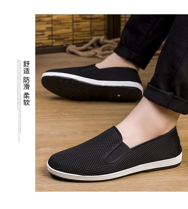 Venta al por mayor de zapatos de tela antiguos de Beijing para verano, zapatos de trabajo de lona para hombre, zapatos de conducción antideslizantes de un pedal transpirables de red negros para hombre