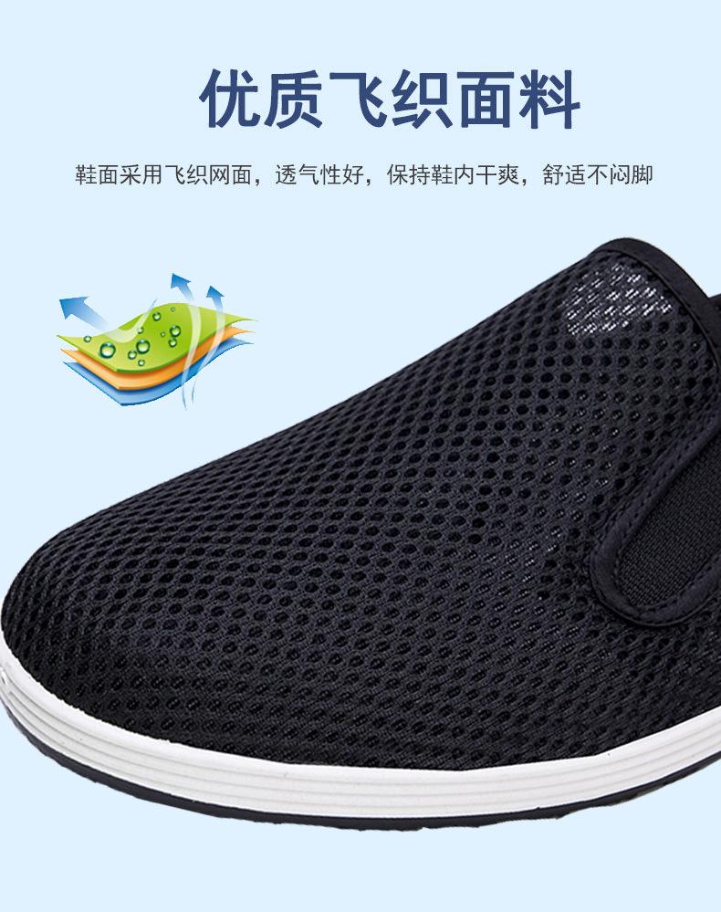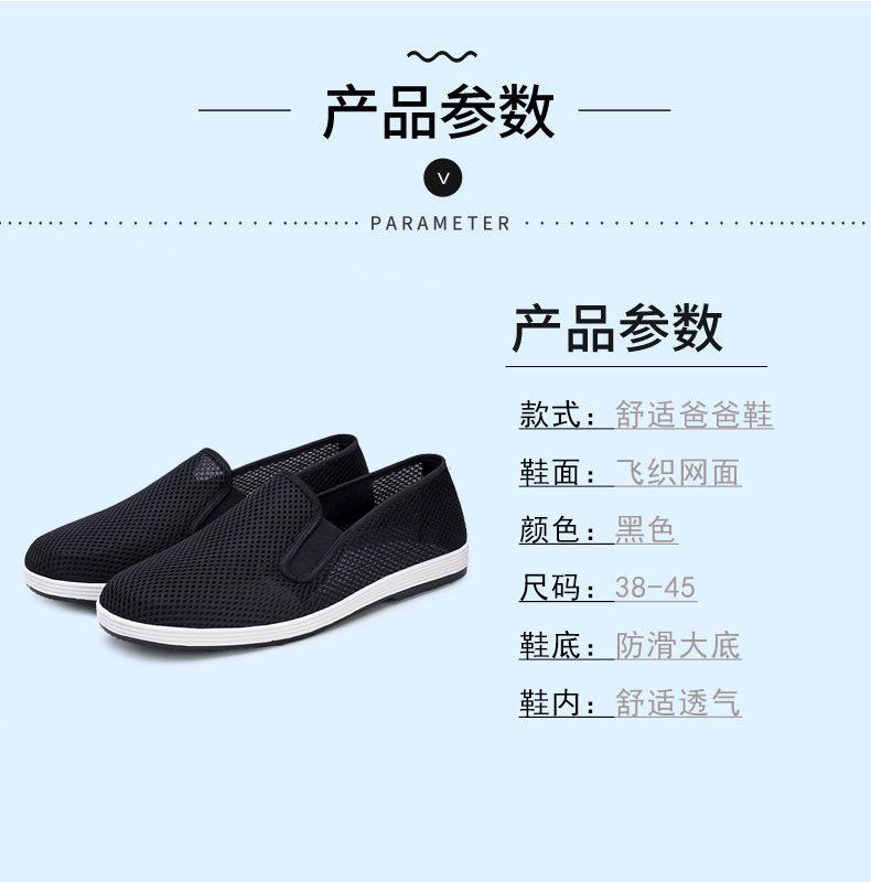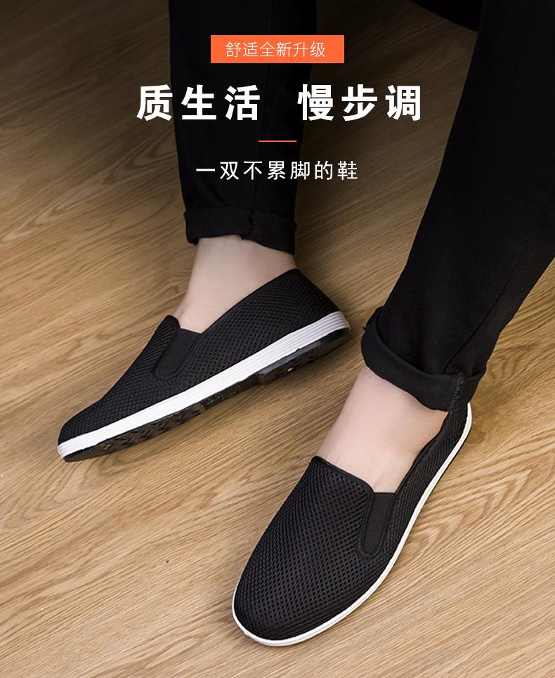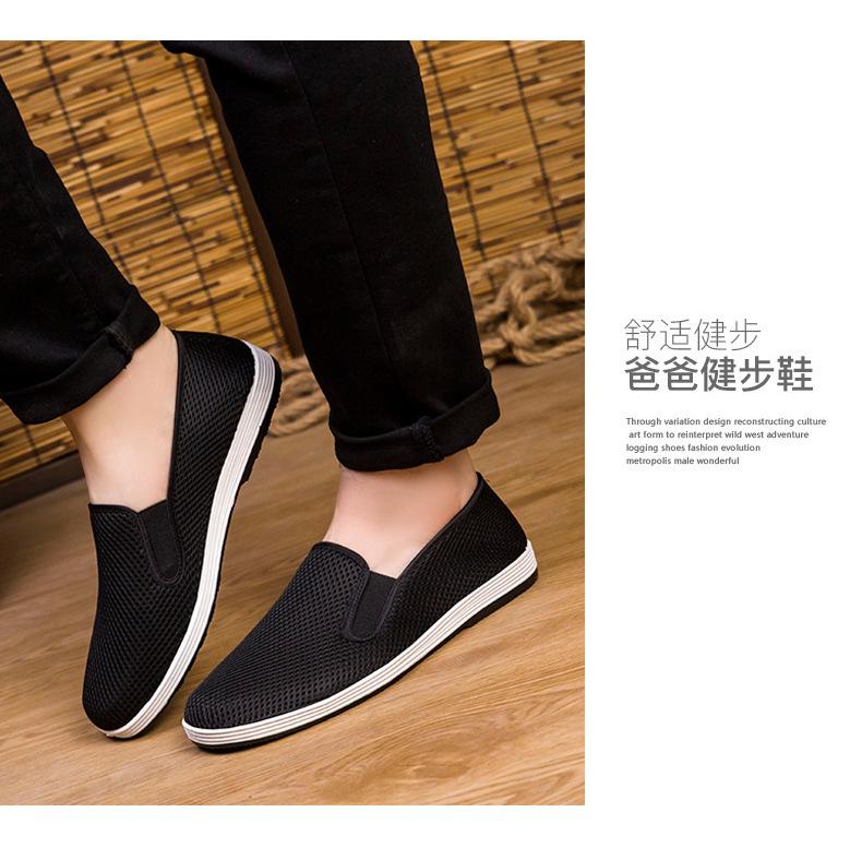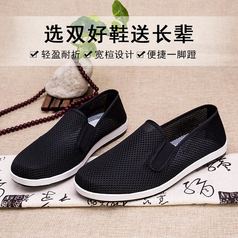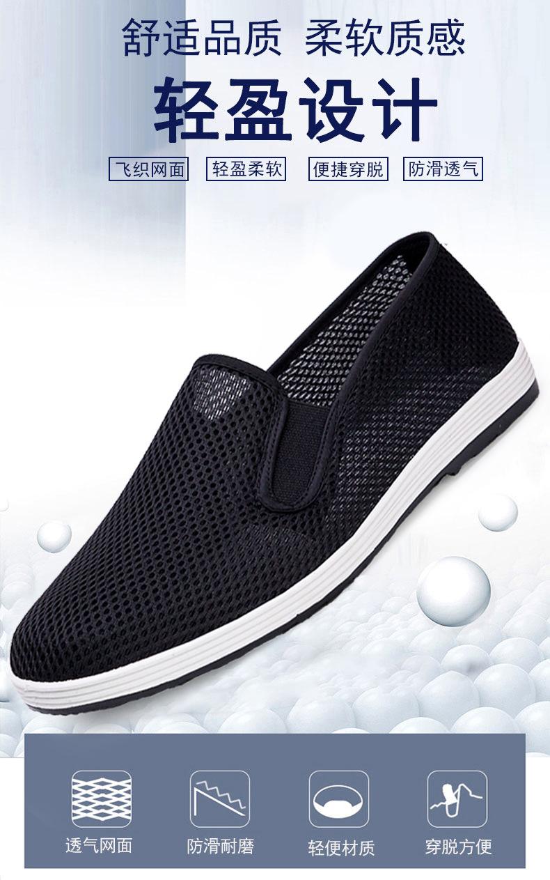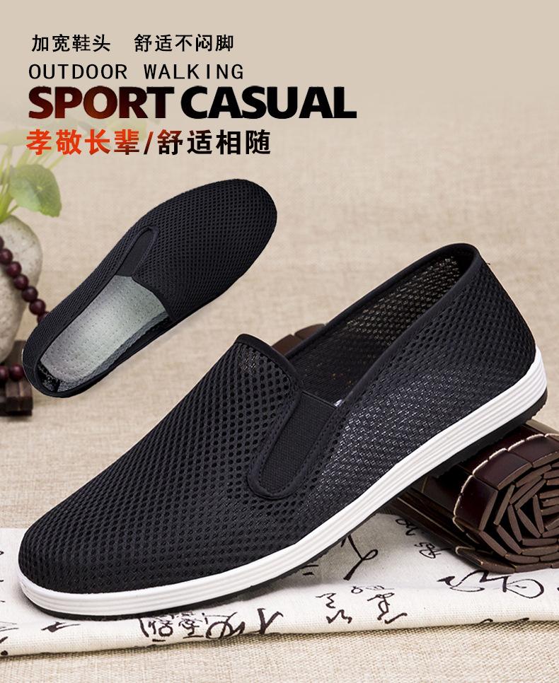 Venta al por mayor de zapatos de tela antiguos de Beijing para verano, zapatos de trabajo de lona para hombre, zapatos de conducción antideslizantes de un pedal transpirables de red negros para hombre