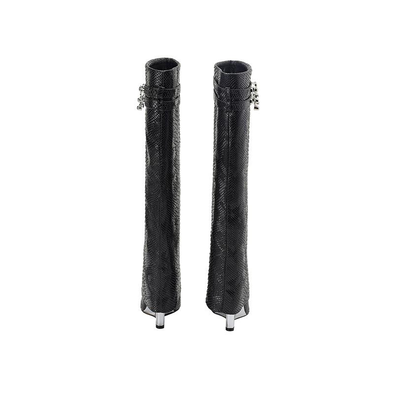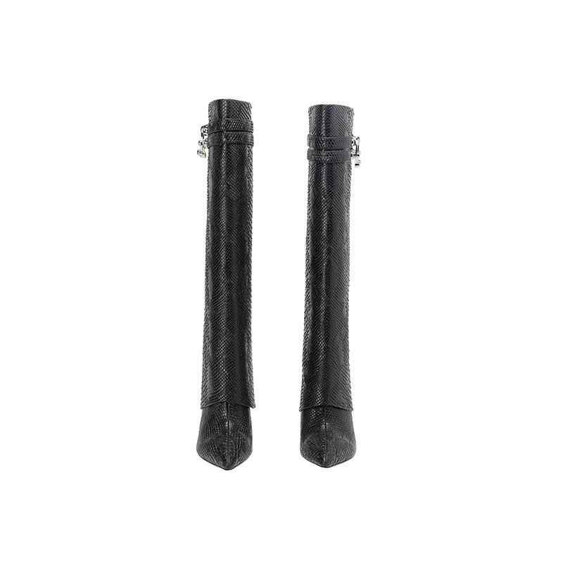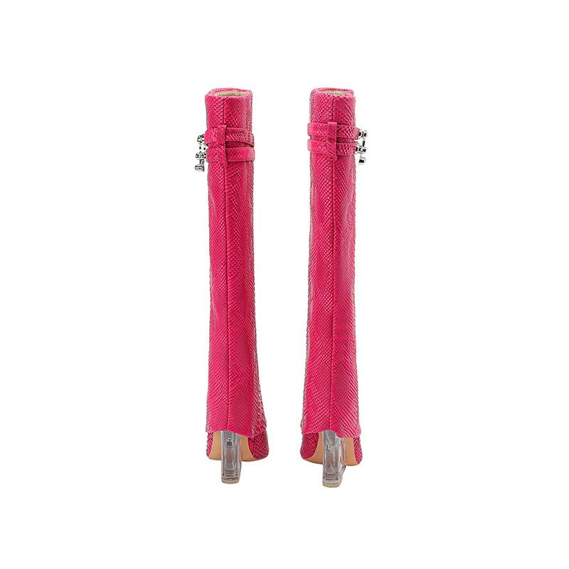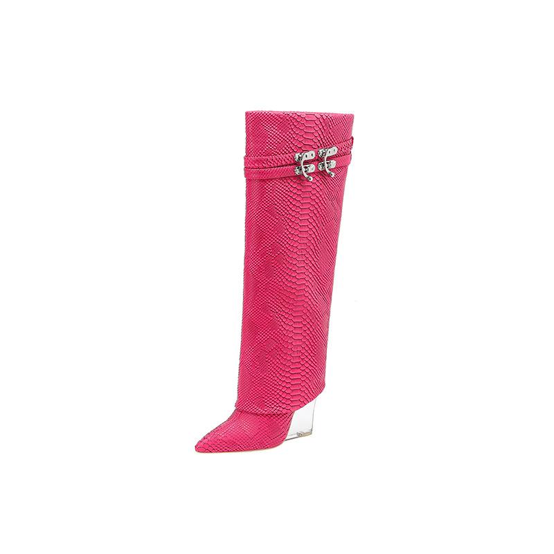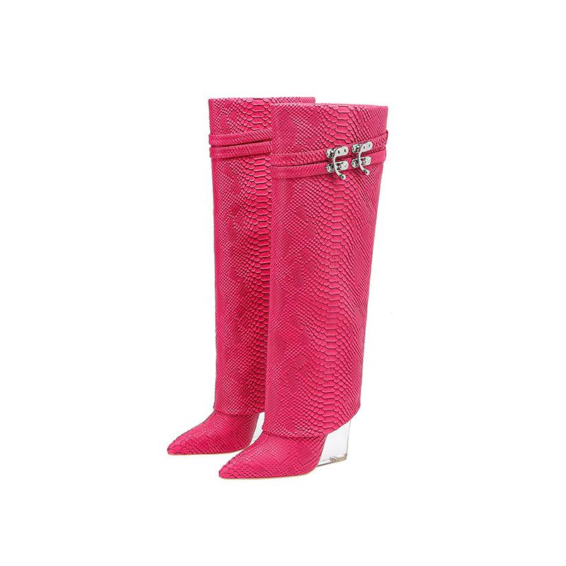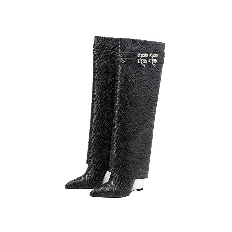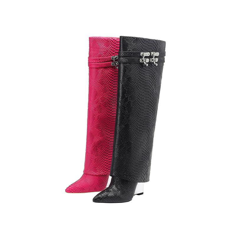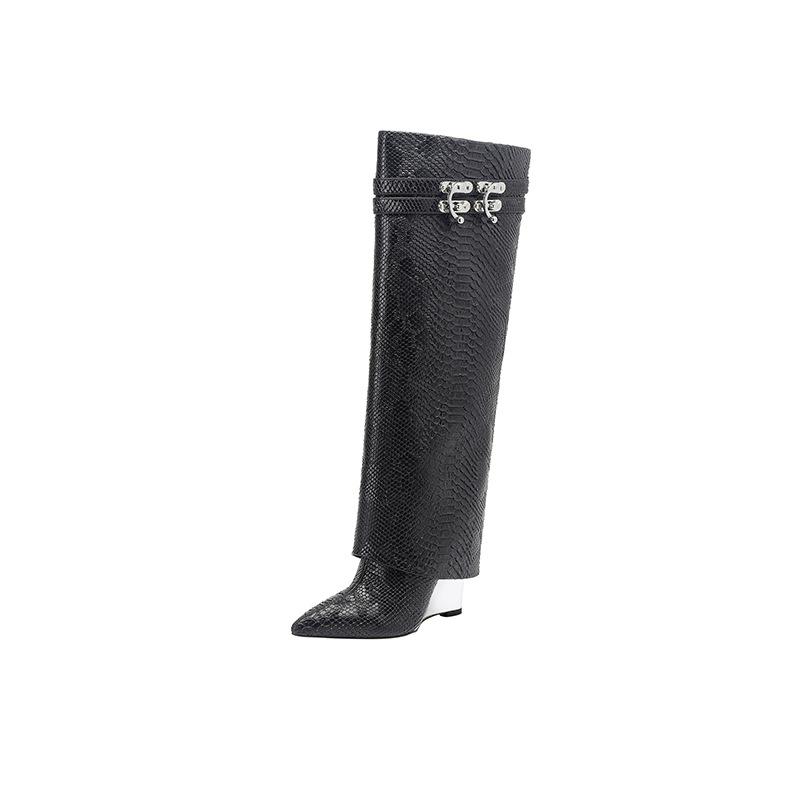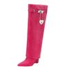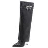Invierno 2024 Comercio Exterior Nuevo Tacón de Cristal de Aguja Puntiagudo Cuña Talla Grande Doble Botonadura Botas Hasta la Rodilla Botas Pantalón