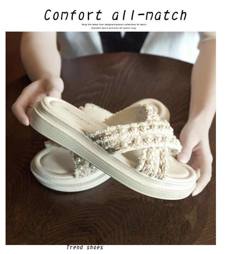 Sandalias de Verano para Mujer 2025 Nuevas Sandalias de Playa de Suela Gruesa Moda Cruz Casual Sandalias Slip-On
