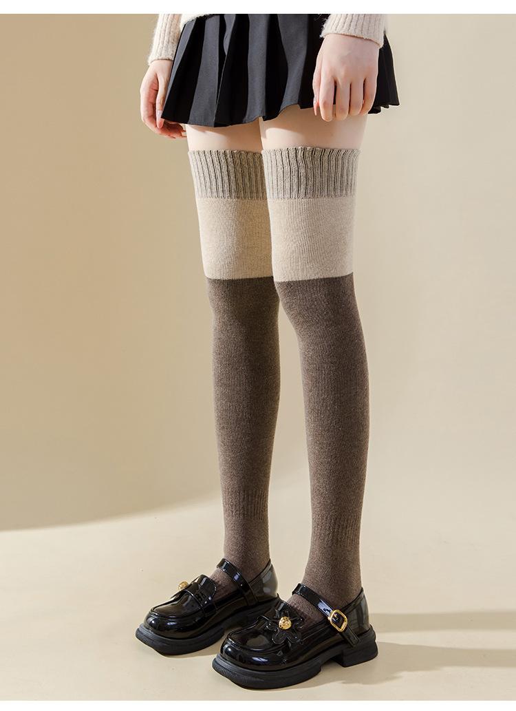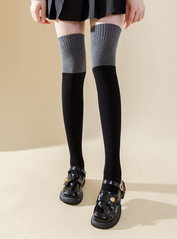 22gct060 contrasting color over-the-knee socks black, 22gct060 contrasting color over-the-knee socks dark gray...