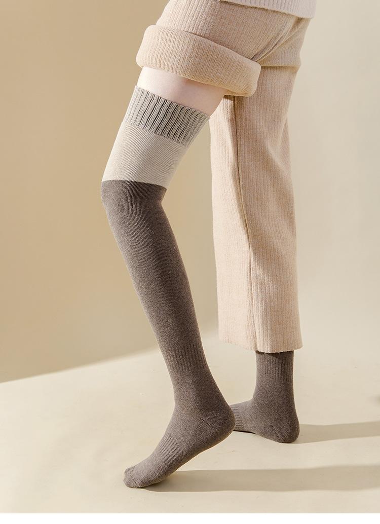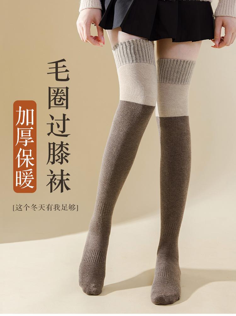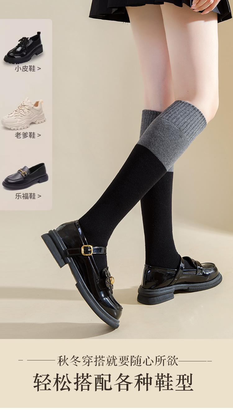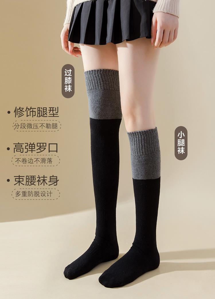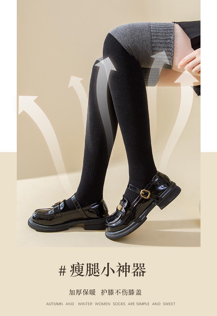 Calcetines por encima de la rodilla para mujer otoño e invierno Terry grueso cálido micro-presión pierna delgada negro japonés jk antideslizante rodilleras medias
