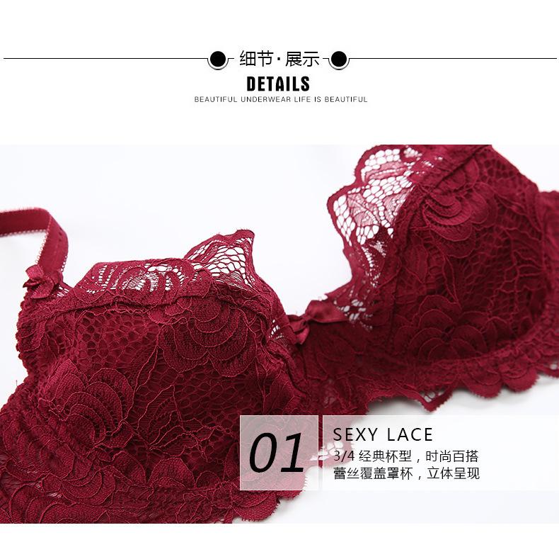 Conjunto de sujetador de mujer, ropa interior de encaje sexy, nueva, europea y americana, ultrafina, transpirable, de pecho grande, de talla pequeña