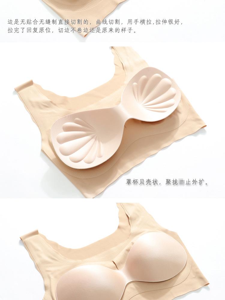 Las copas están integradas en ambos lados, lo que no expandirá los senos hacia afuera, y el patrón de concha en el interior hará que los senos estén más centrados.