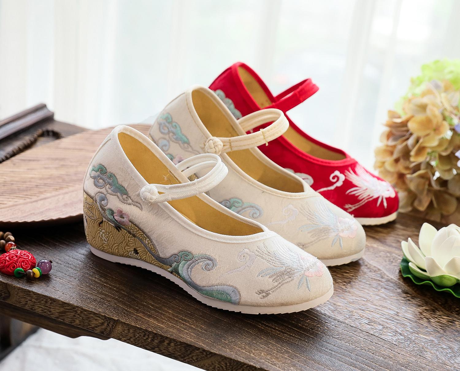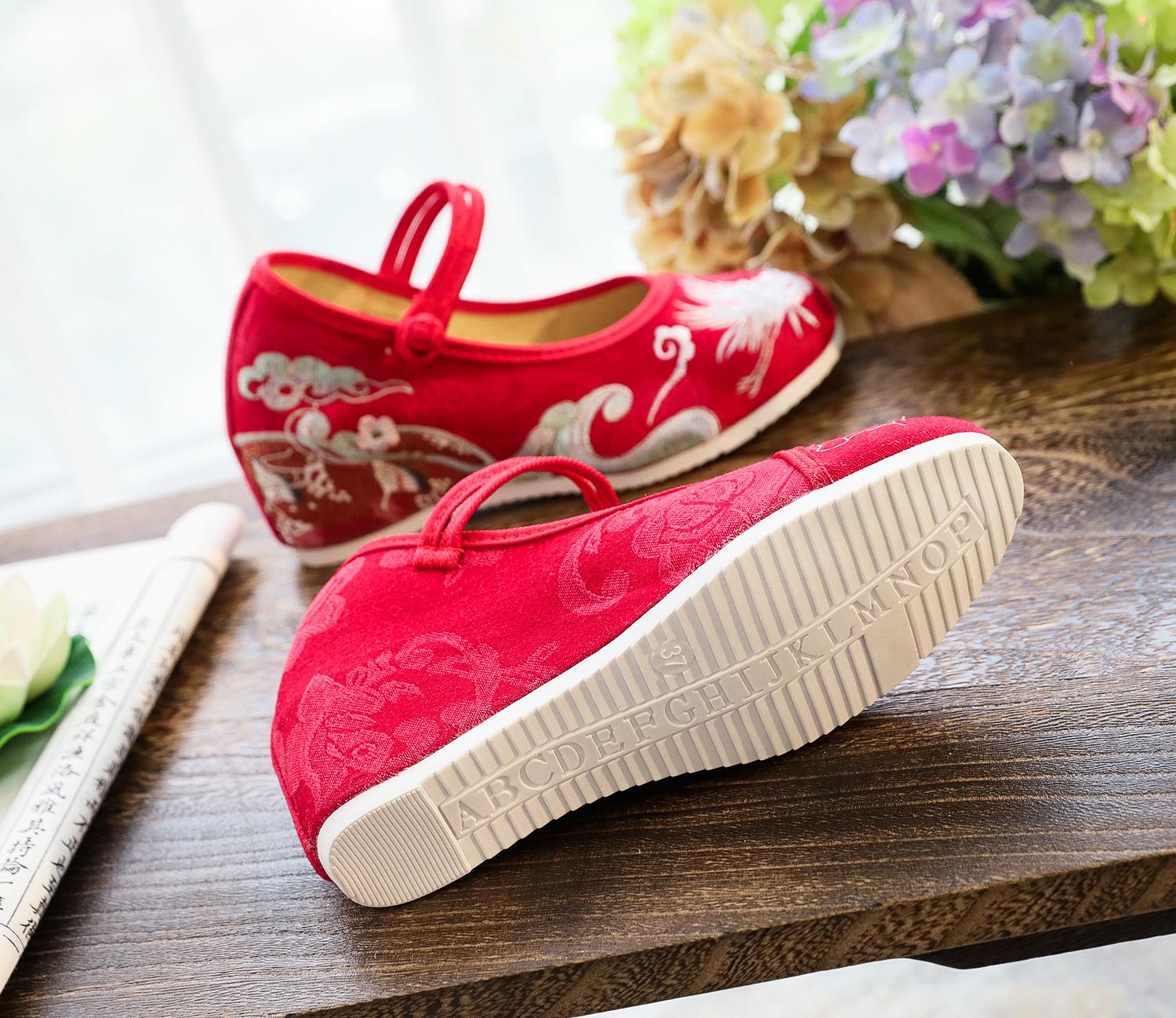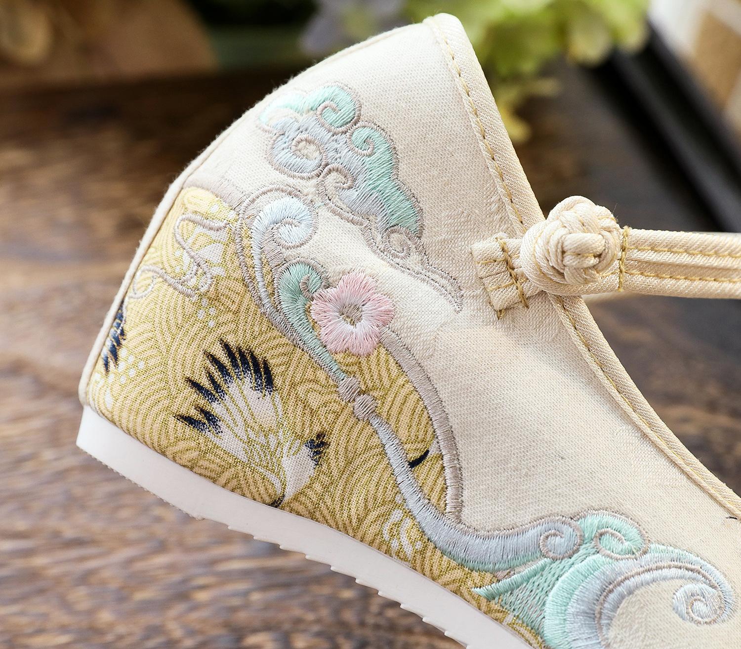 Zapatos de ropa Yu He Han, zapatos bordados, zapatos de tela para mujer, zapatos cheongsam de estilo antiguo chino retro para mujer, zapatos de tacón alto para artistas del té
