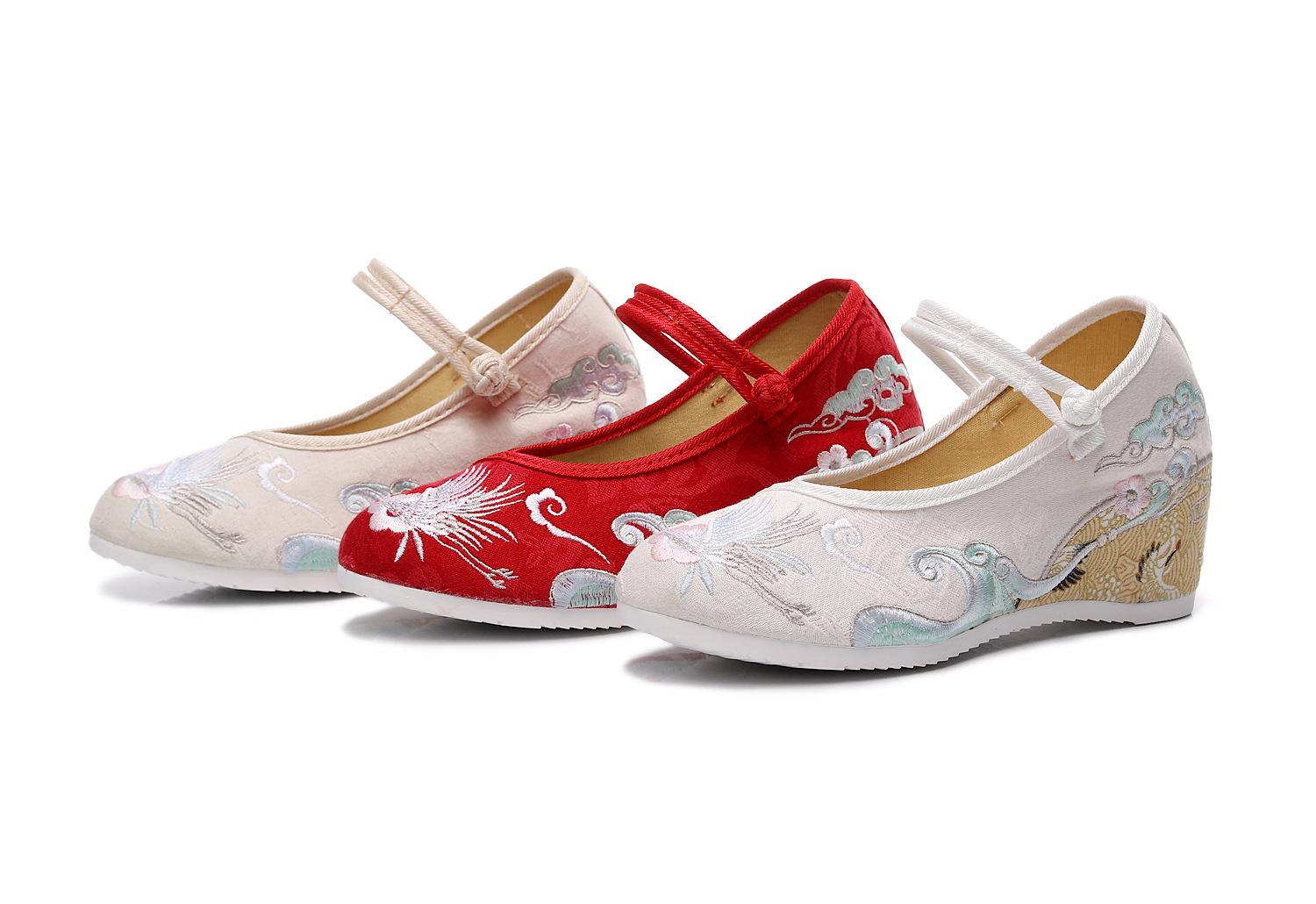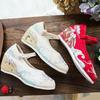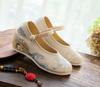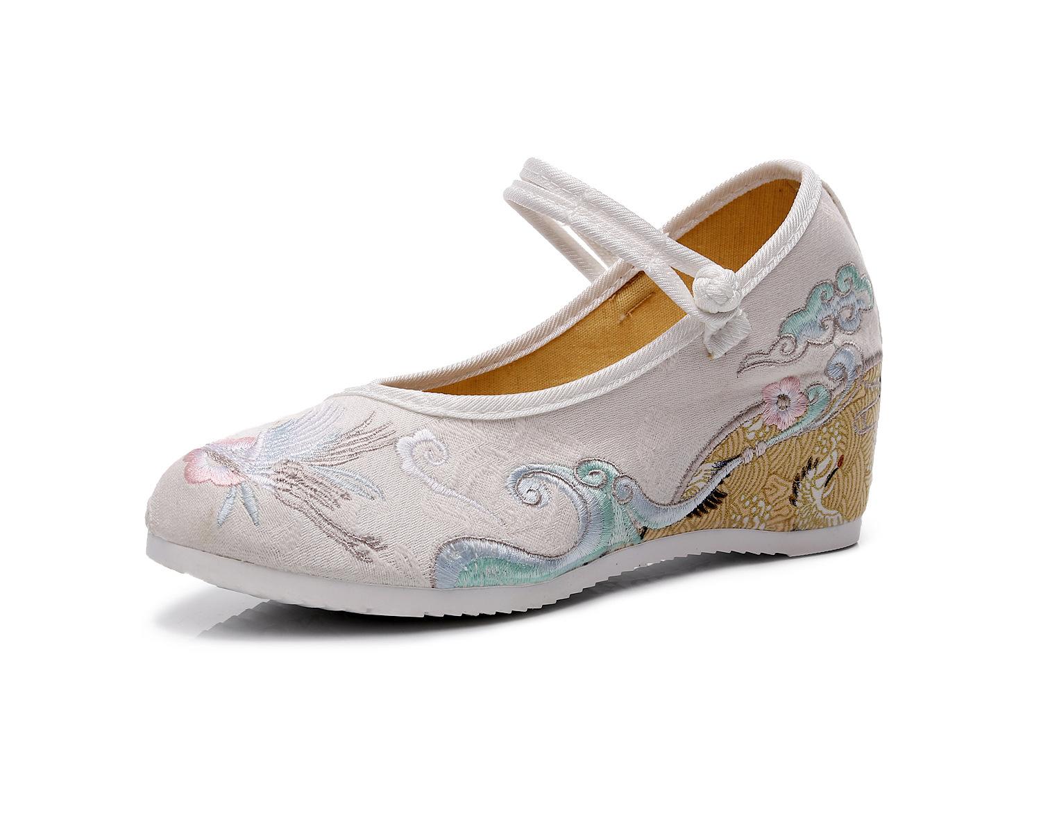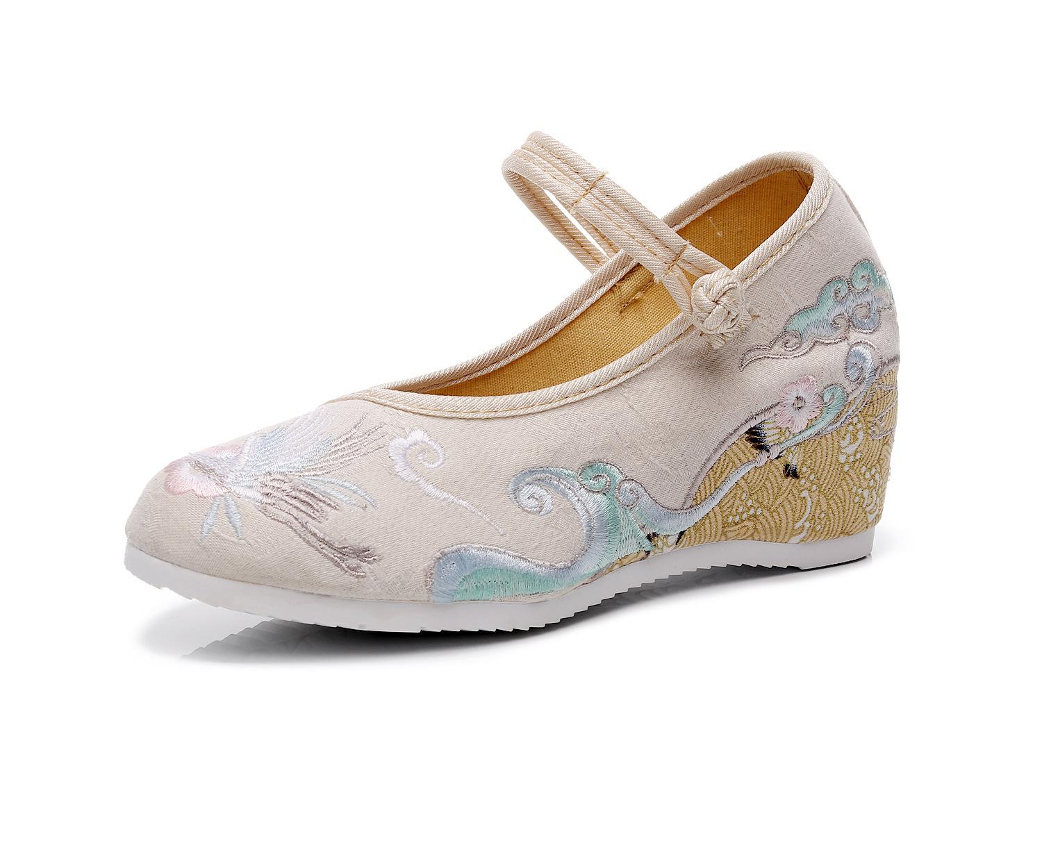Zapatos de ropa Yu He Han, zapatos bordados, zapatos de tela para mujer, zapatos cheongsam de estilo antiguo chino retro para mujer, zapatos de tacón alto para artistas del té