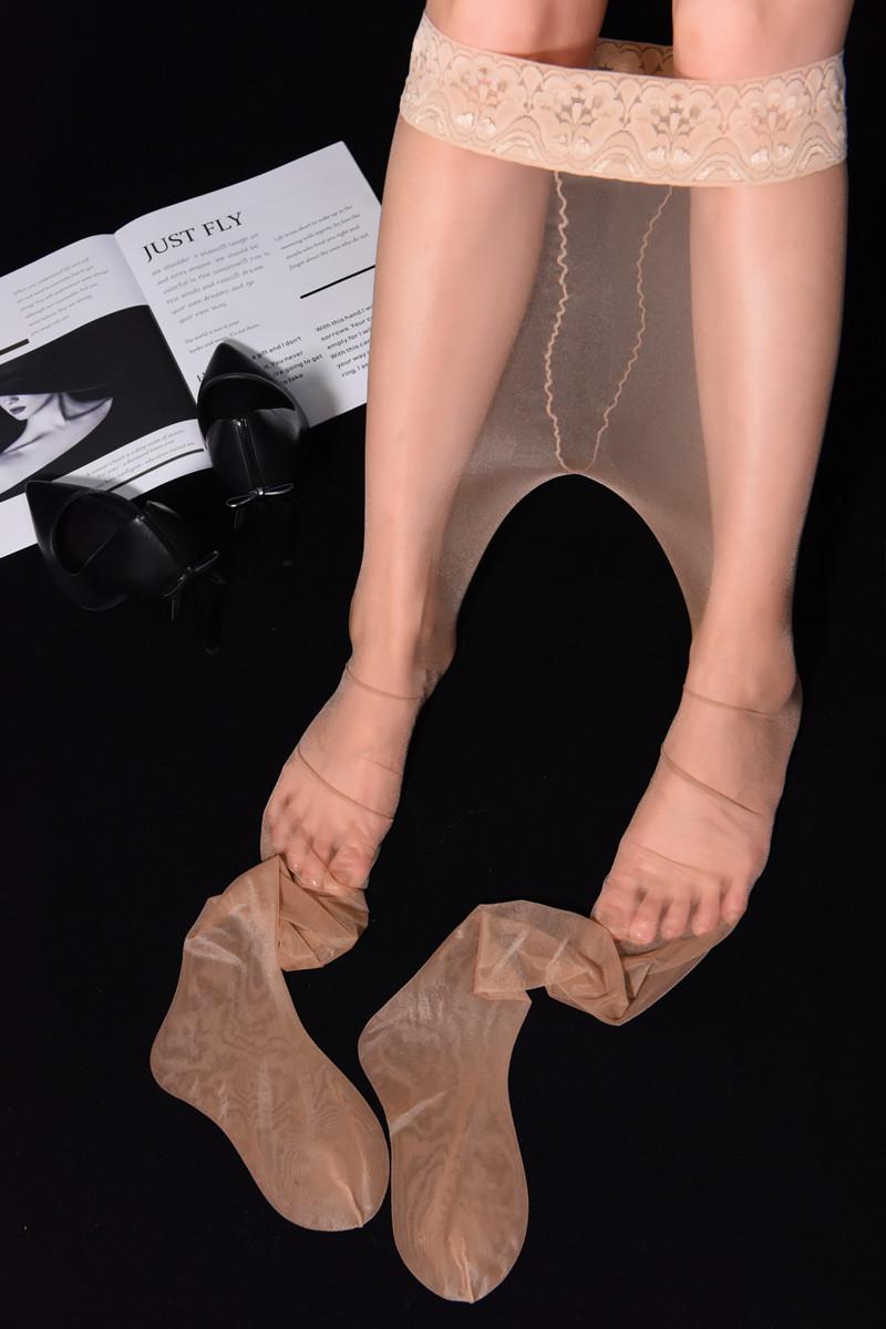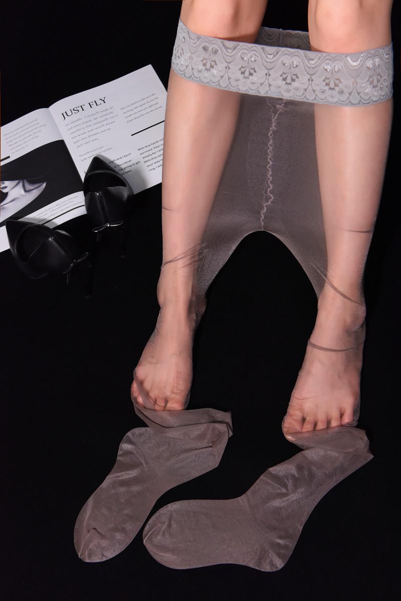 Medias de seda de encaje 0D ultrafinas con entrepierna unilineal para mujer, invisibles, sin costuras, de verano, grises, transparentes y abiertas.
