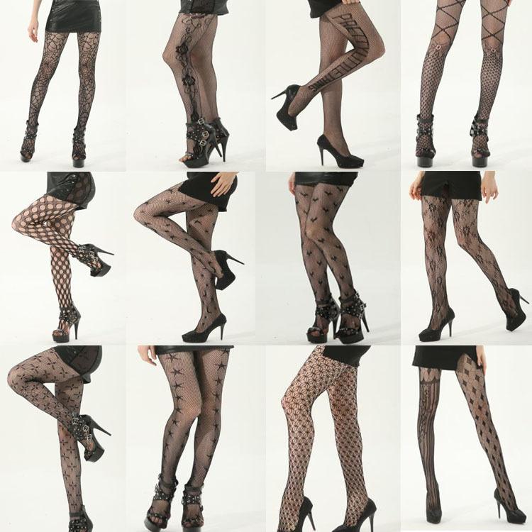 Talla grande Medias de alta elasticidad Medias de seda negras Piernas sexys Medias de red de araña Agujeros Seda anti-enganche Medias de red jacquard de estrella de cinco puntas